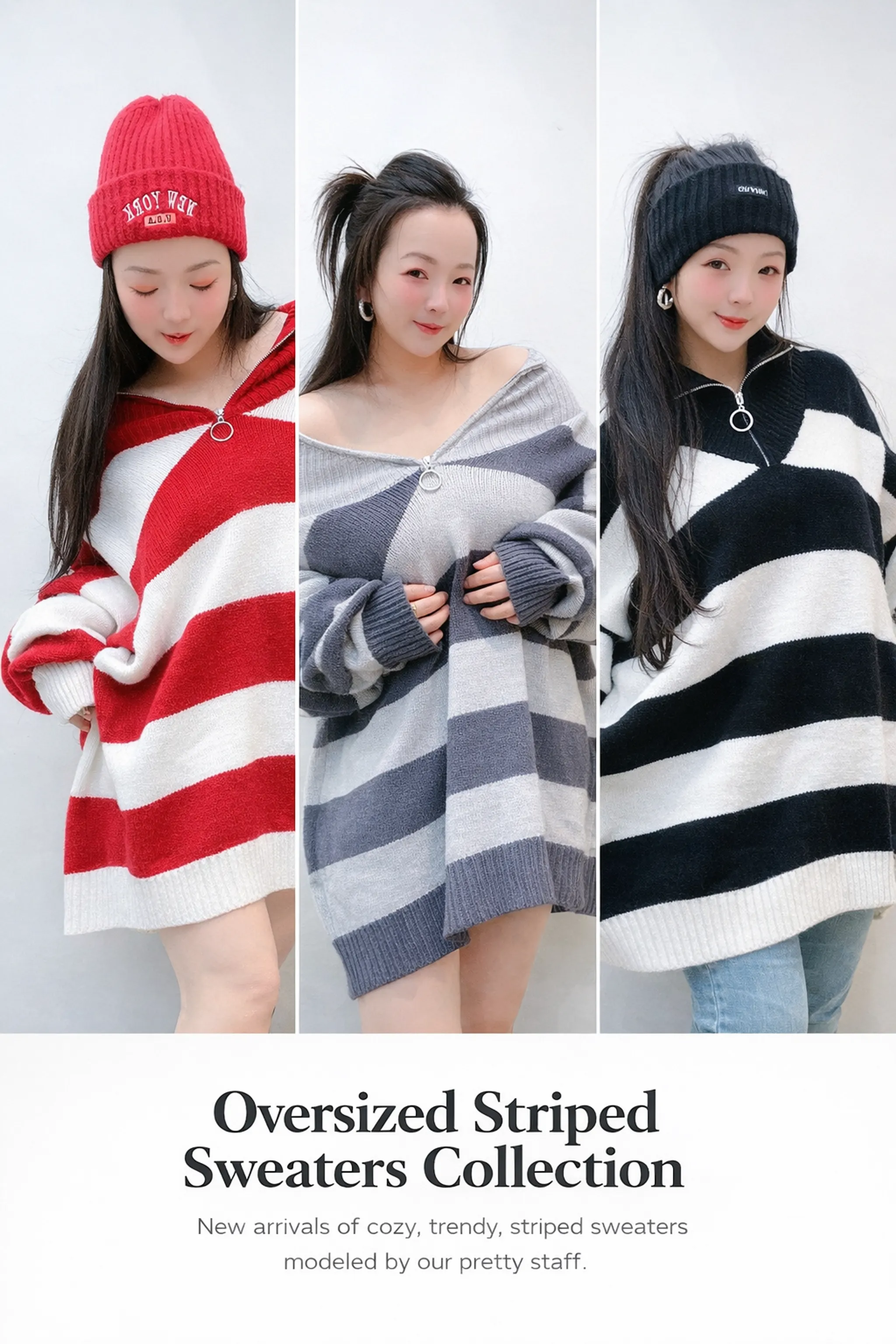 💗寬條紋半拉鍊針織長版上衣(S-5L)