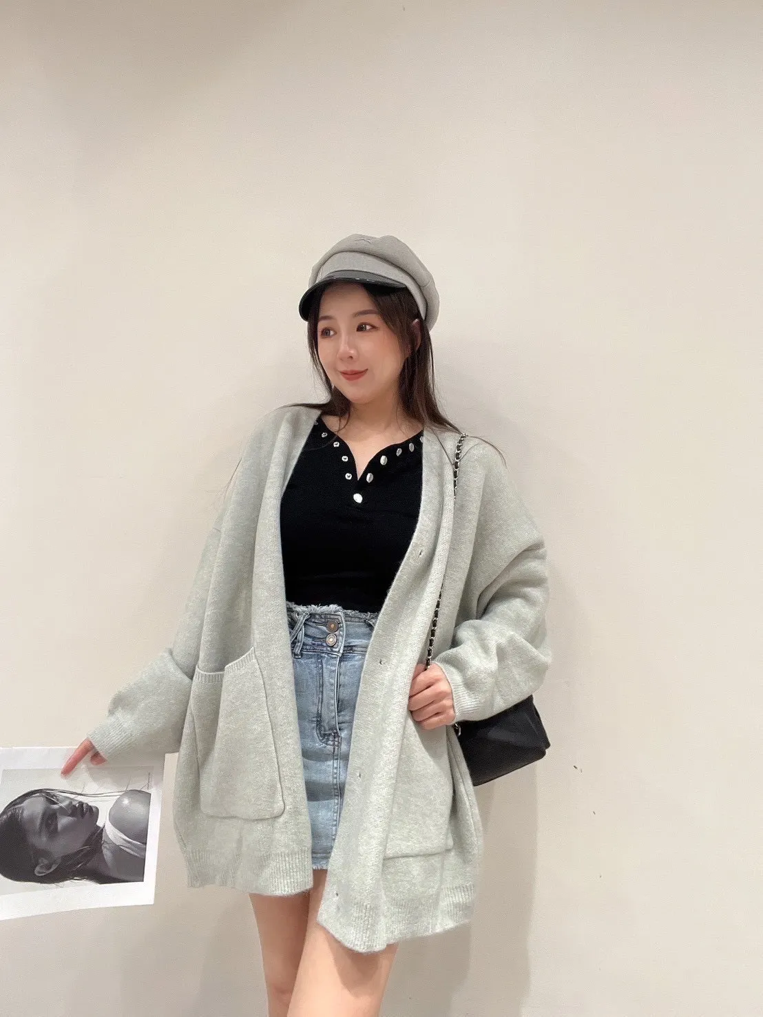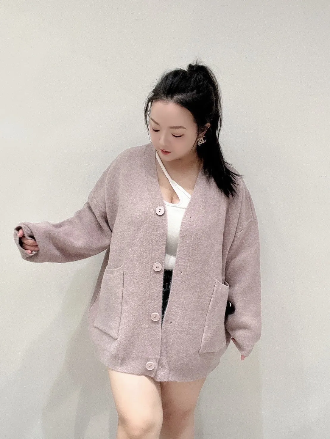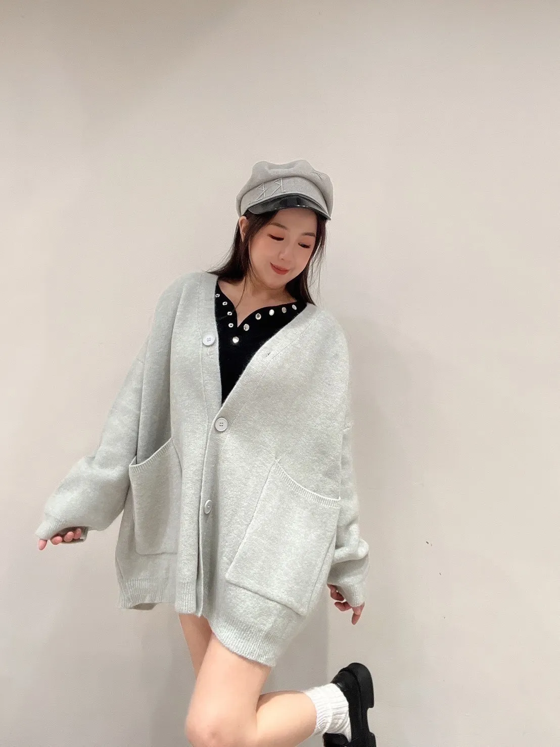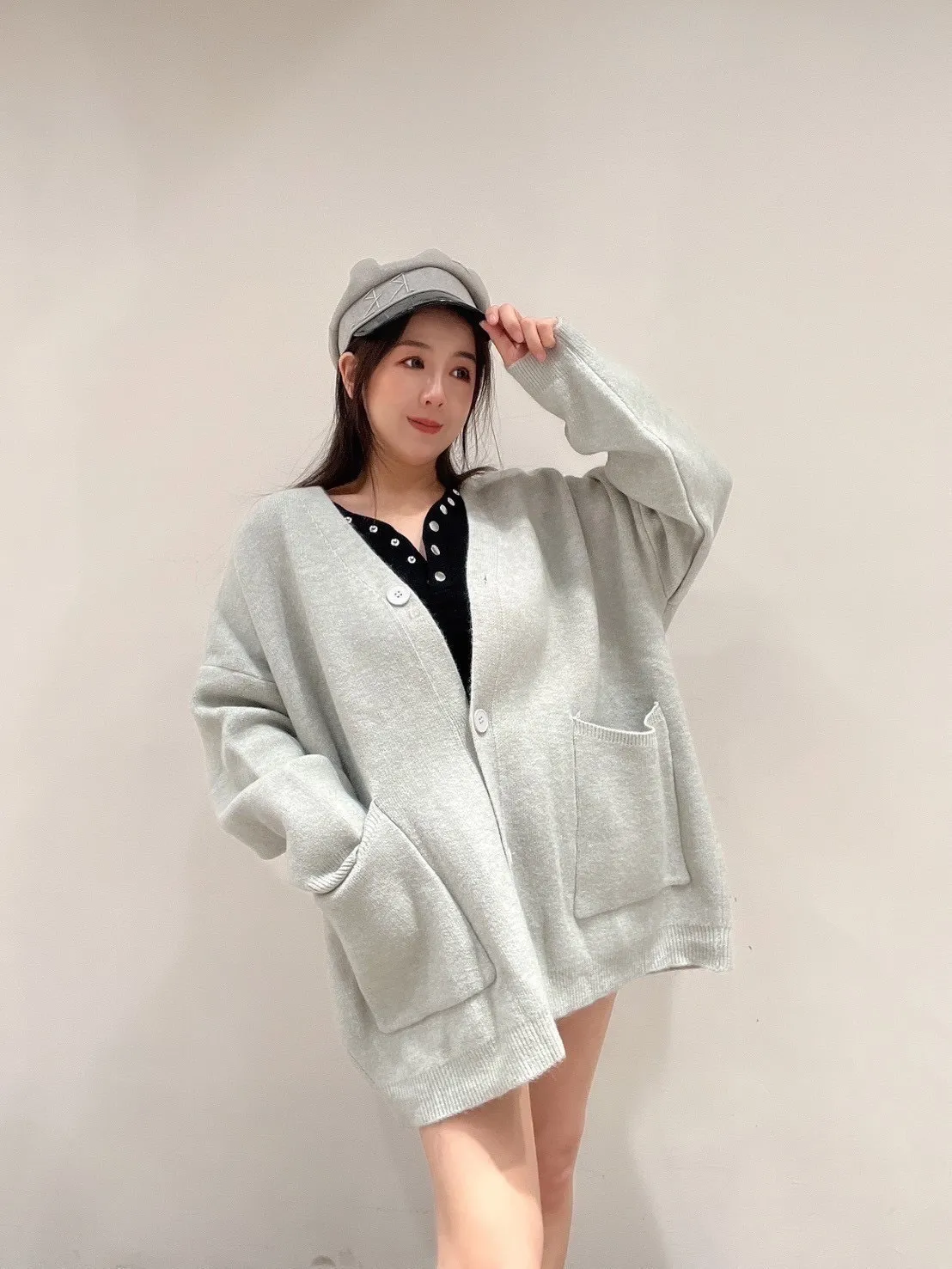 雙口袋毛衣外套