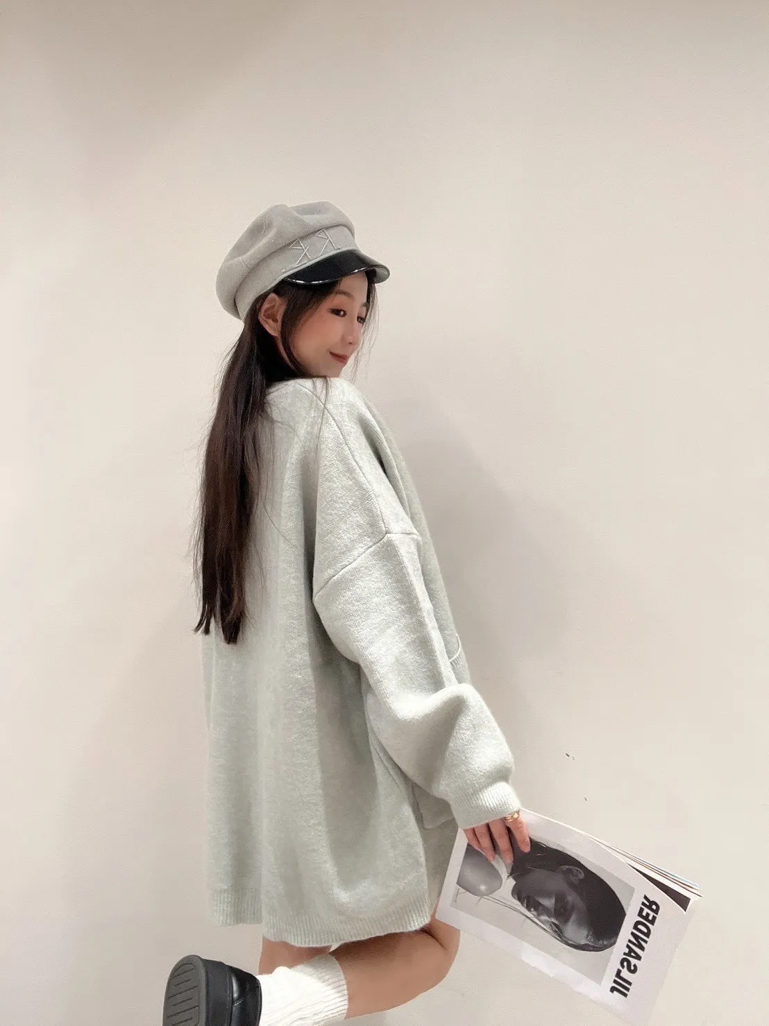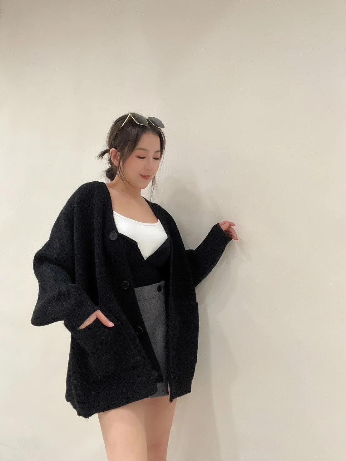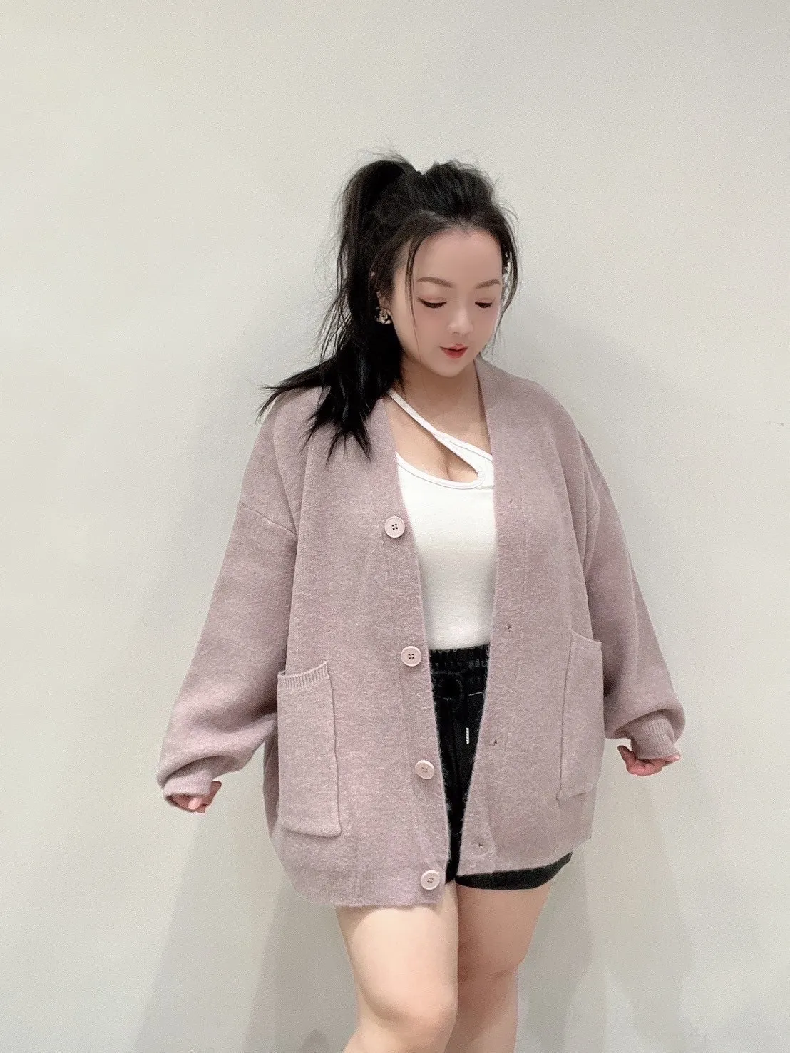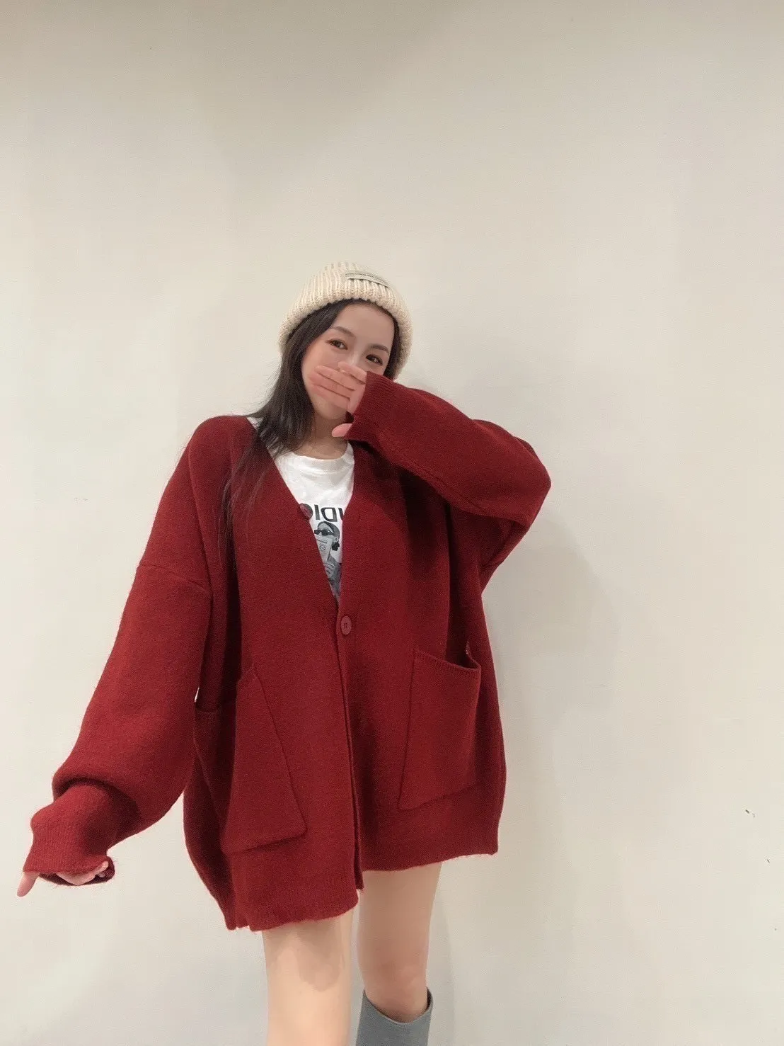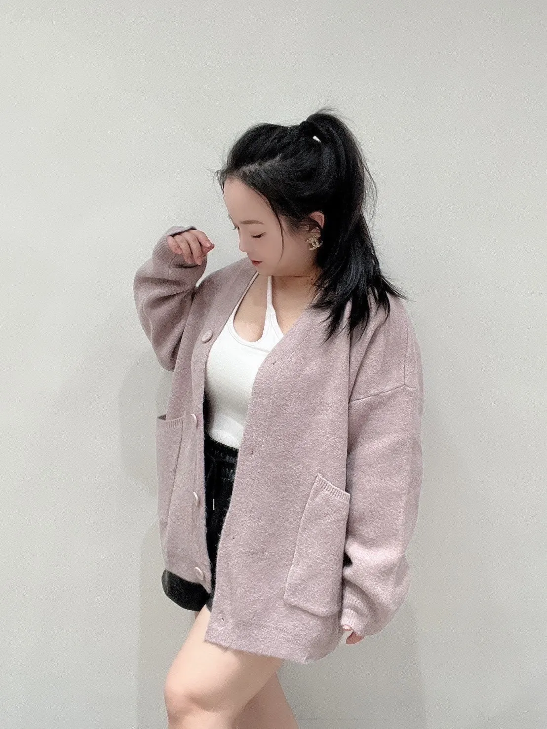 雙口袋毛衣外套