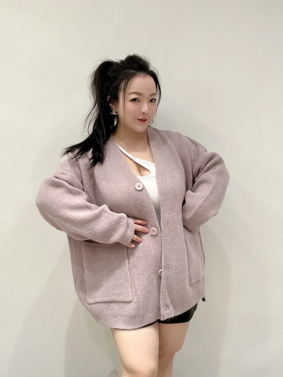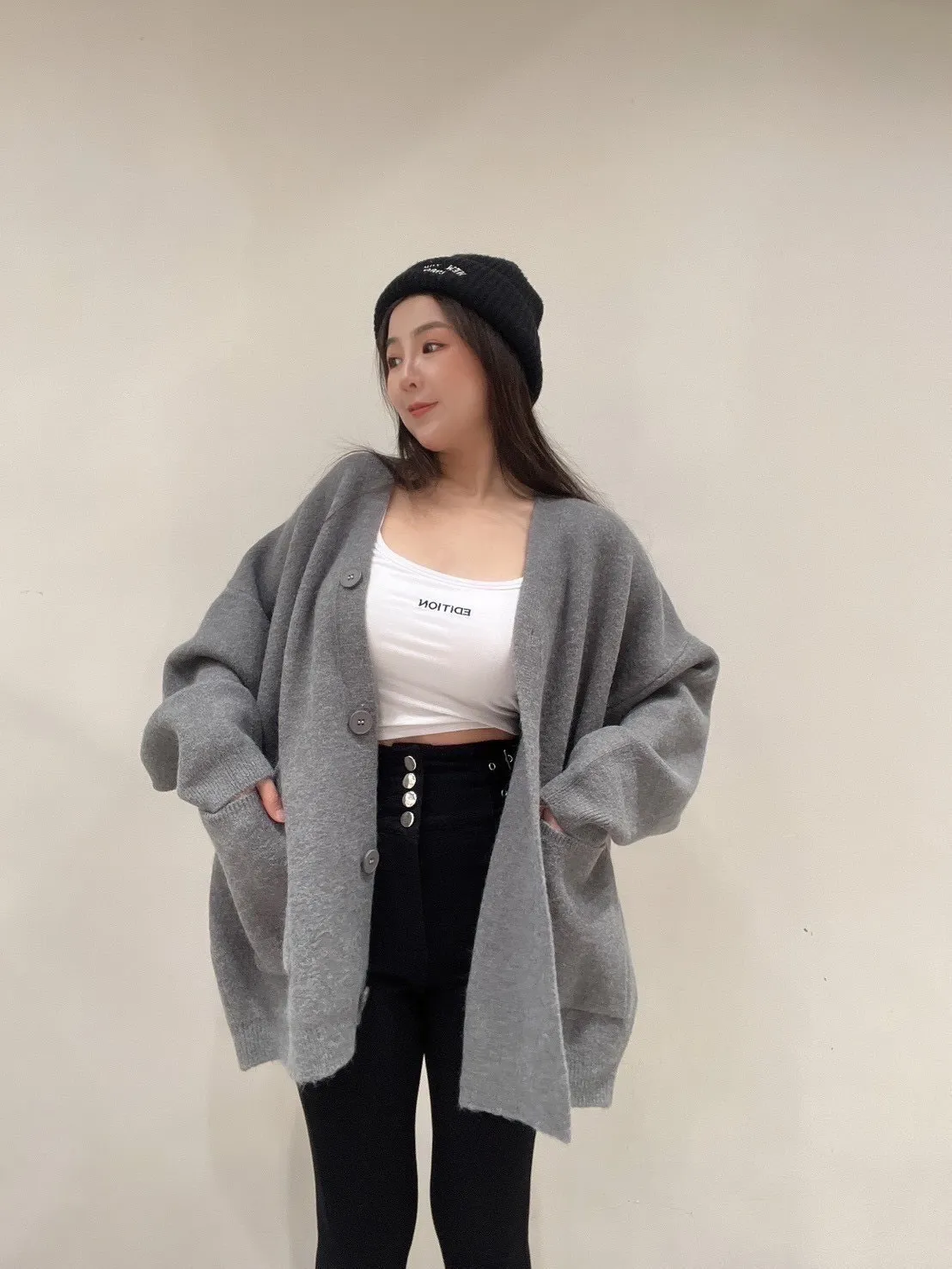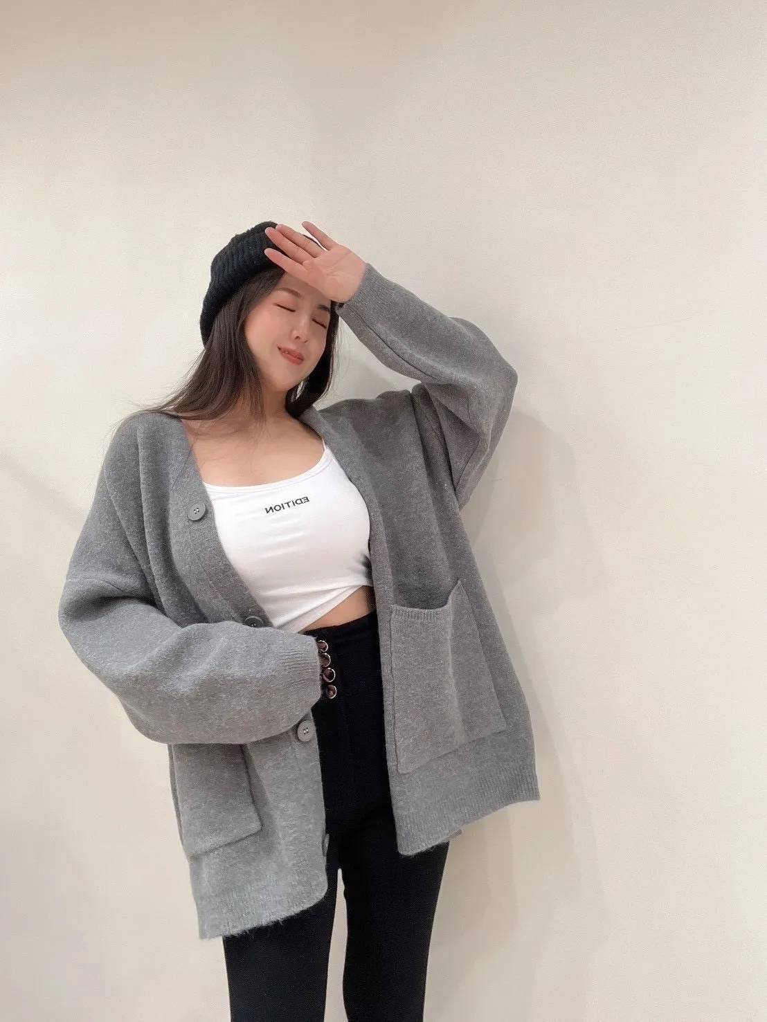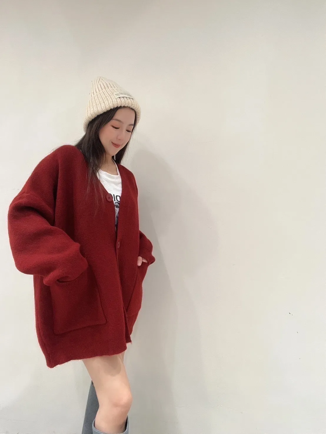 雙口袋毛衣外套