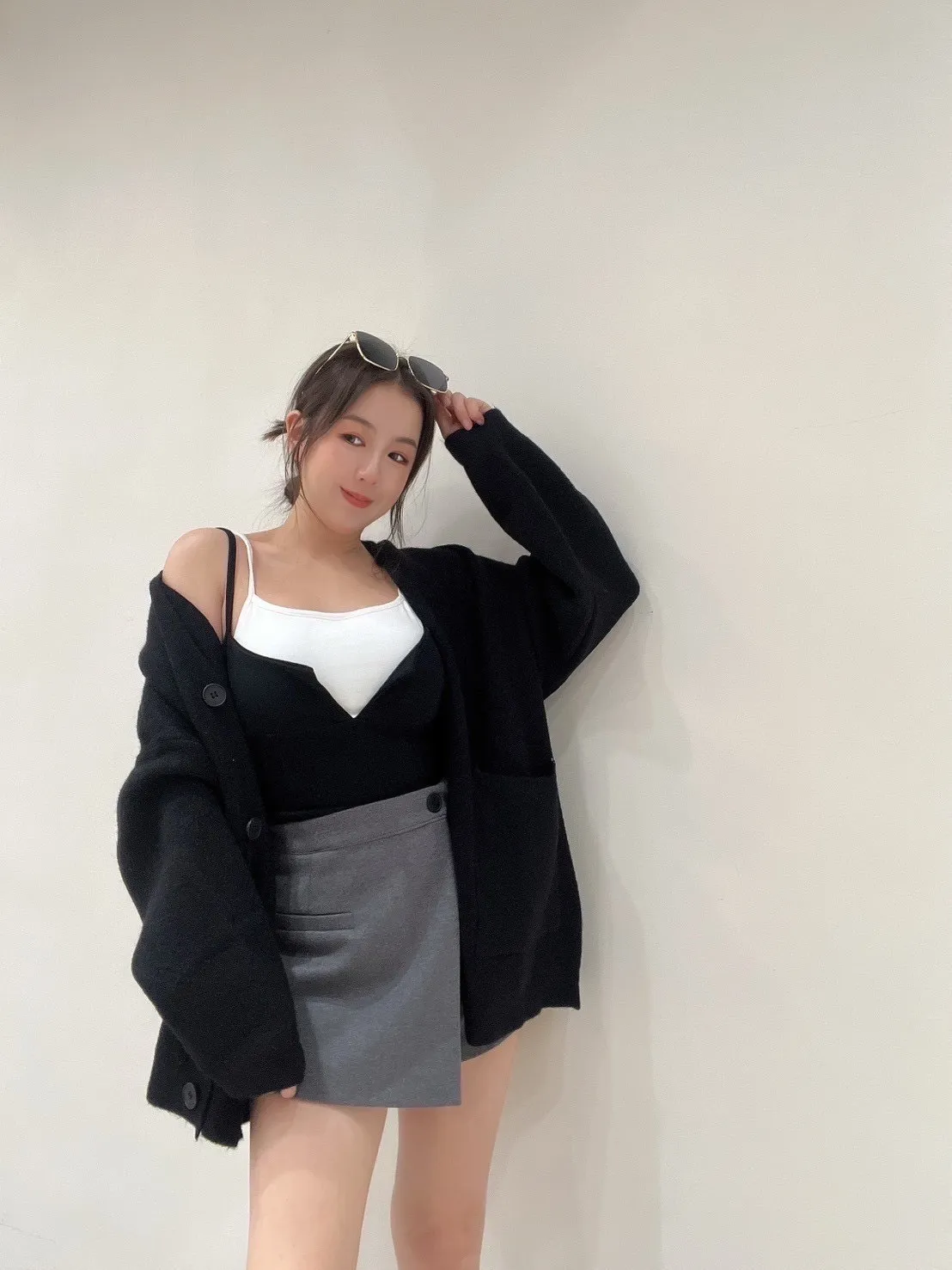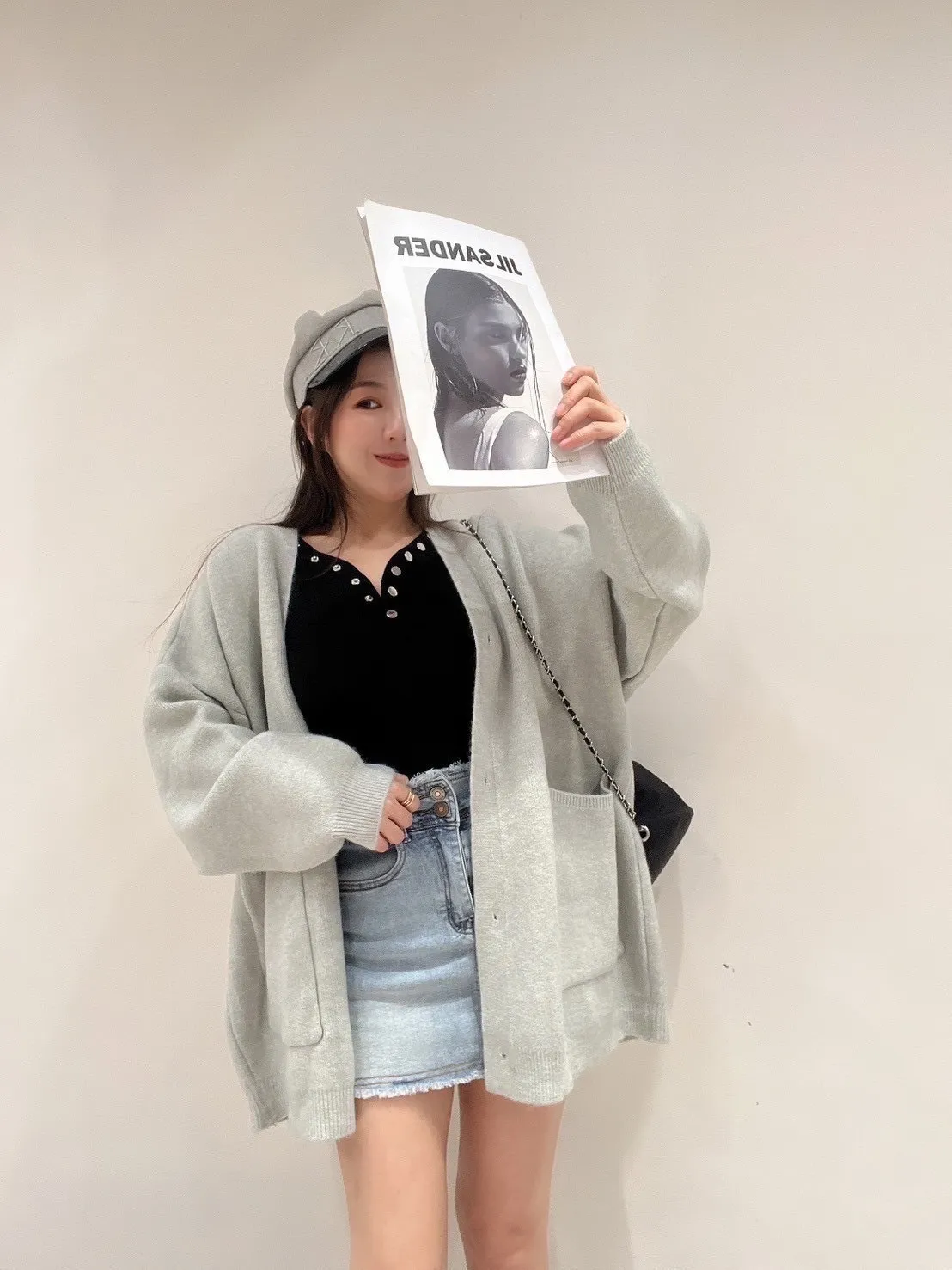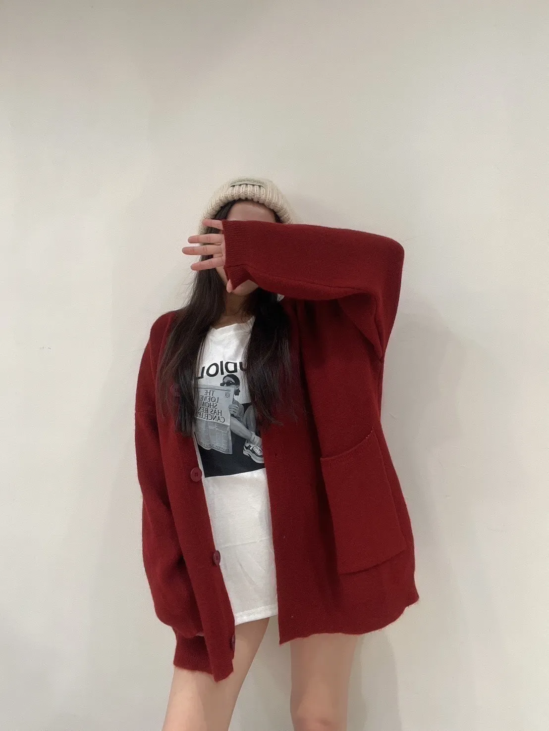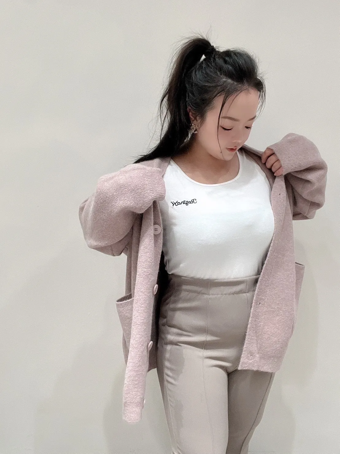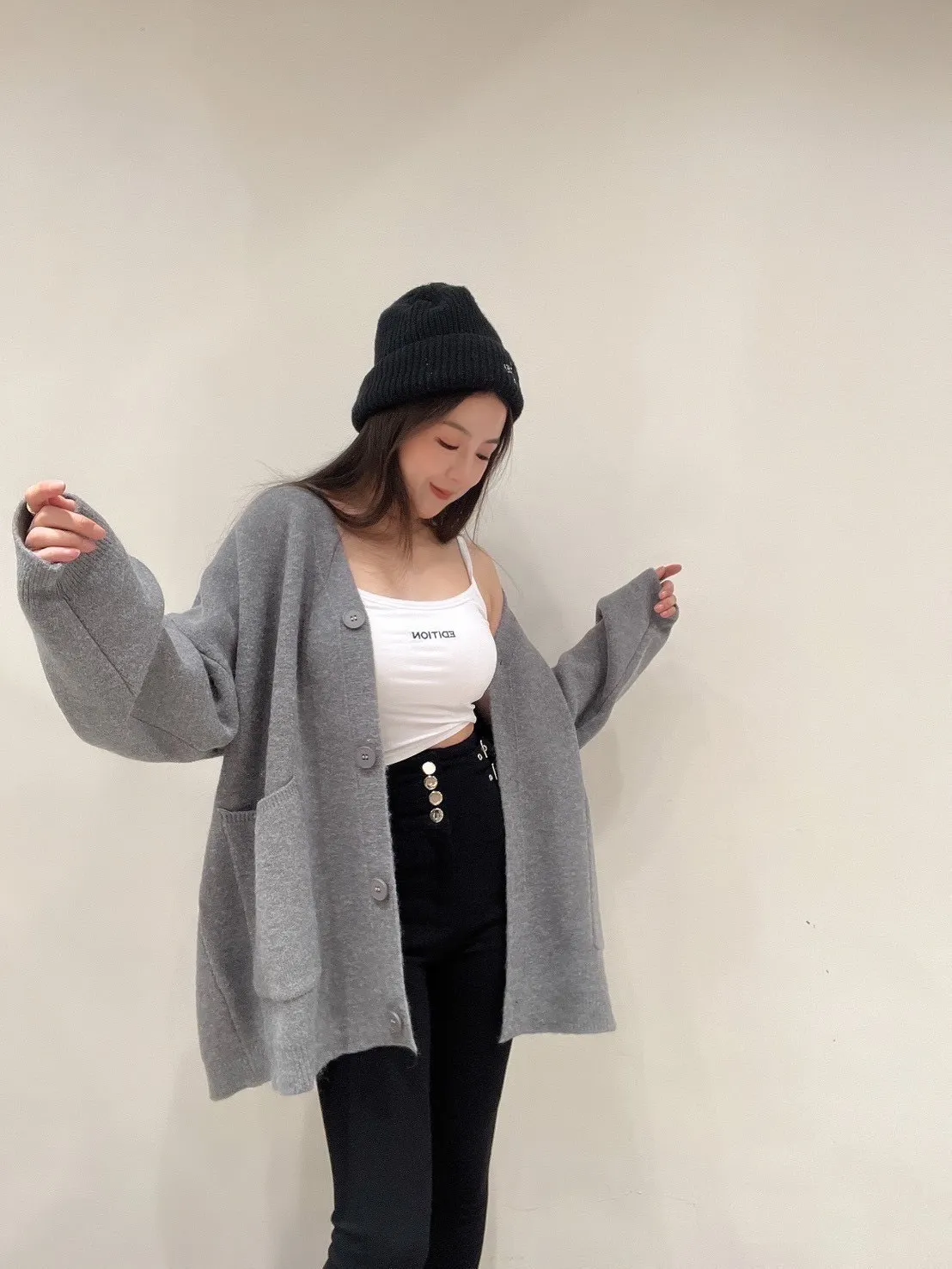 雙口袋毛衣外套