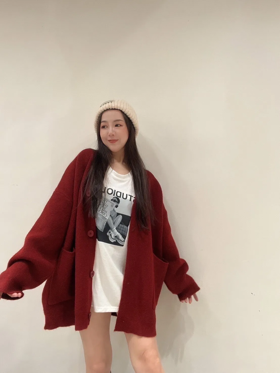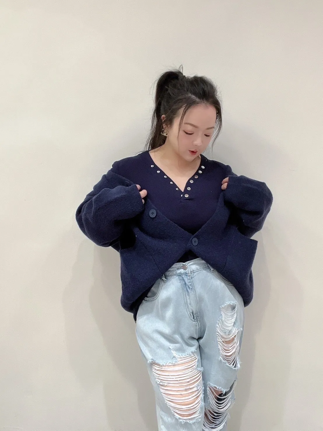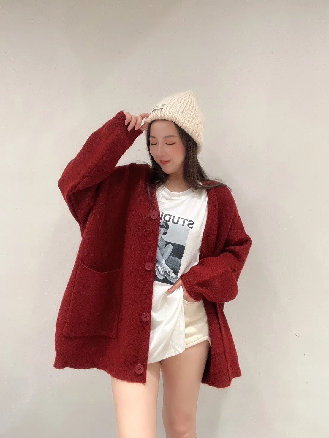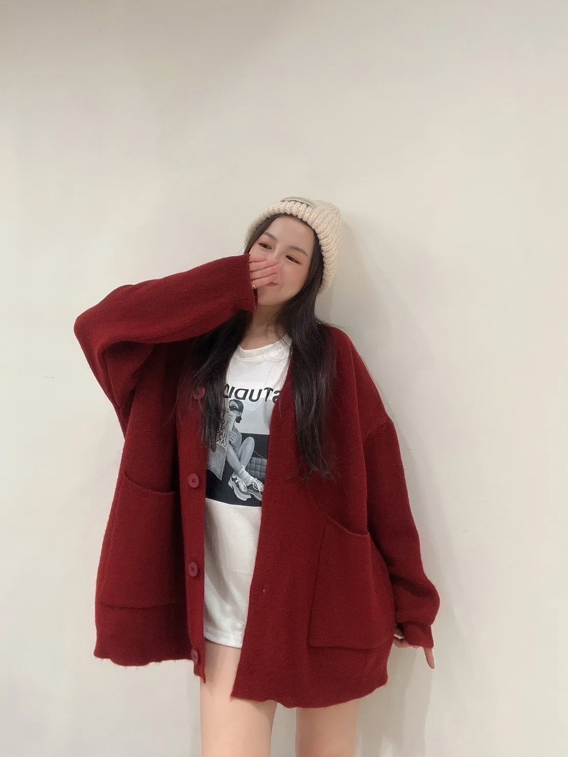 雙口袋毛衣外套