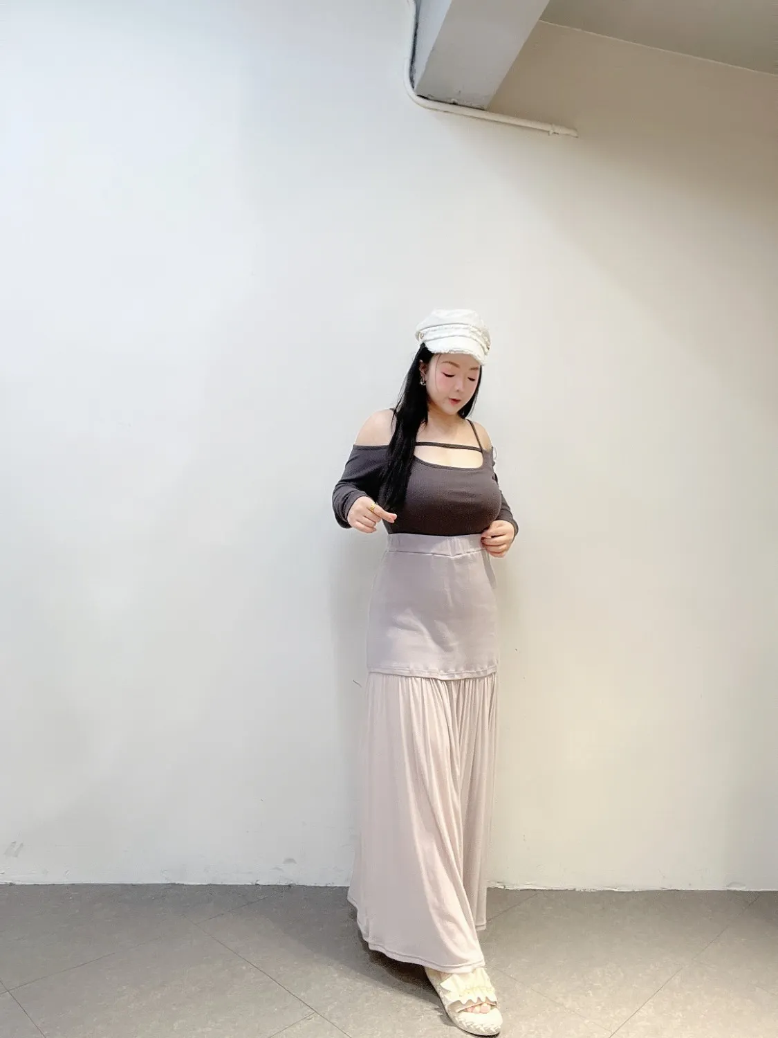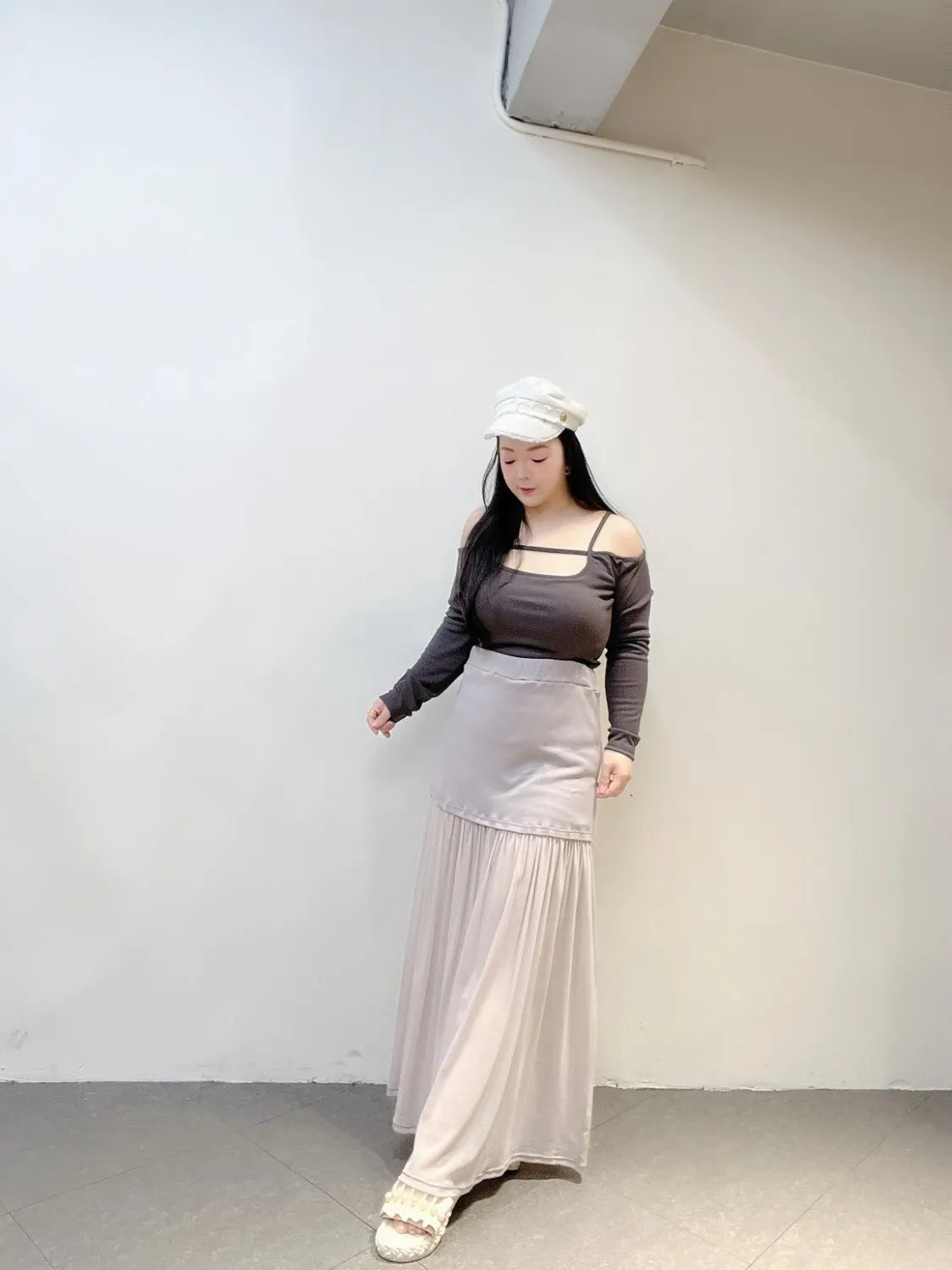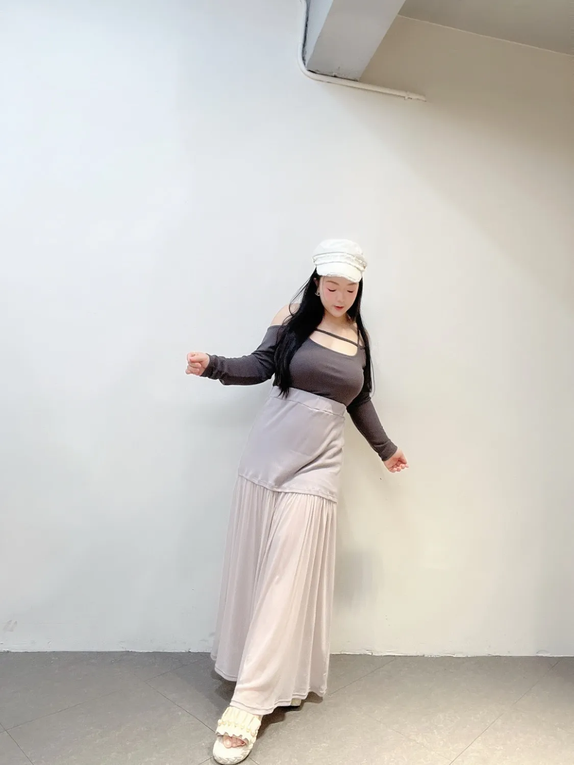 下身拼接柔霧網紗,走動時自然飄逸,把腿部線條修得超美。
