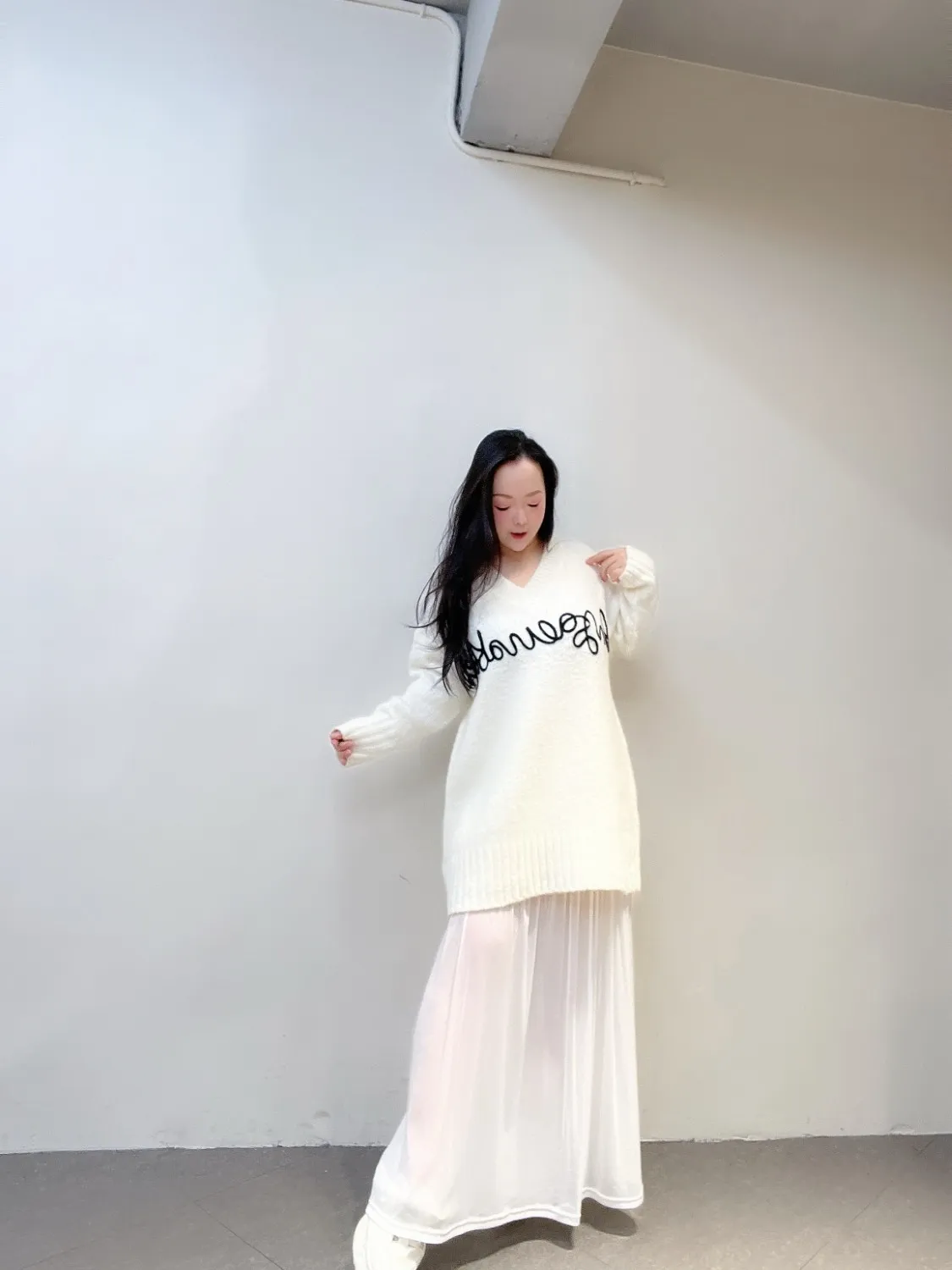 輕盈又仙氣的網紗裙,是韓妞冬春必備的層次單品。