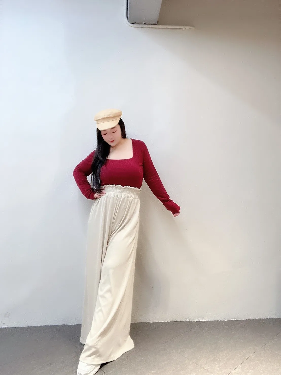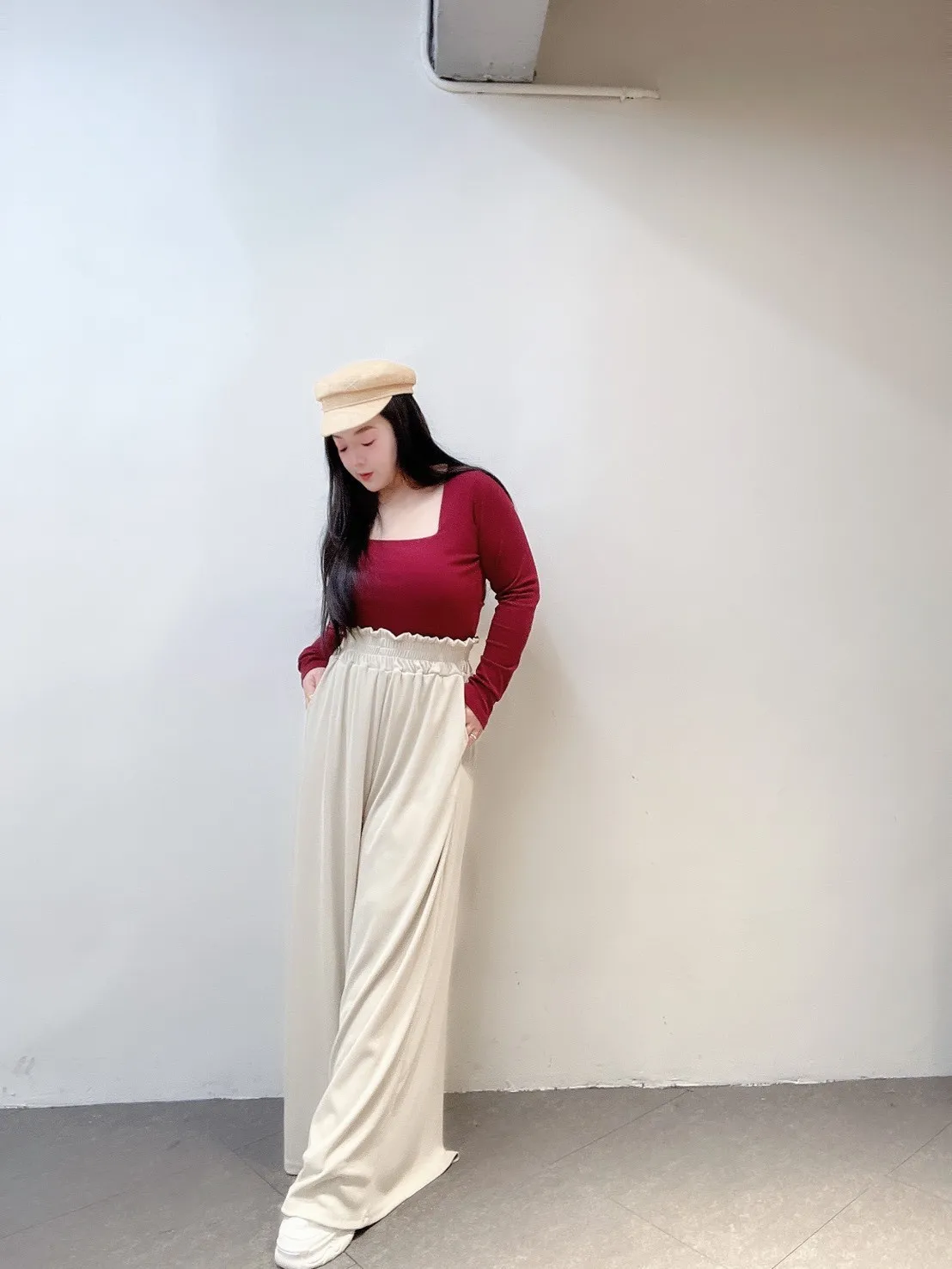 ✔ 花苞高腰+長直線褲管=腿長直接+10cm