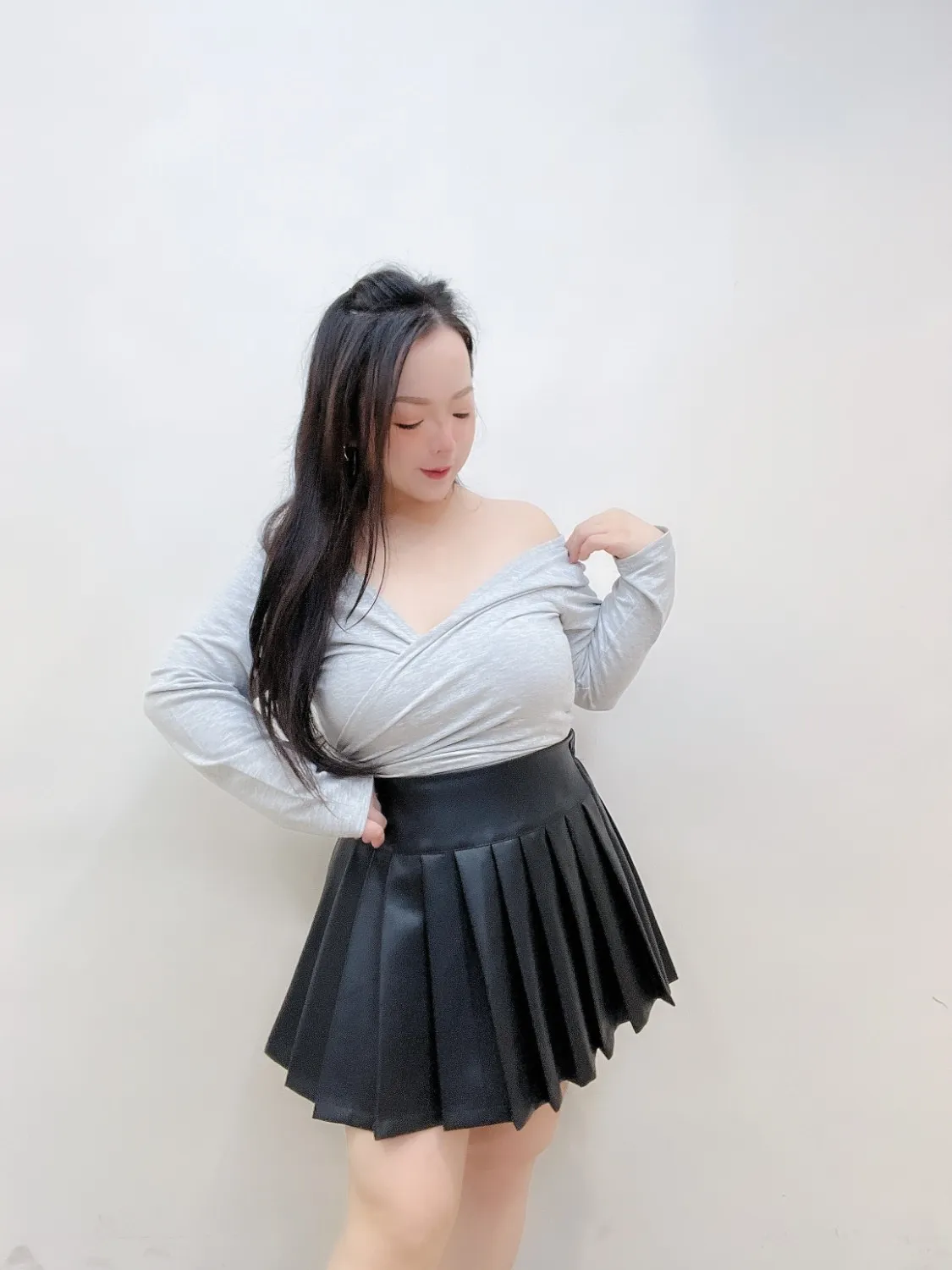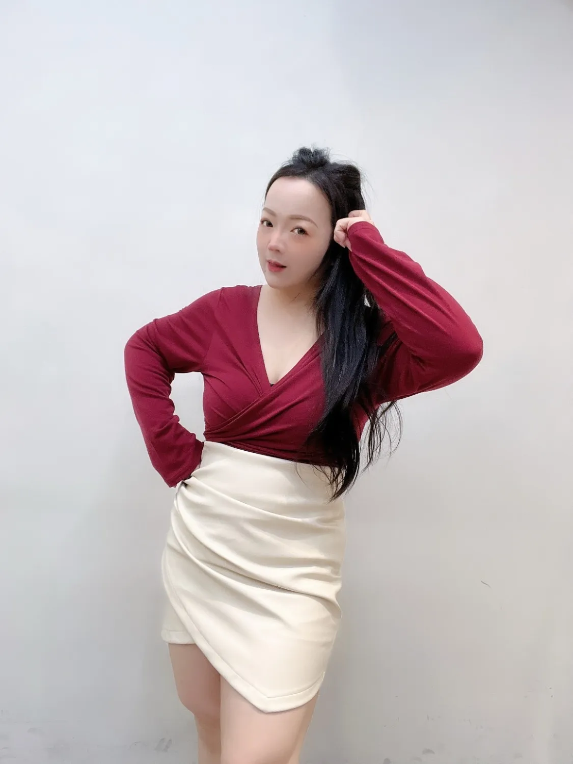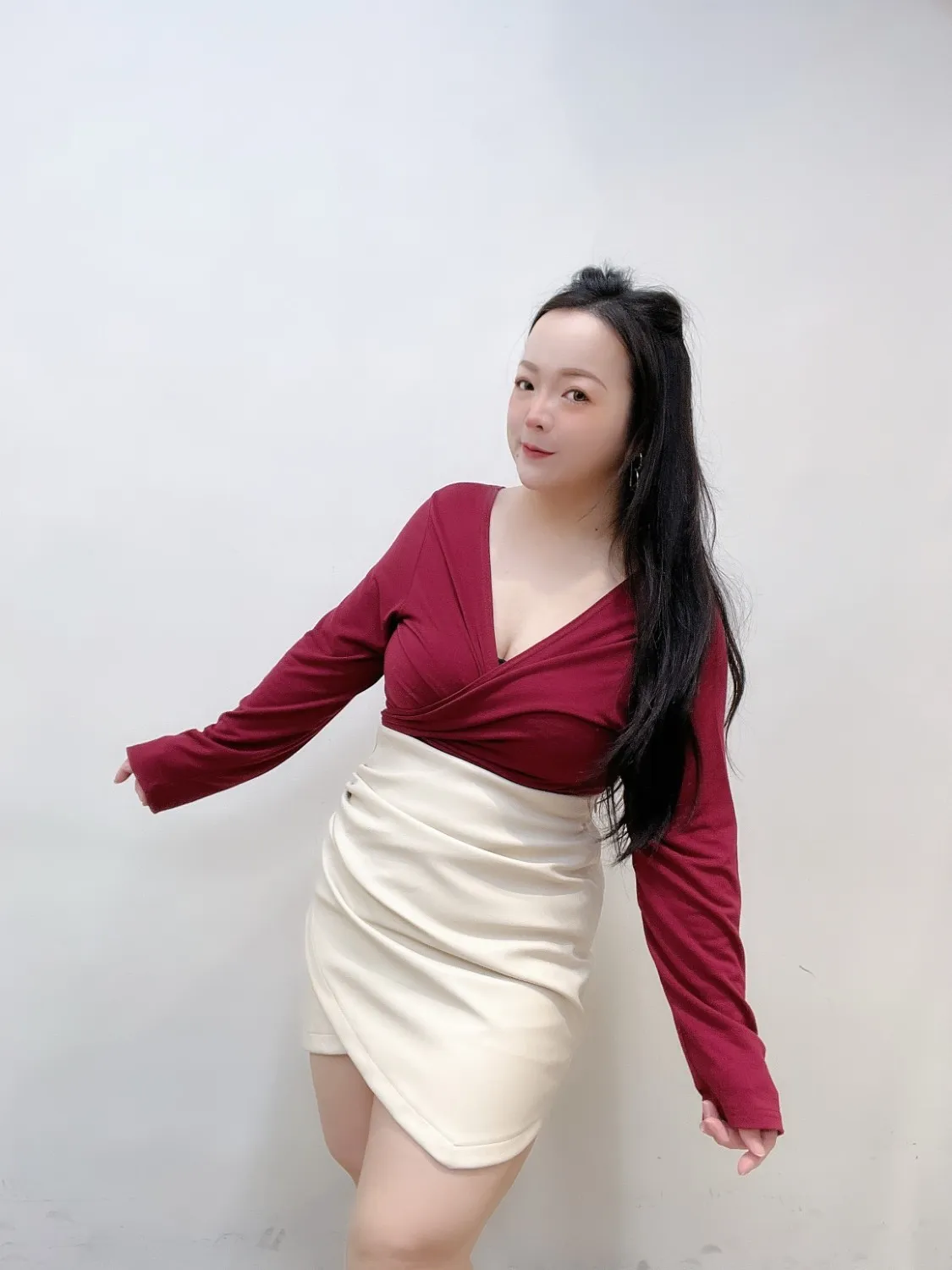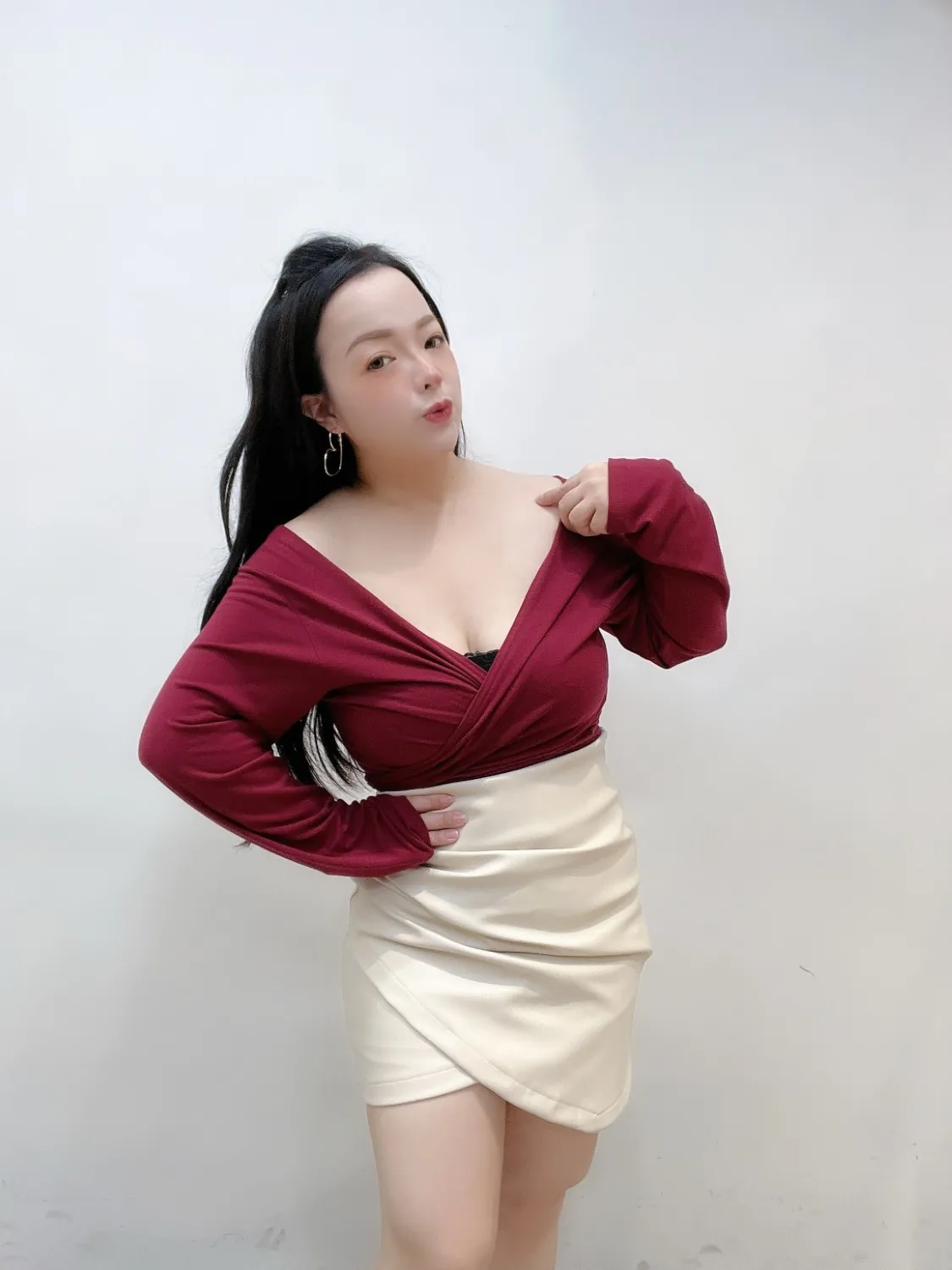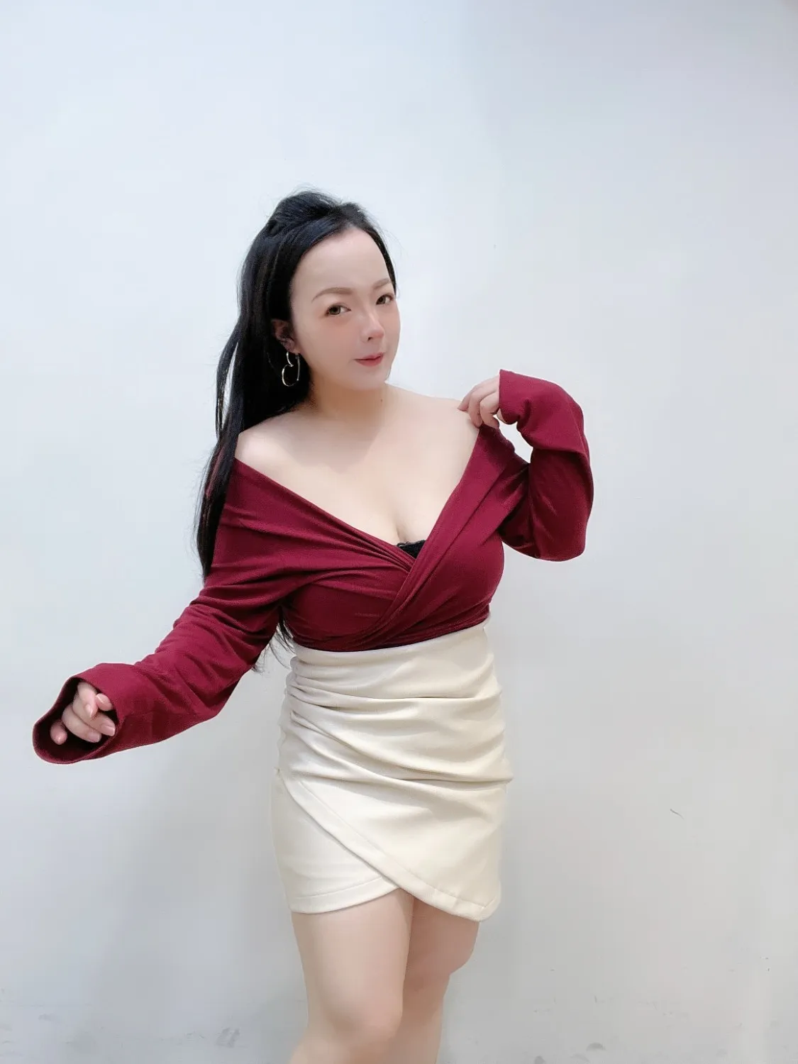 ✦ 露肩&交叉 V 領線條 → 自動修飾上半身,比例更纖細