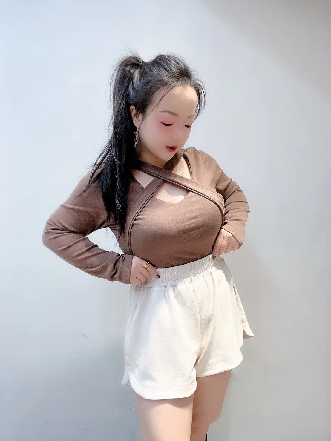 ✨#6791|心機交叉美胸罩杯上衣 ✨
