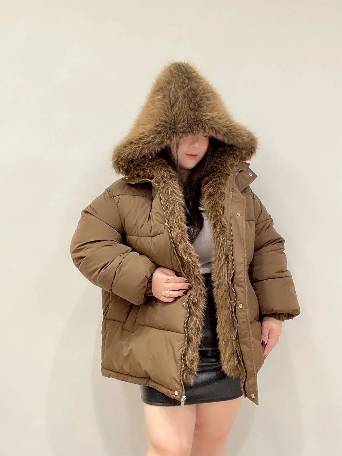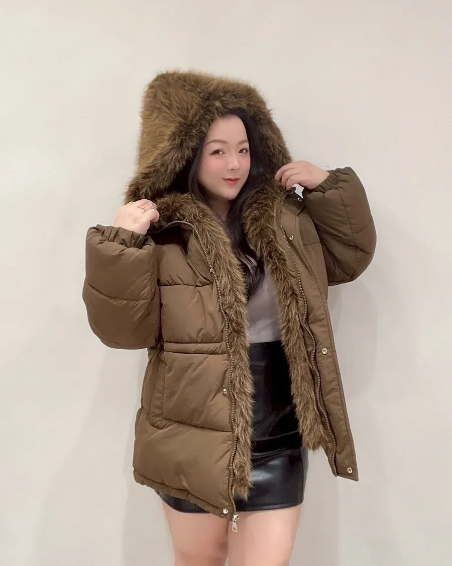 ❄️✨#82515|毛毛領縮腰鋪棉外套 ✨❄️