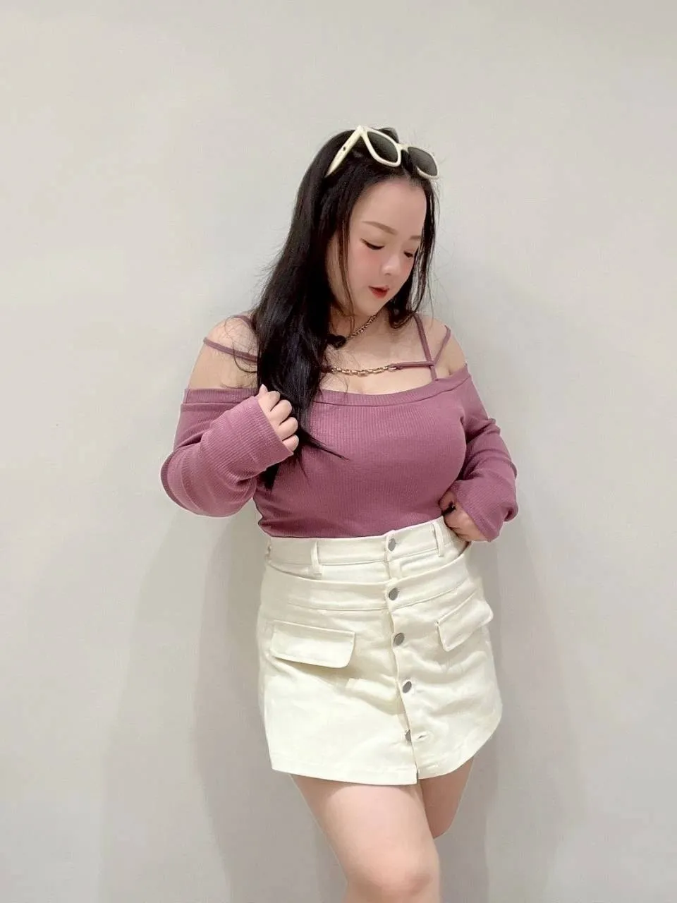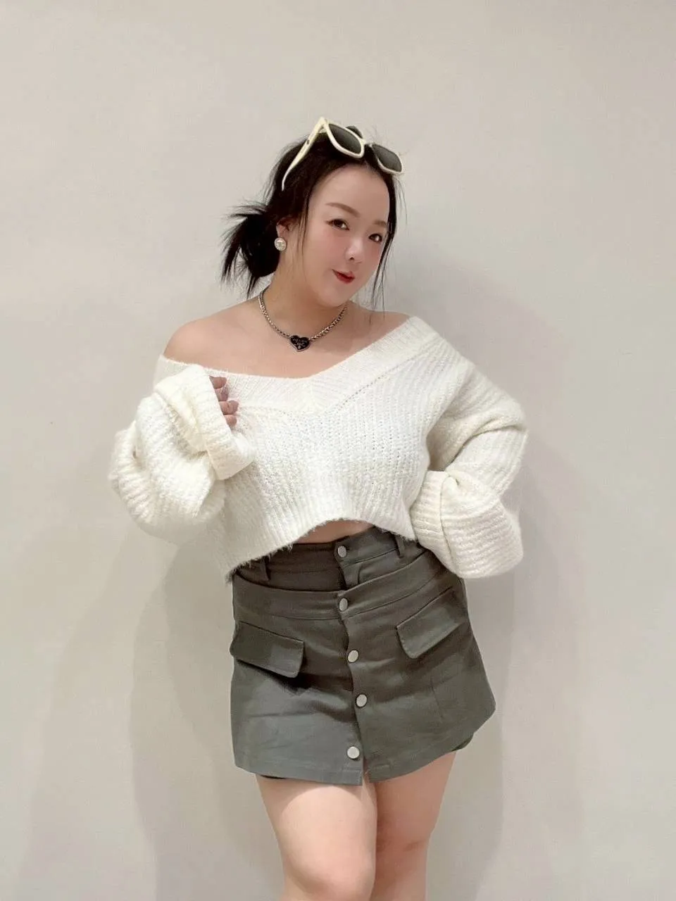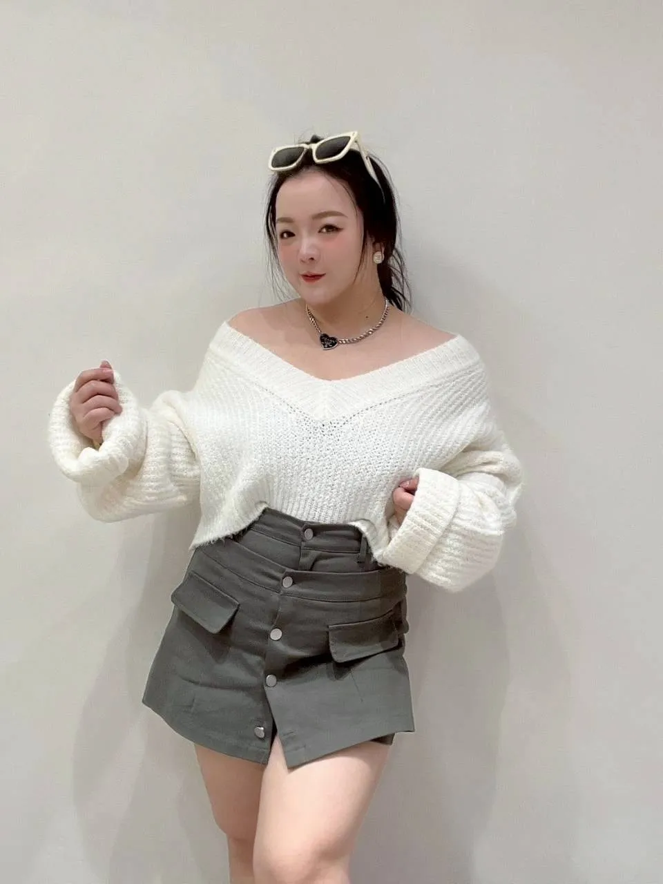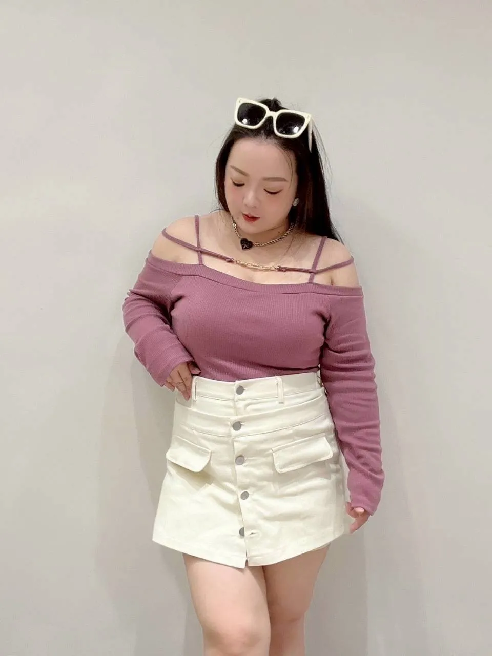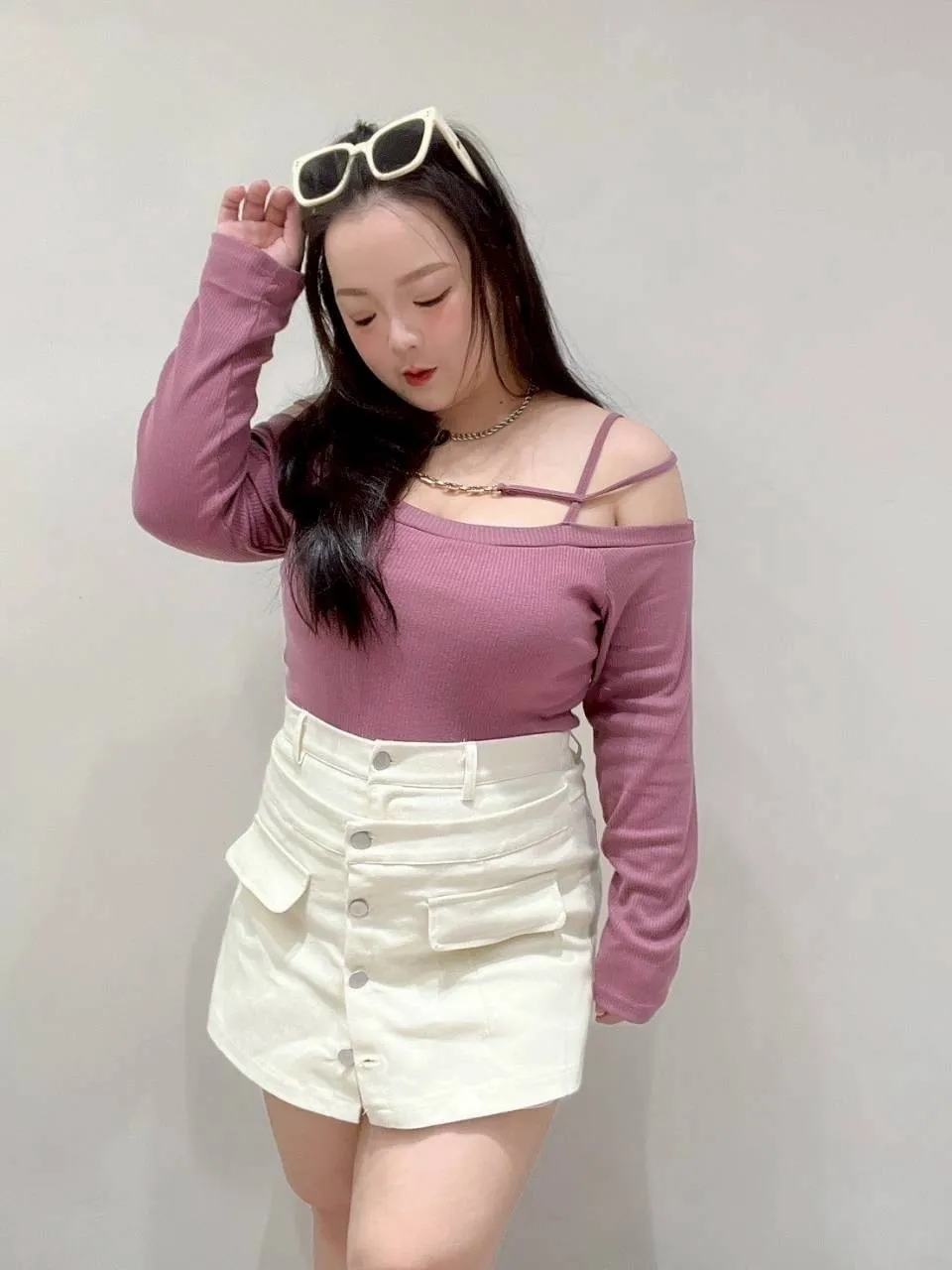 • 搭短版針織、削肩上衣都超好看