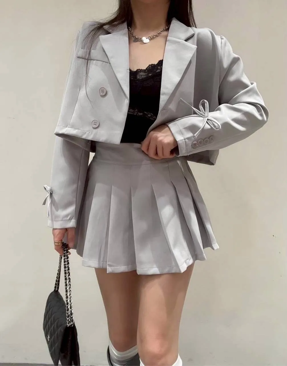 💛✨ #7025|百褶西裝 SET(三件套感穿搭) ✨🖤