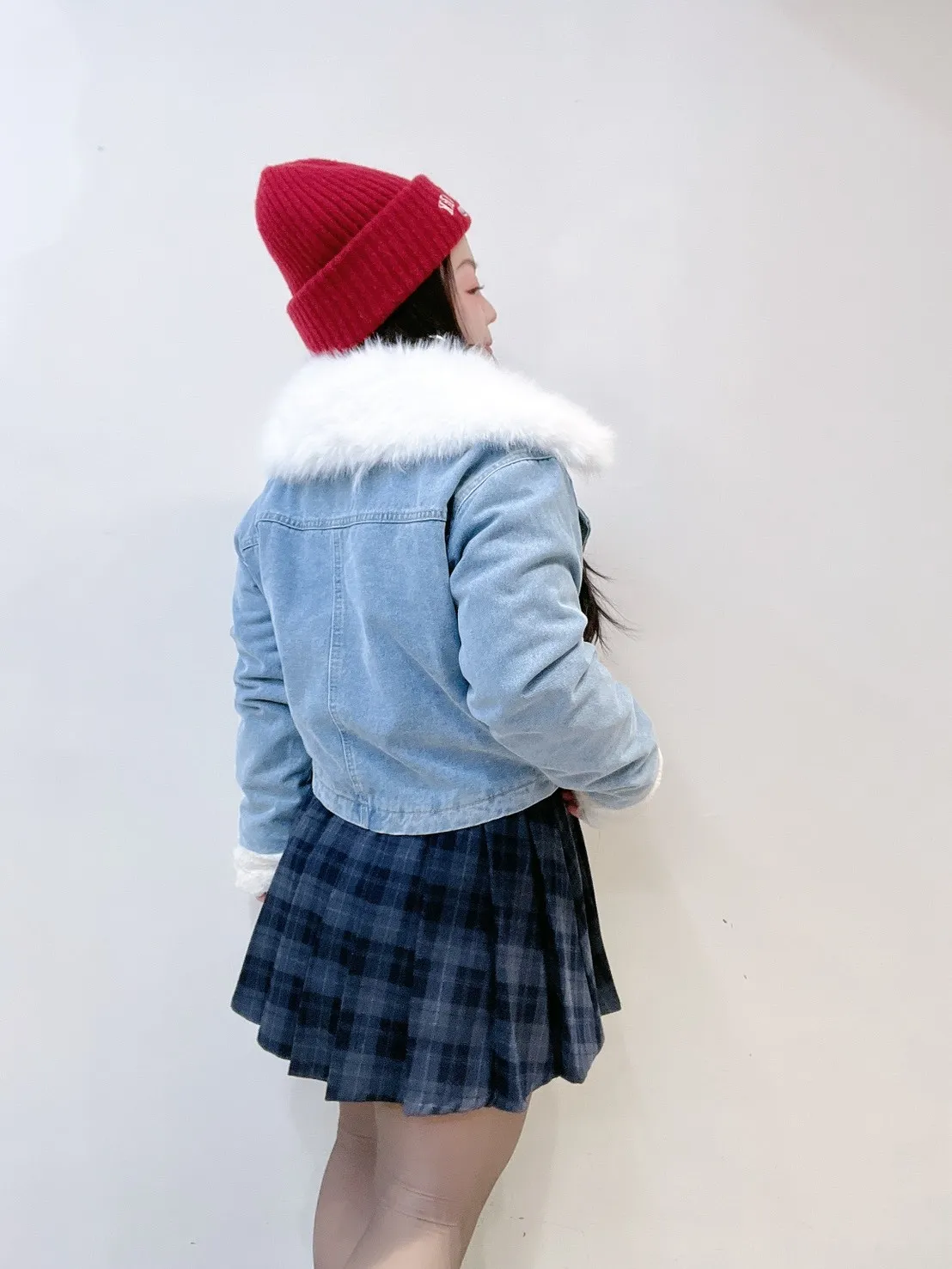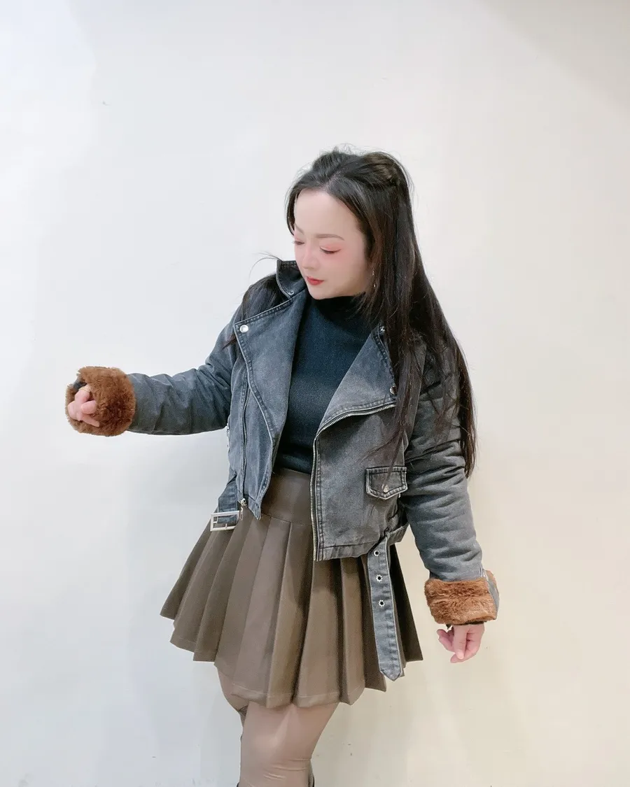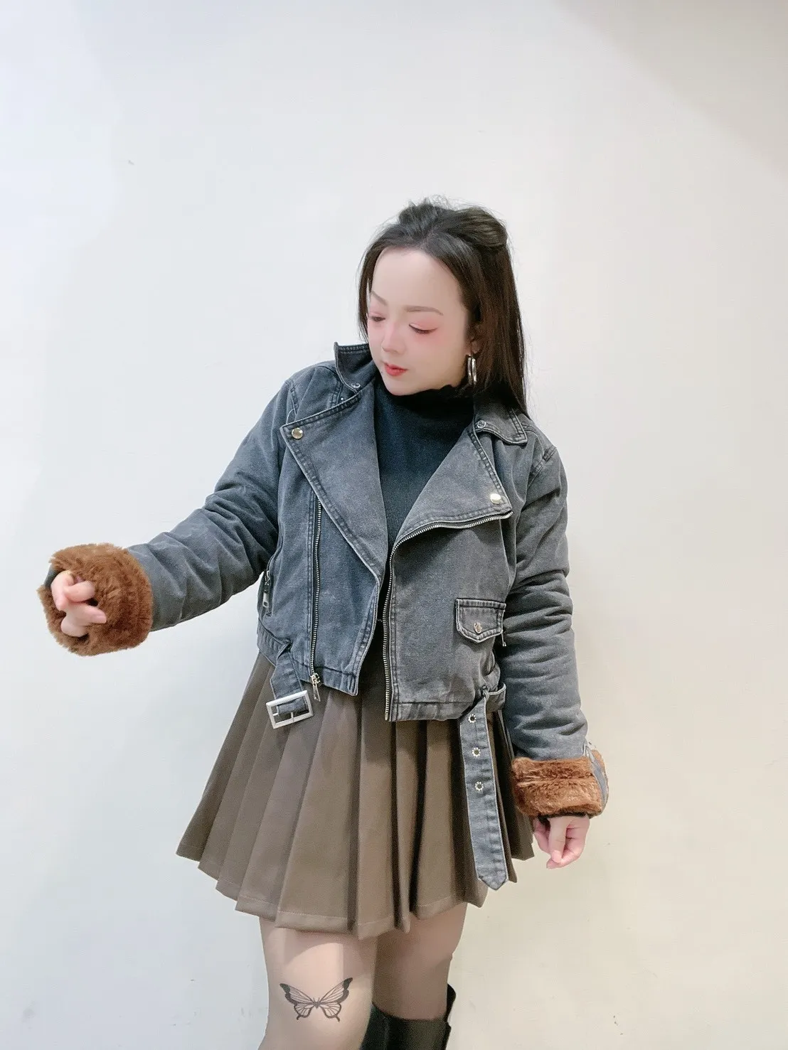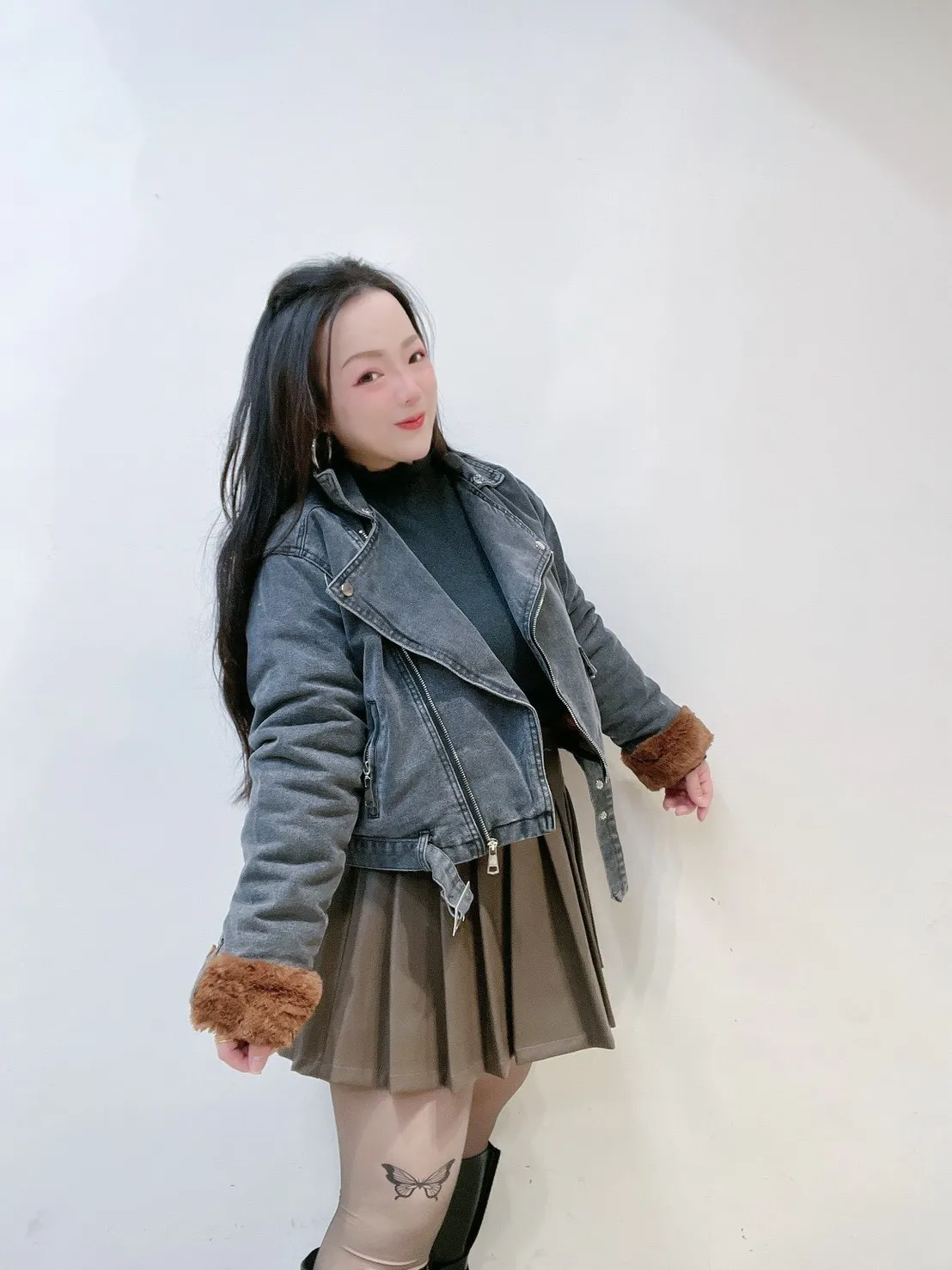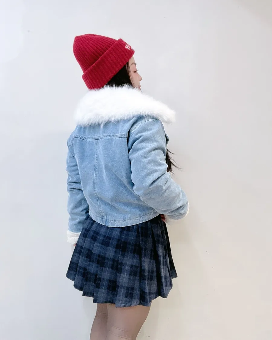 🧥 反摺毛絨袖口單寧騎士外套(毛領可拆)