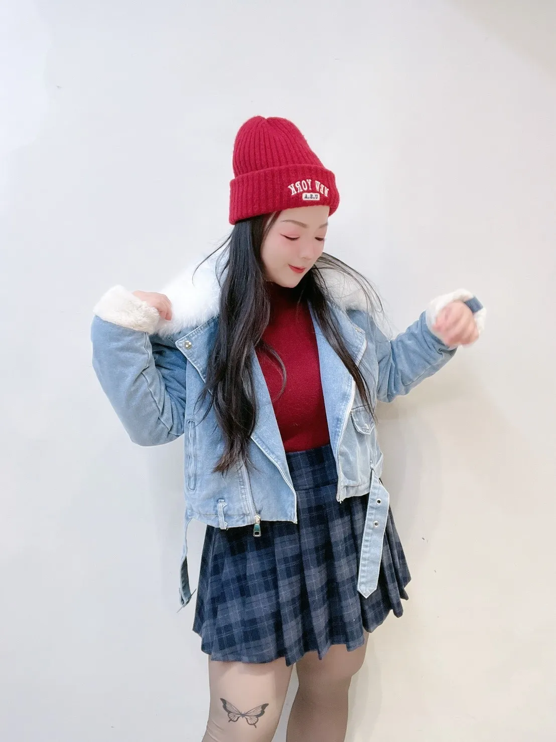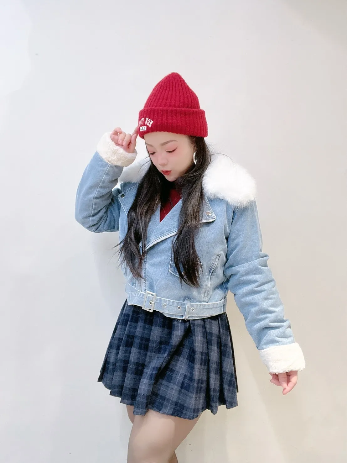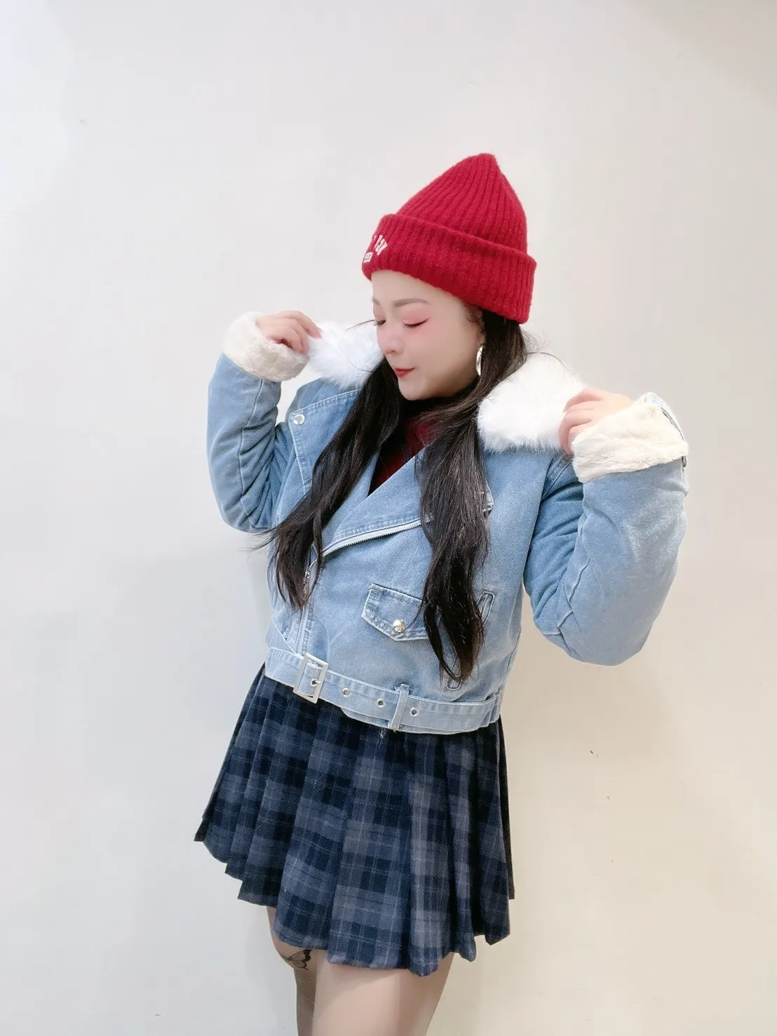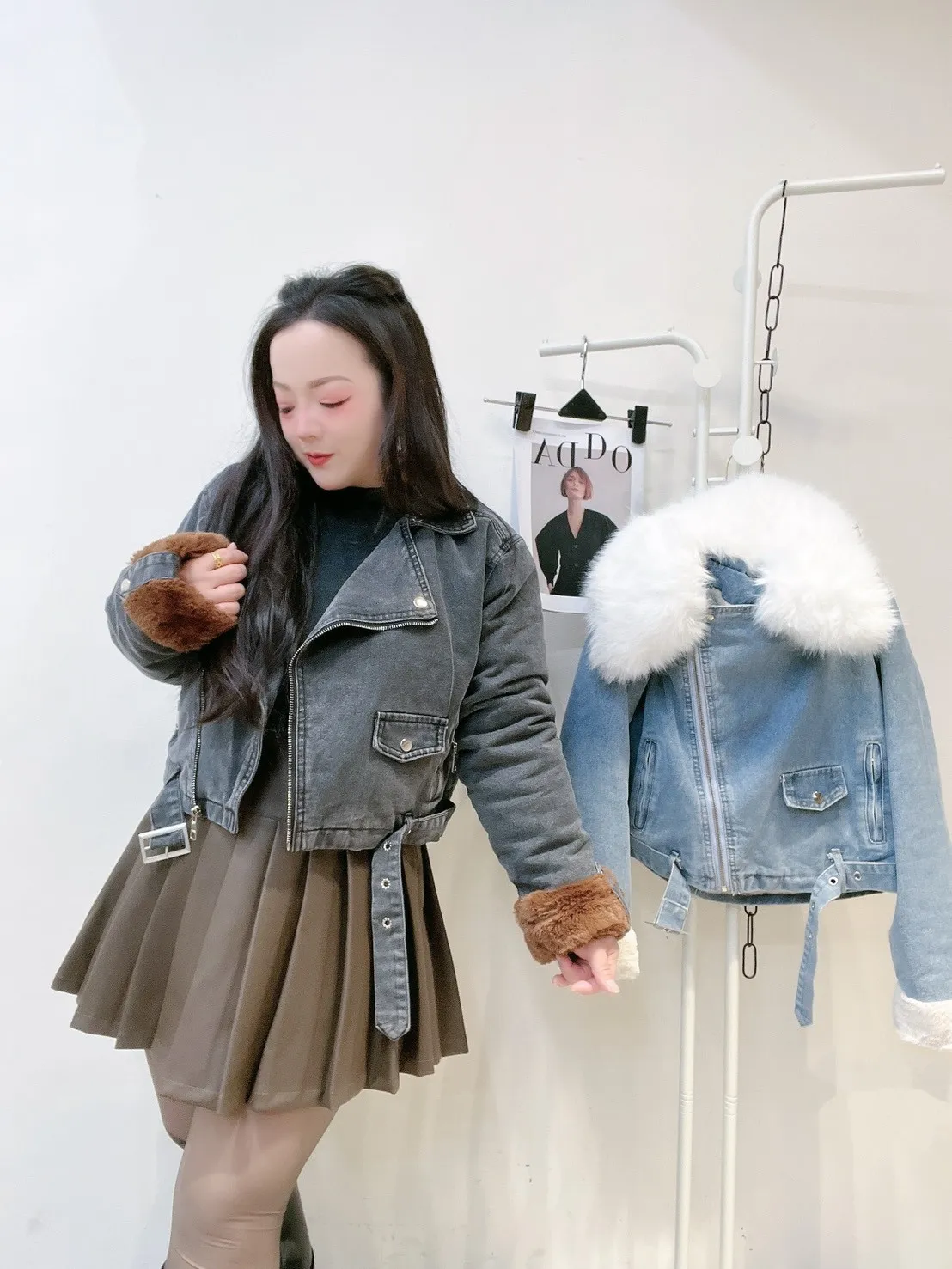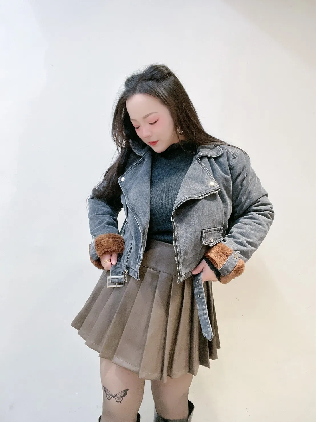 🧥 反摺毛絨袖口單寧騎士外套(毛領可拆)