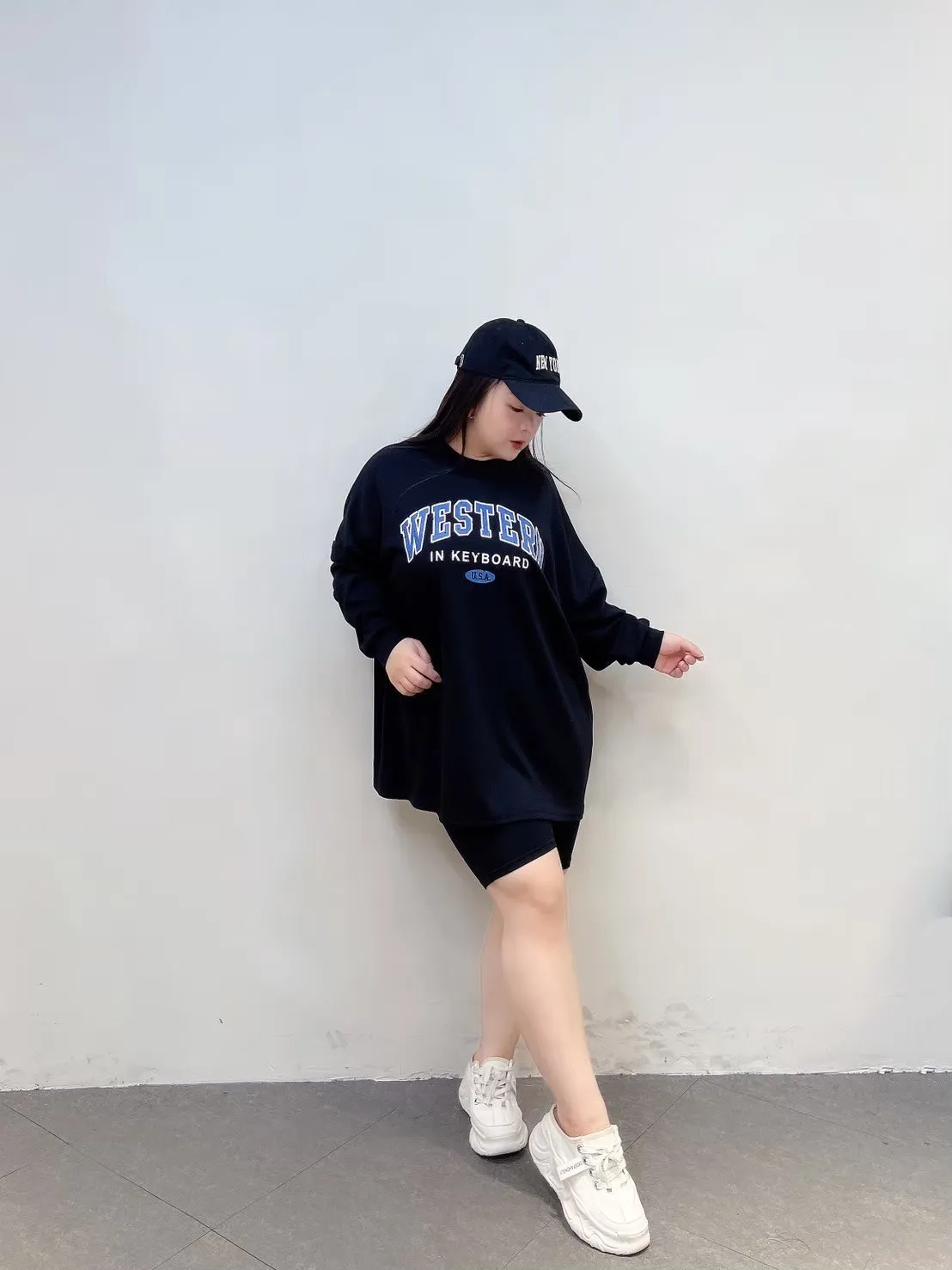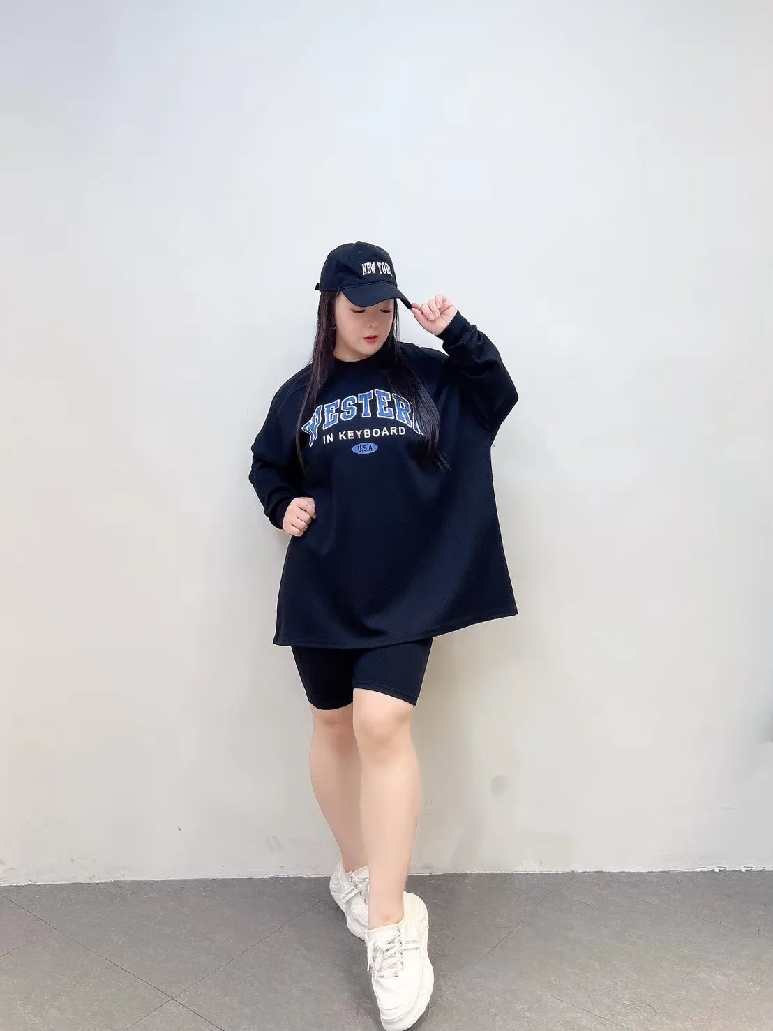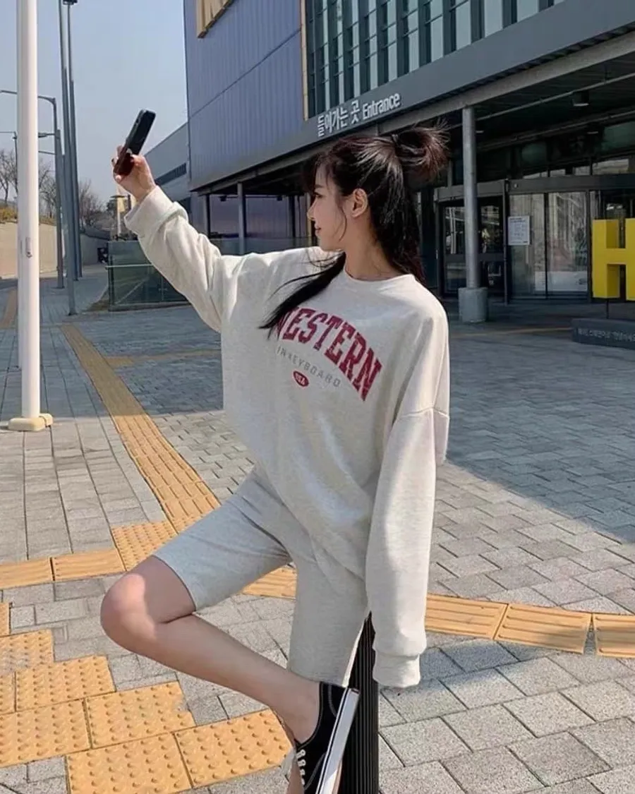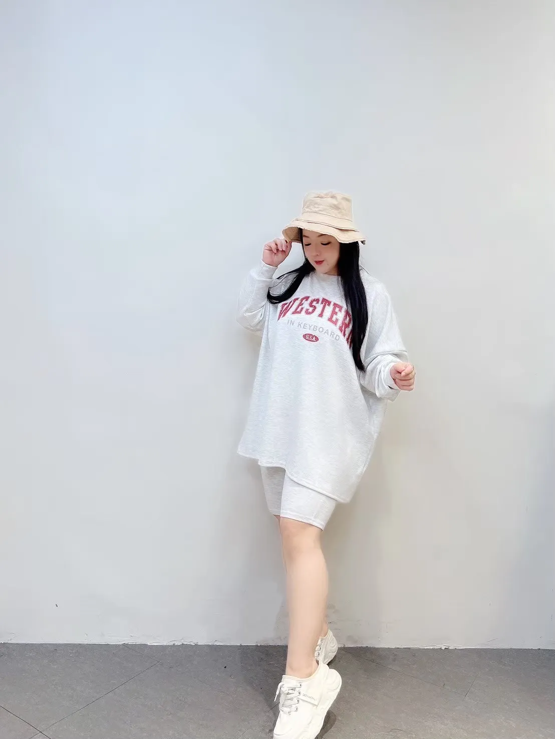 上衣寬鬆不貼身、五分褲長度剛好修飾大腿,