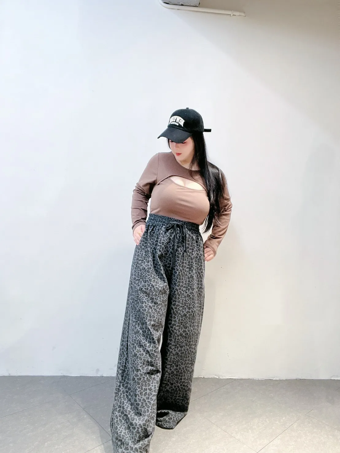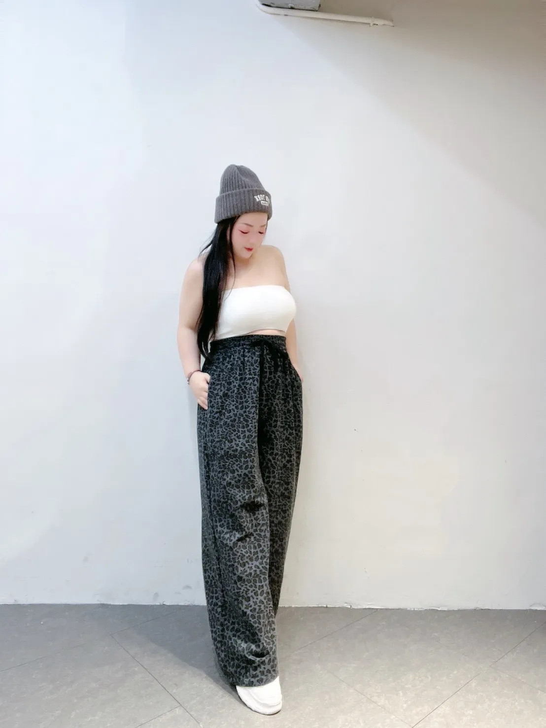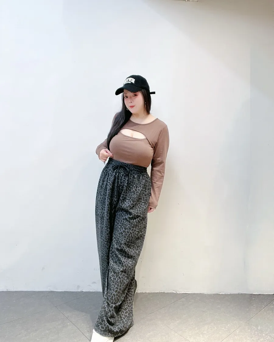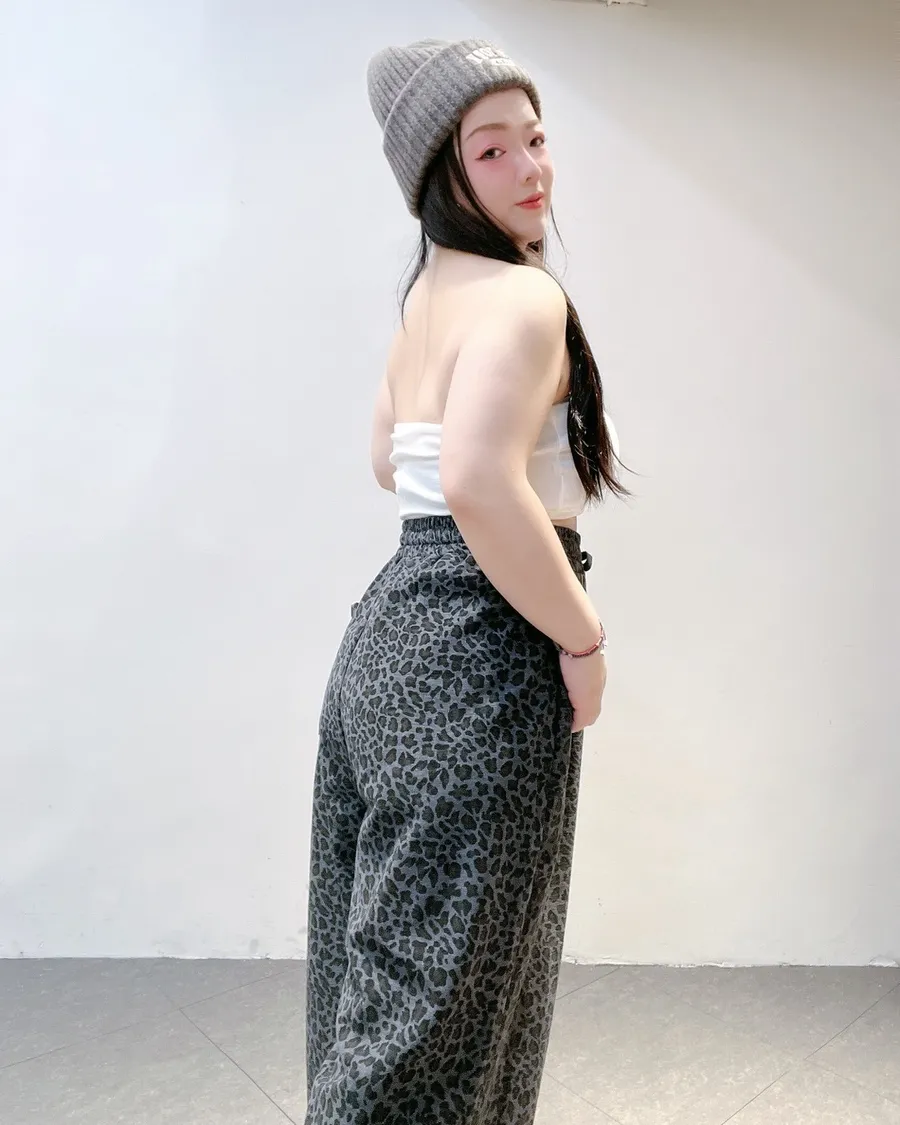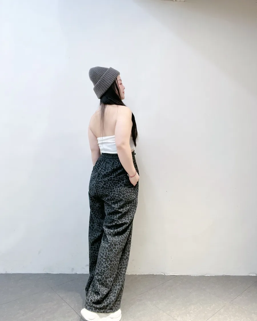 韓系豹紋高腰擴腿寬褲