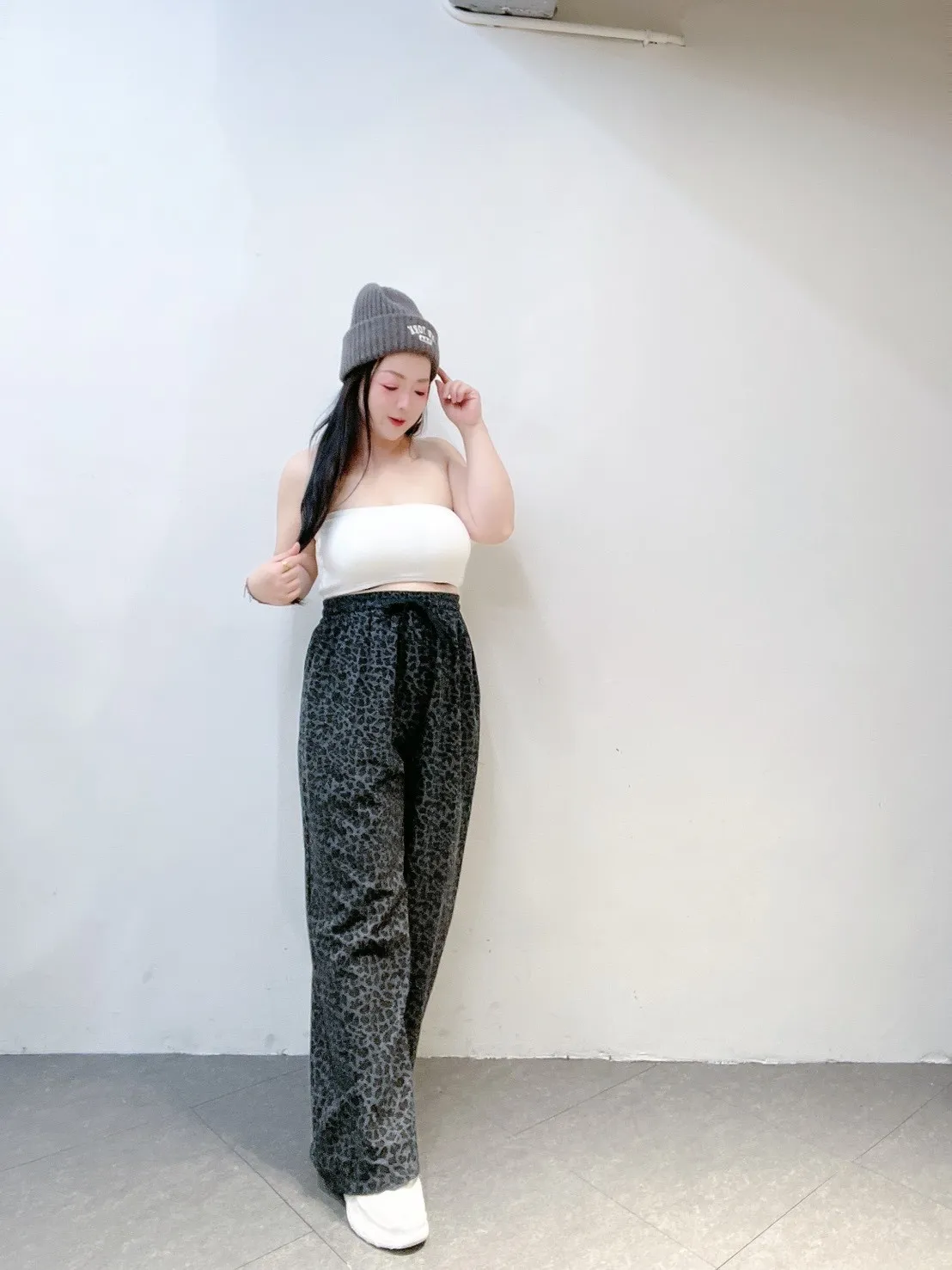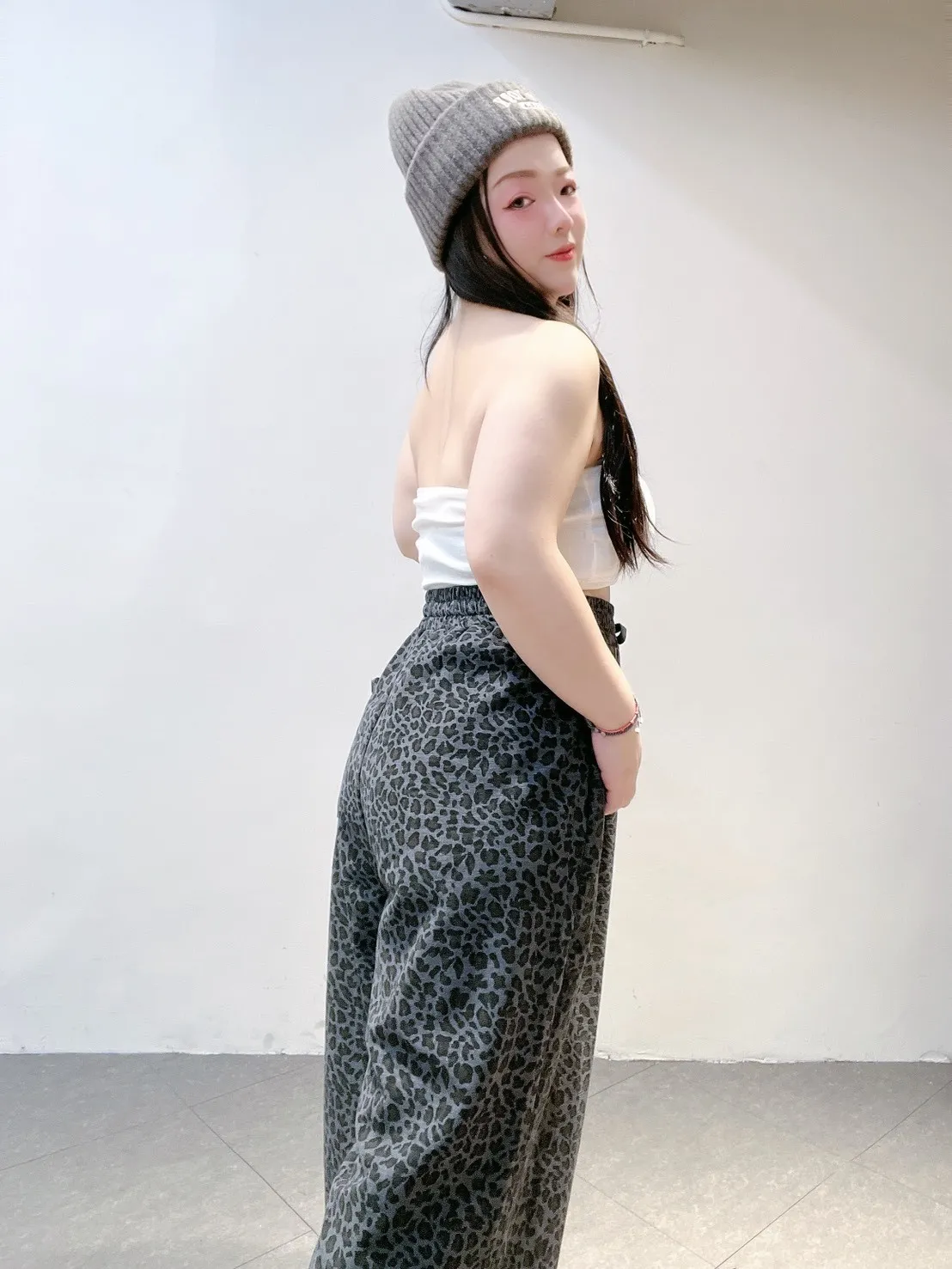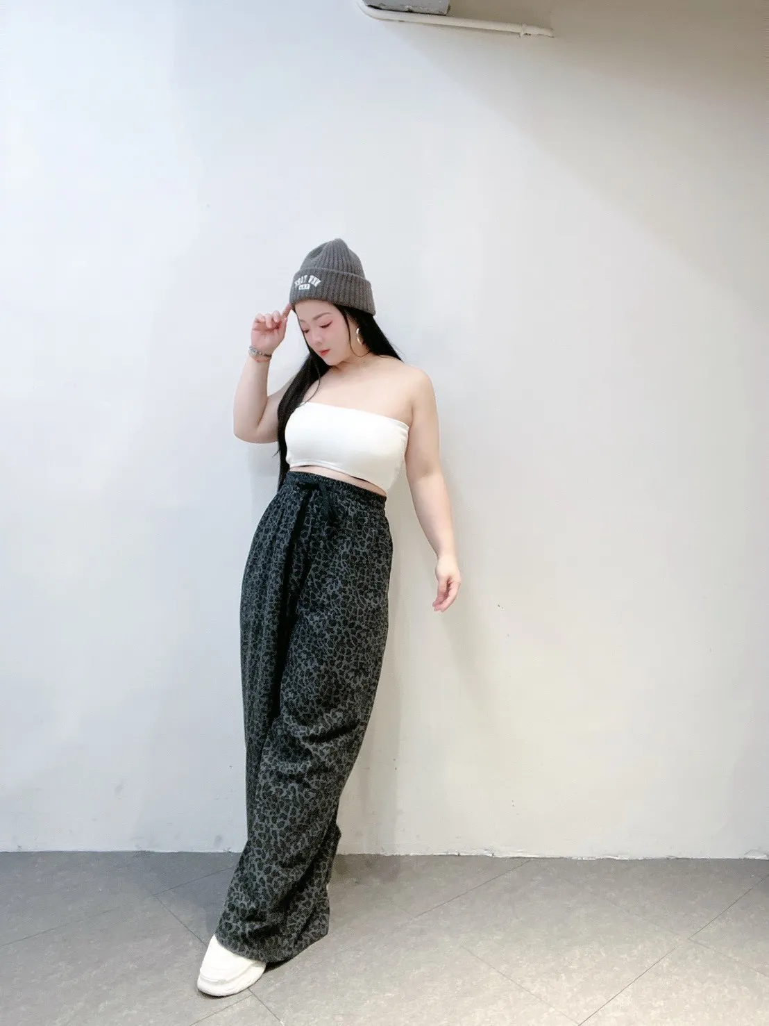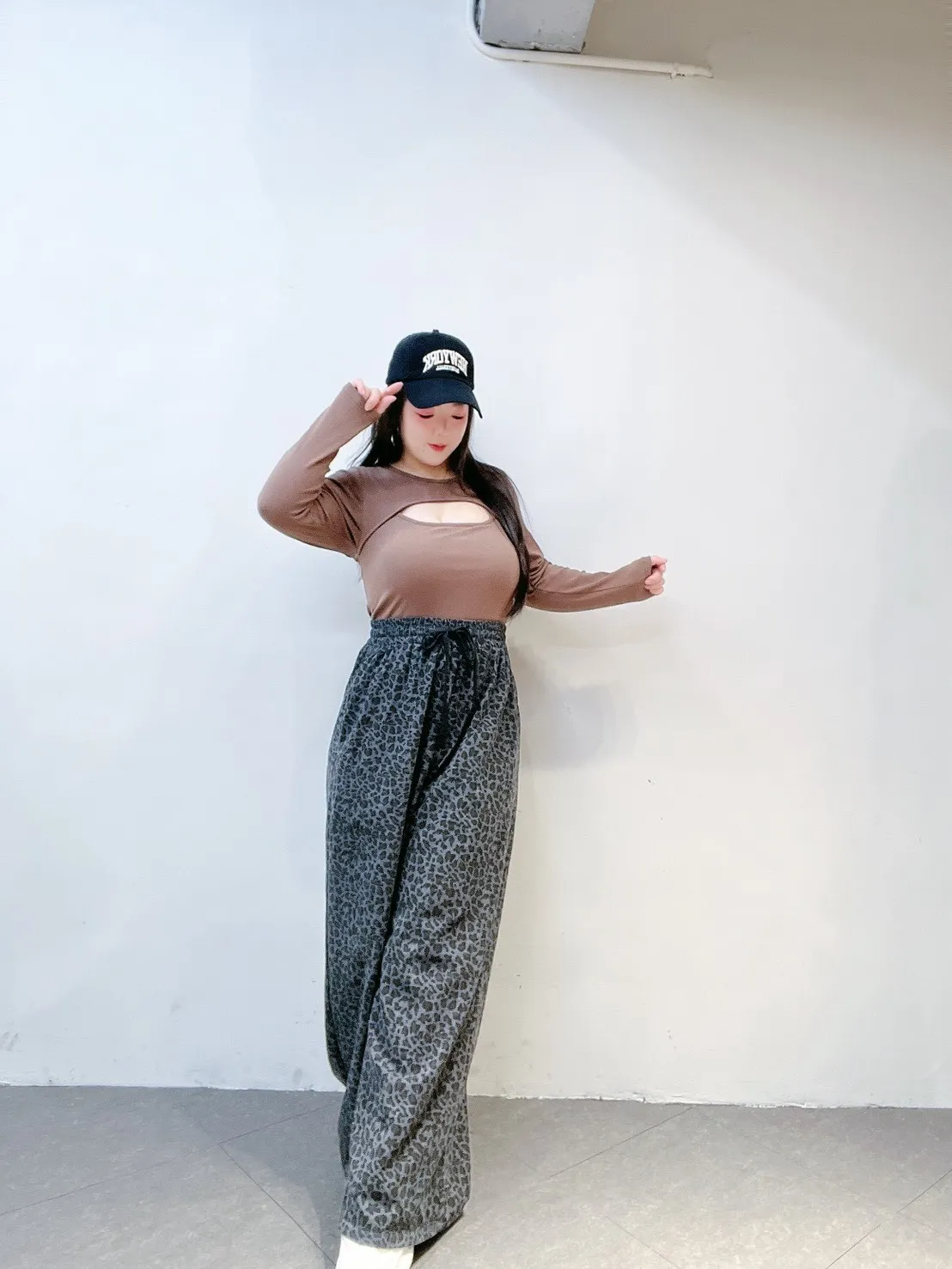 韓系豹紋高腰擴腿寬褲