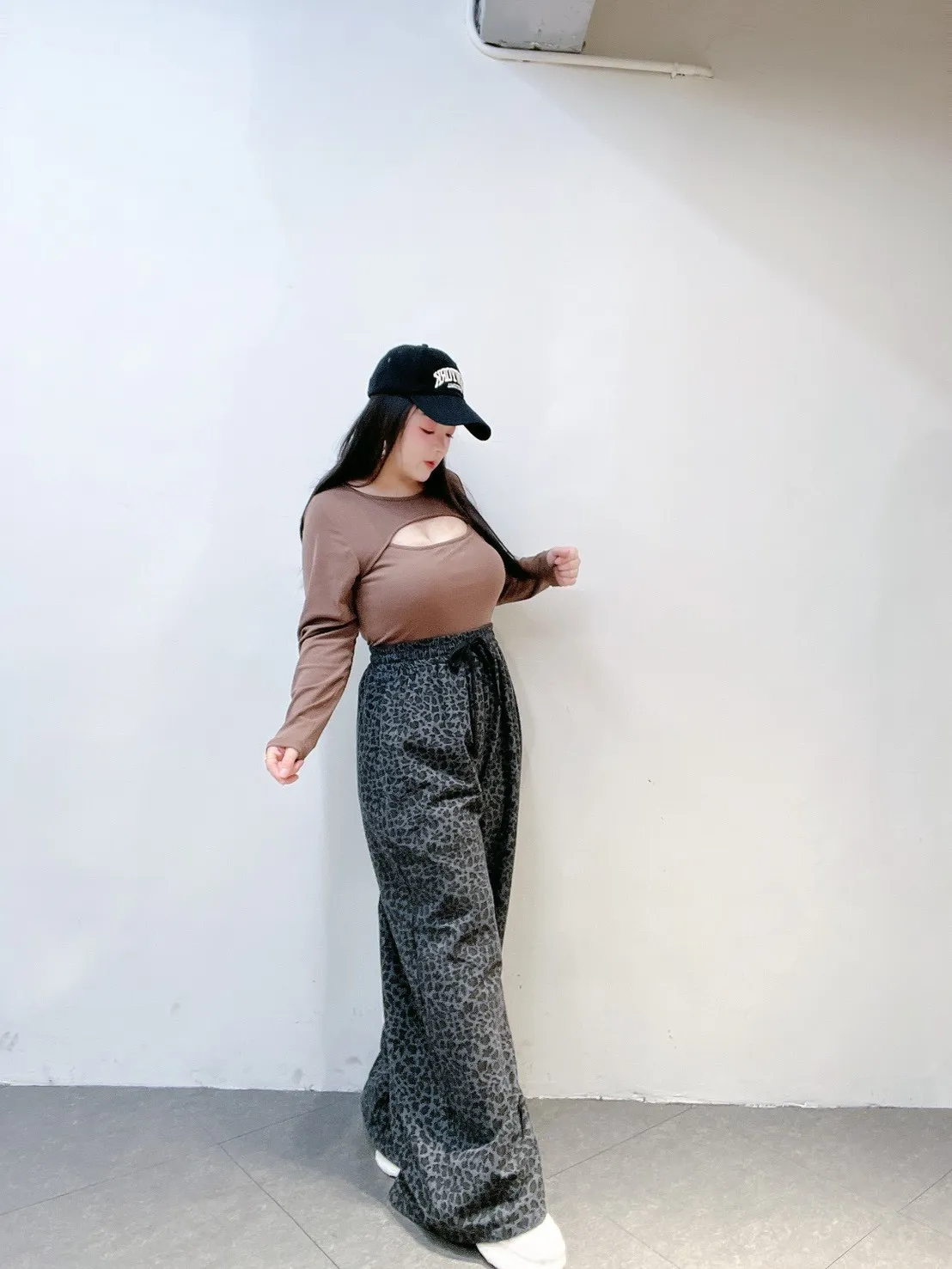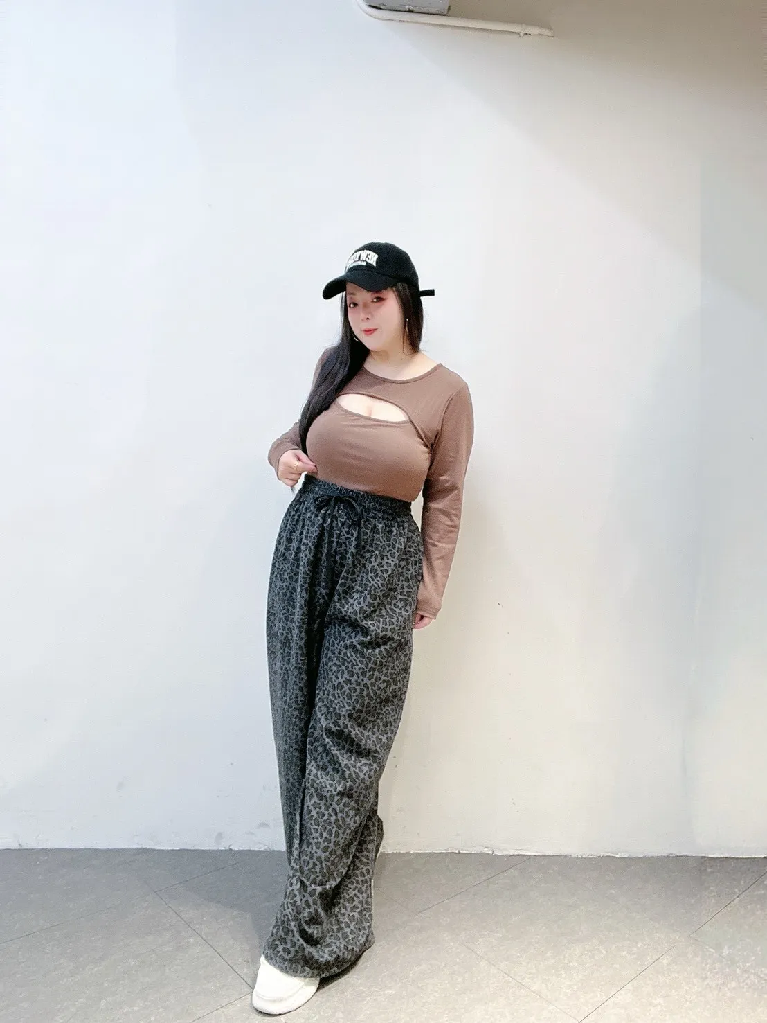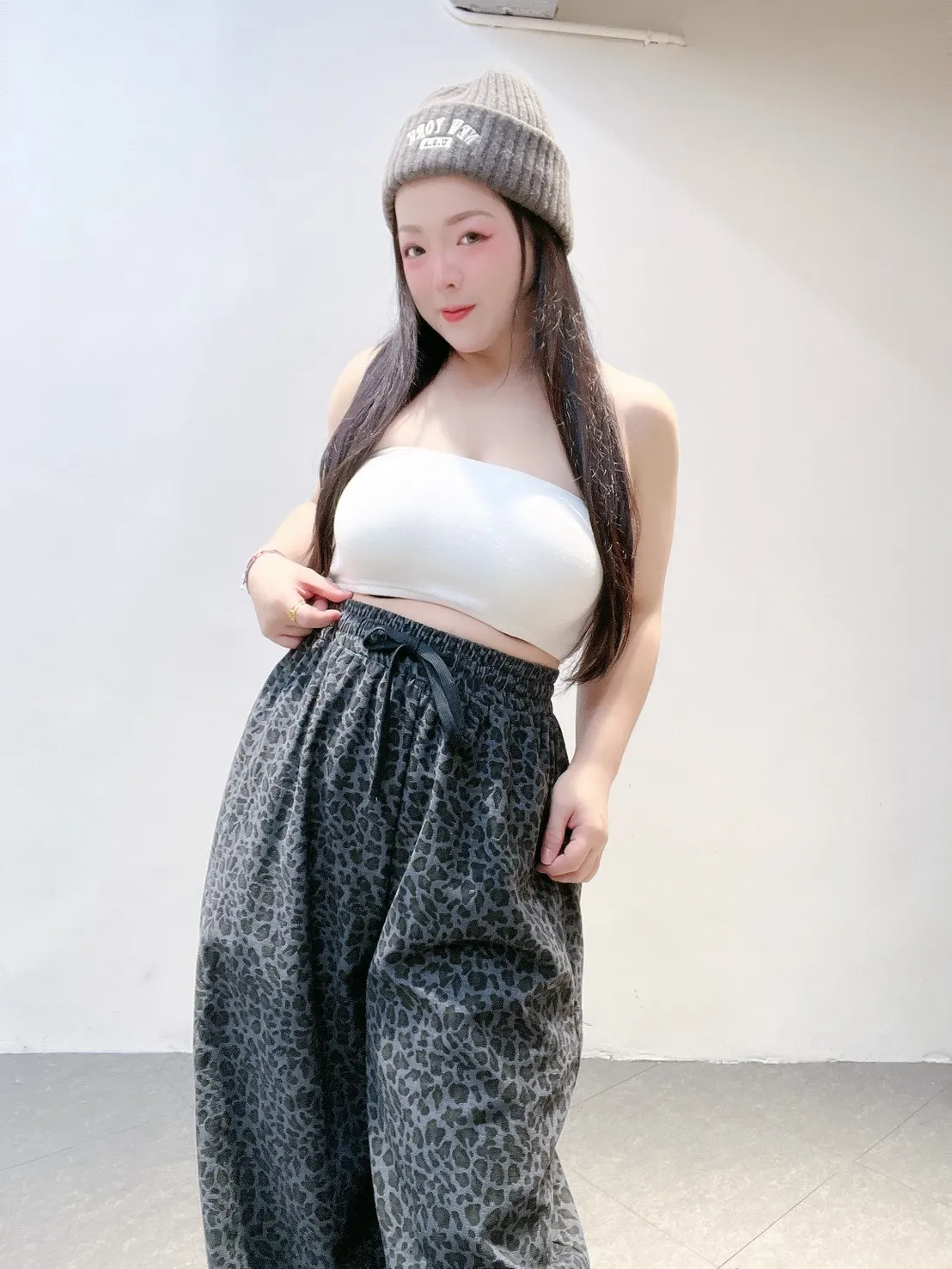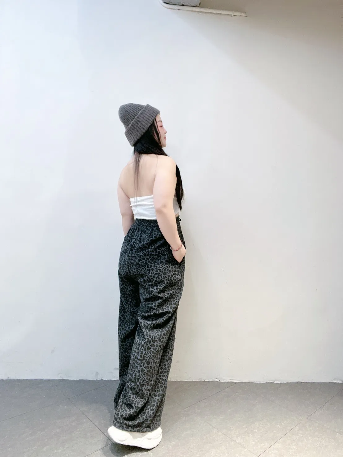韓系豹紋高腰擴腿寬褲