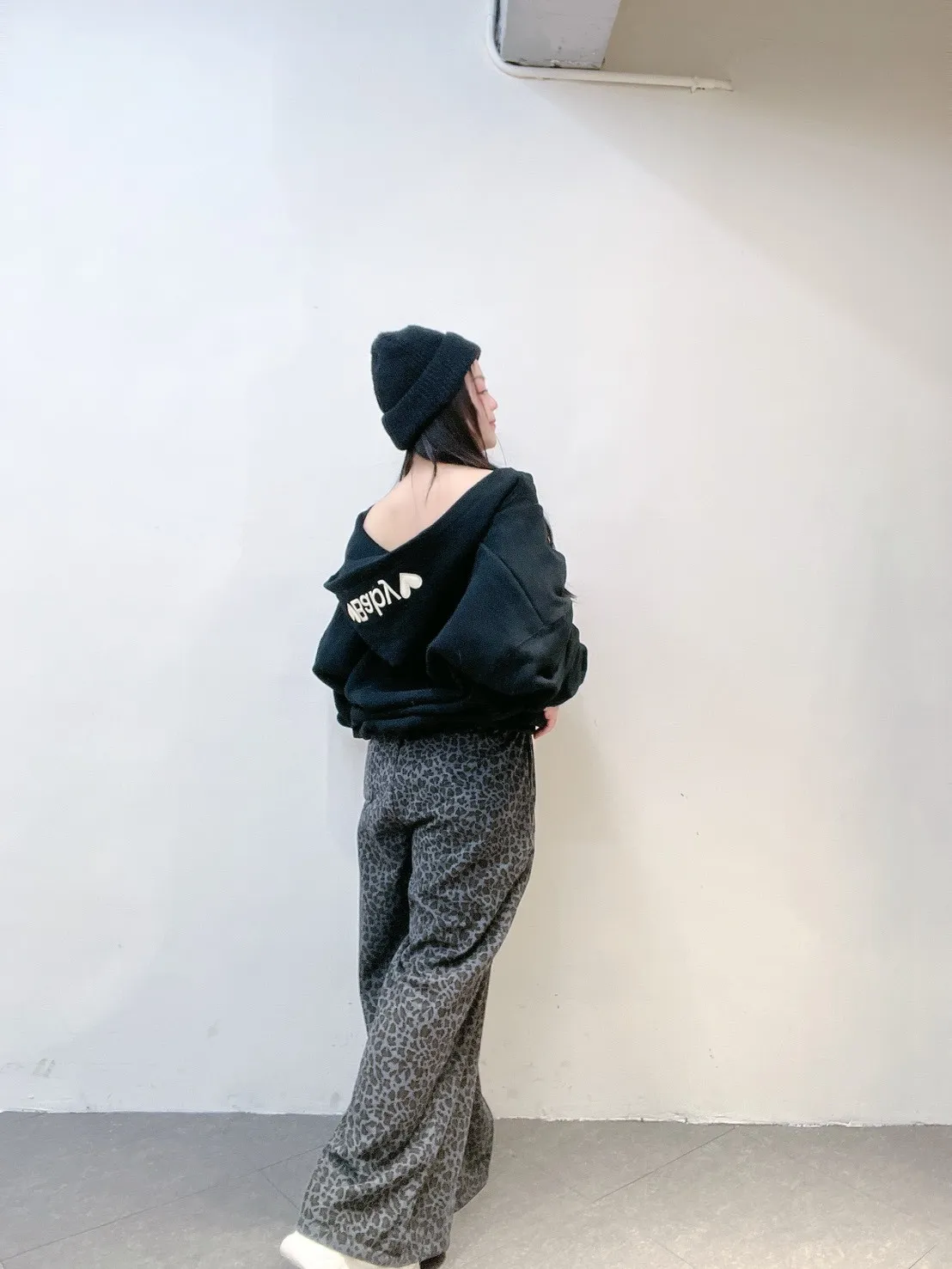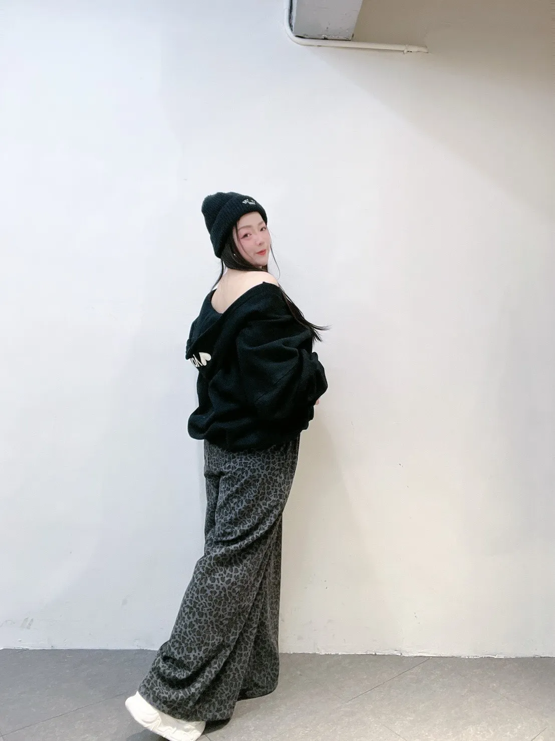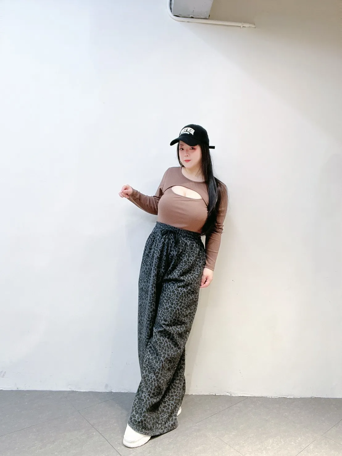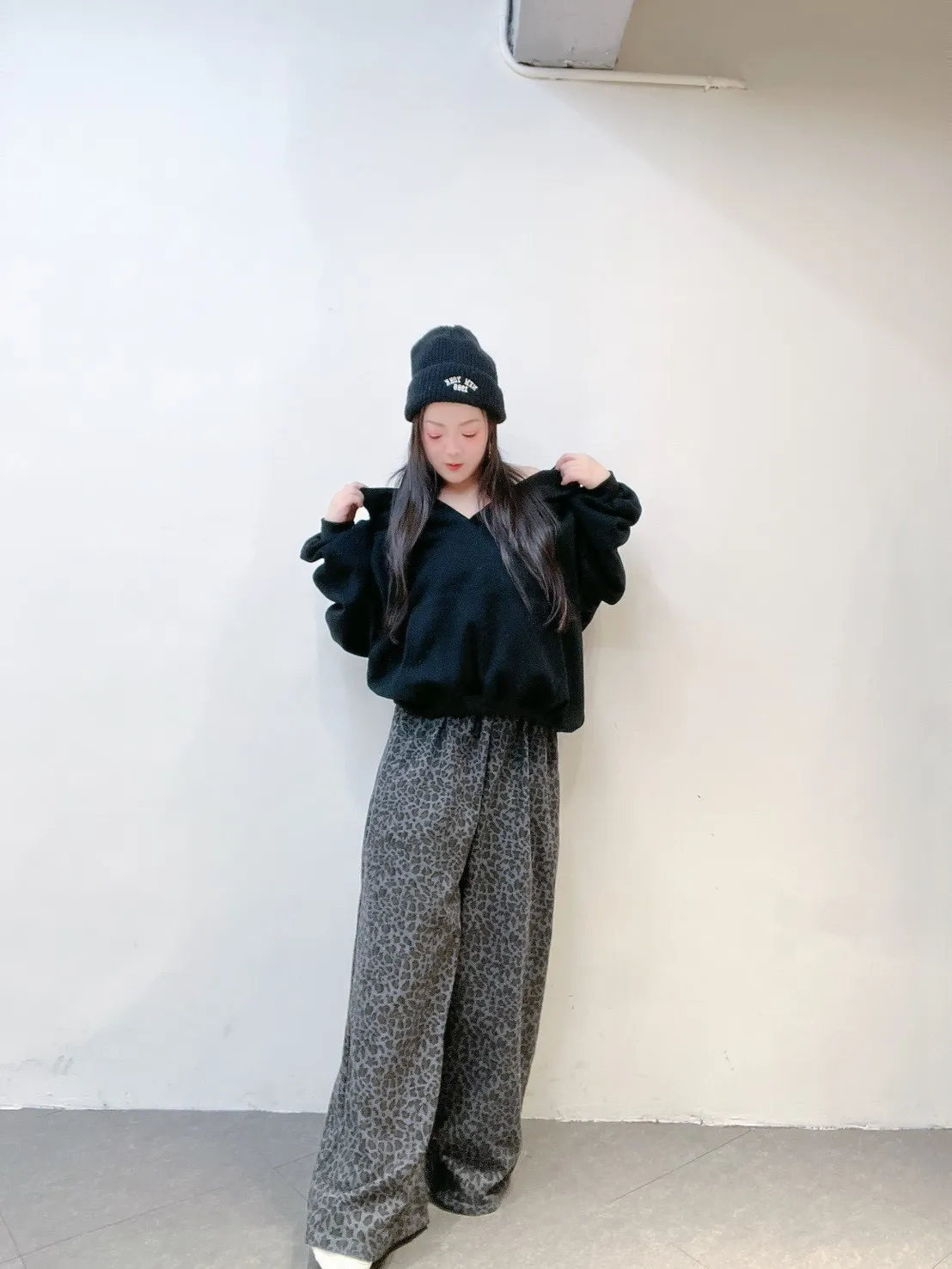韓系豹紋高腰擴腿寬褲