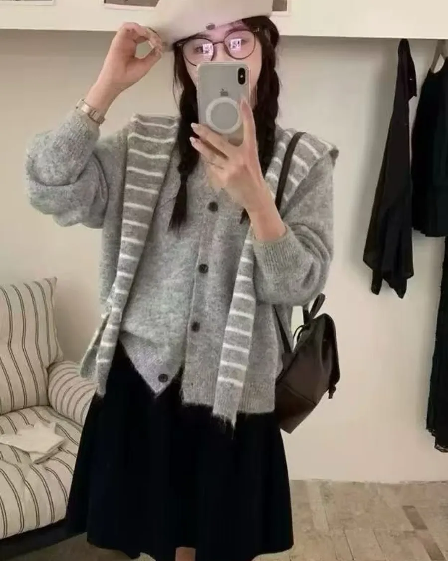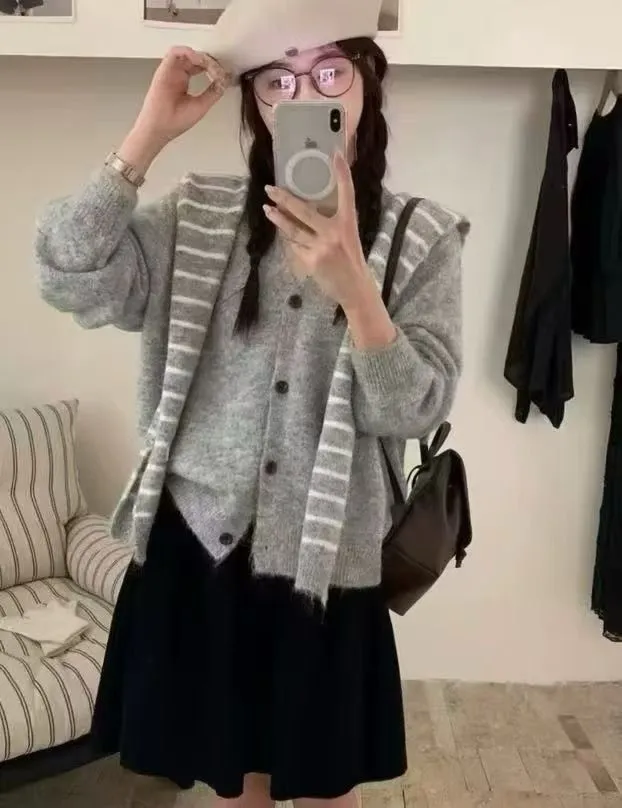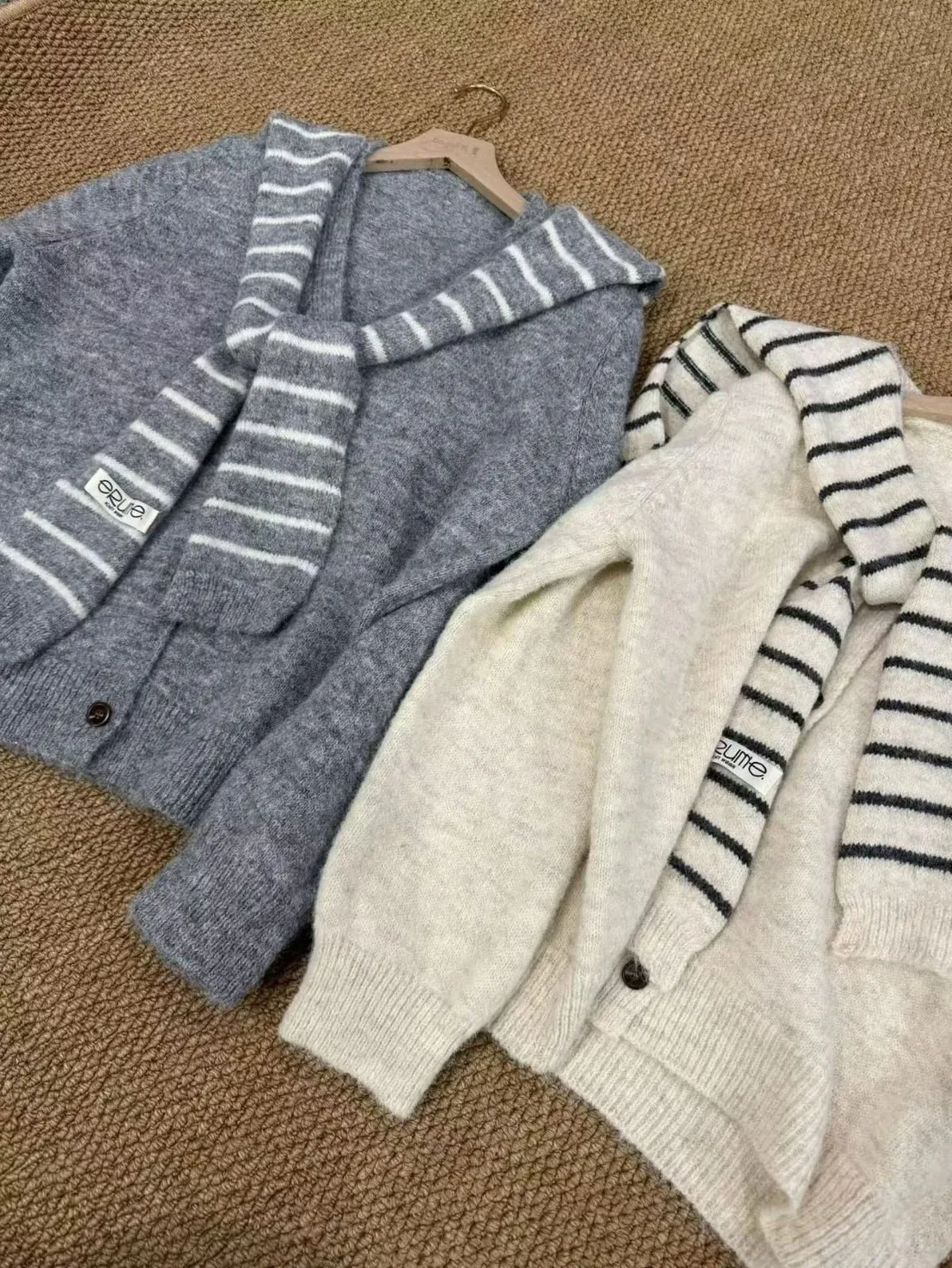 🔆影片介紹在這裡➡🧶 韓系落肩可拆式條紋披肩針織外套