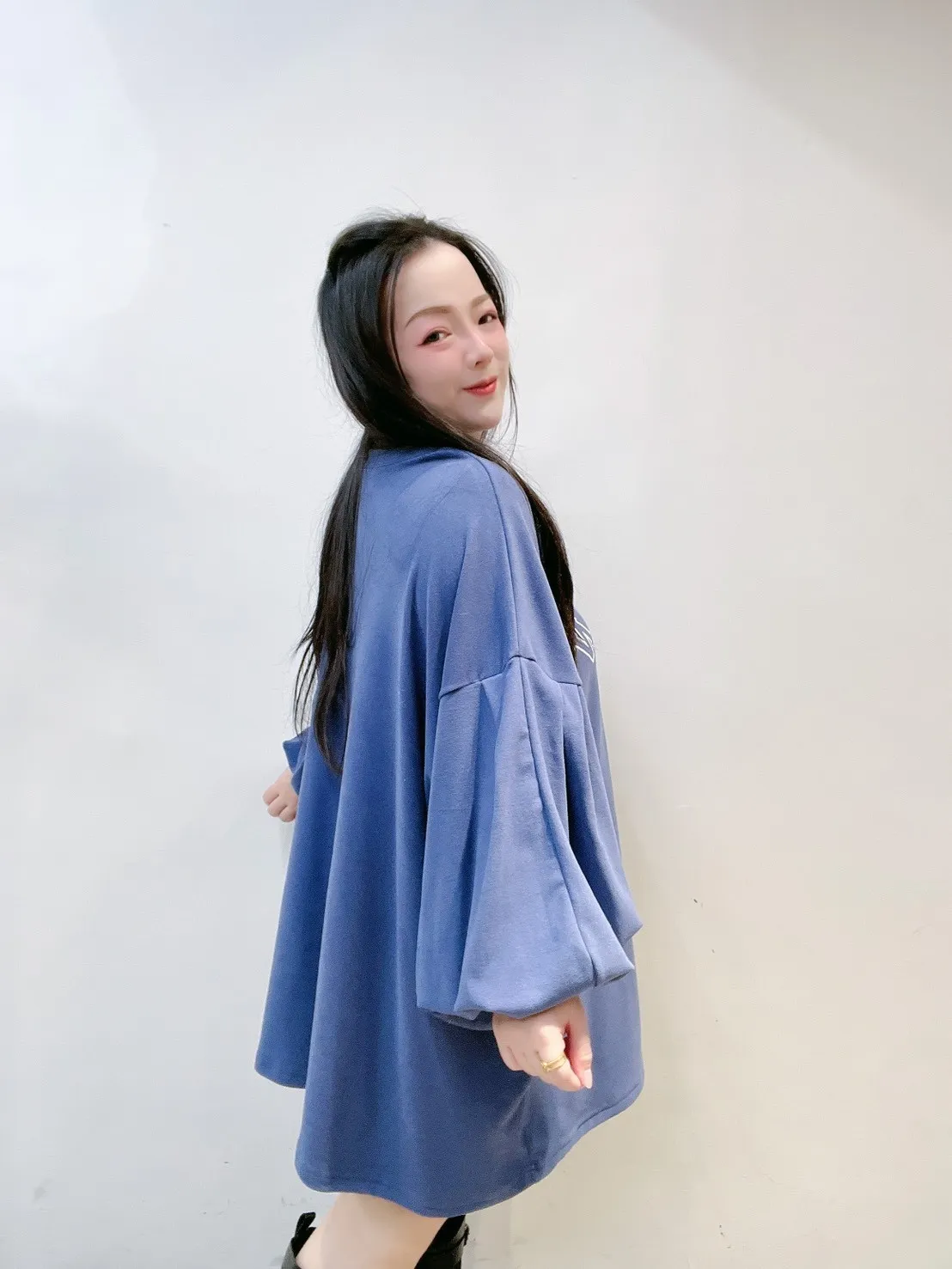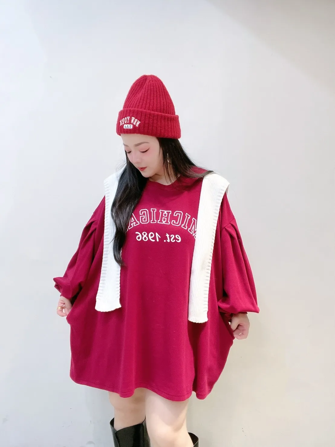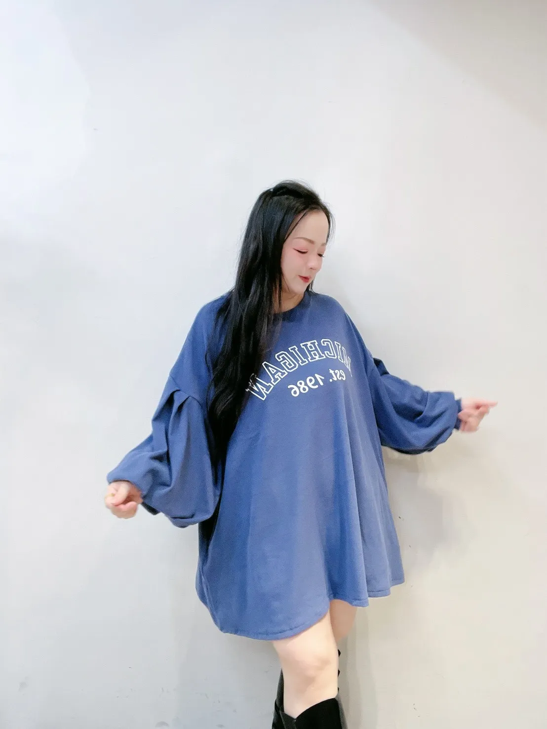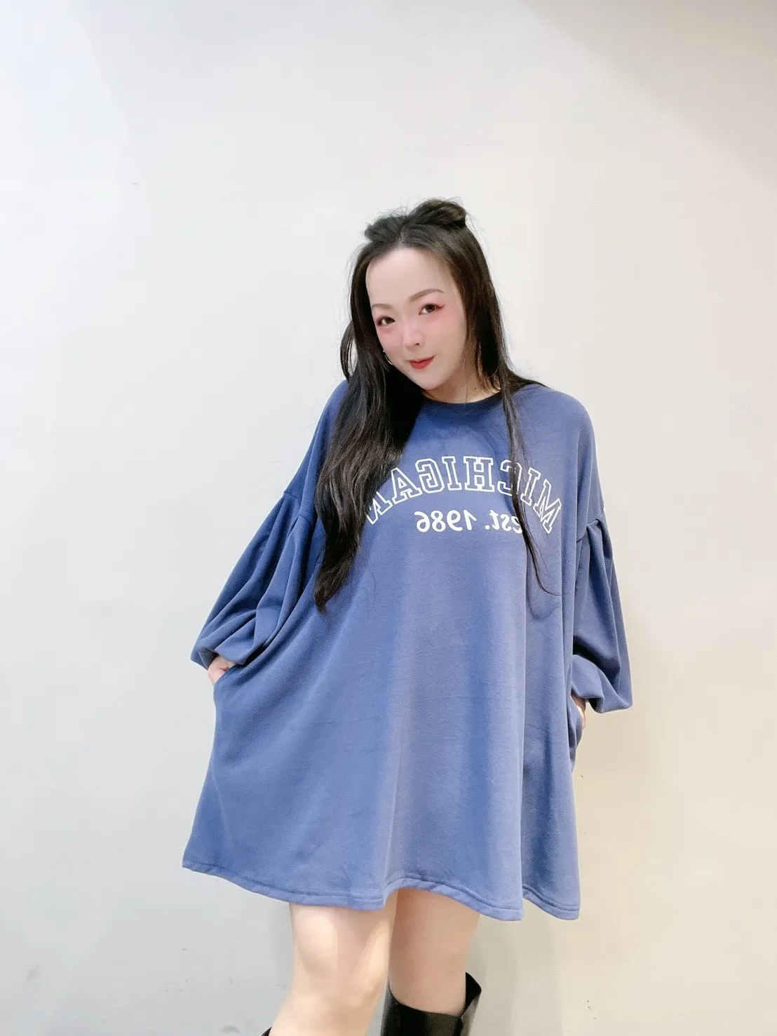 特色: 蓬蓬袖+大學T版長度=可甜可辣、可休閒也可洋裝風