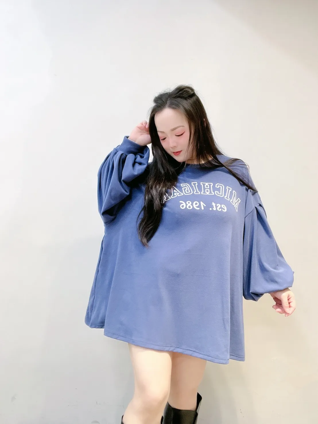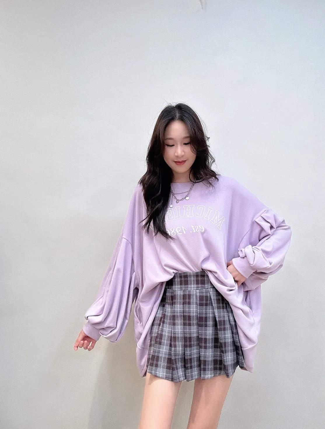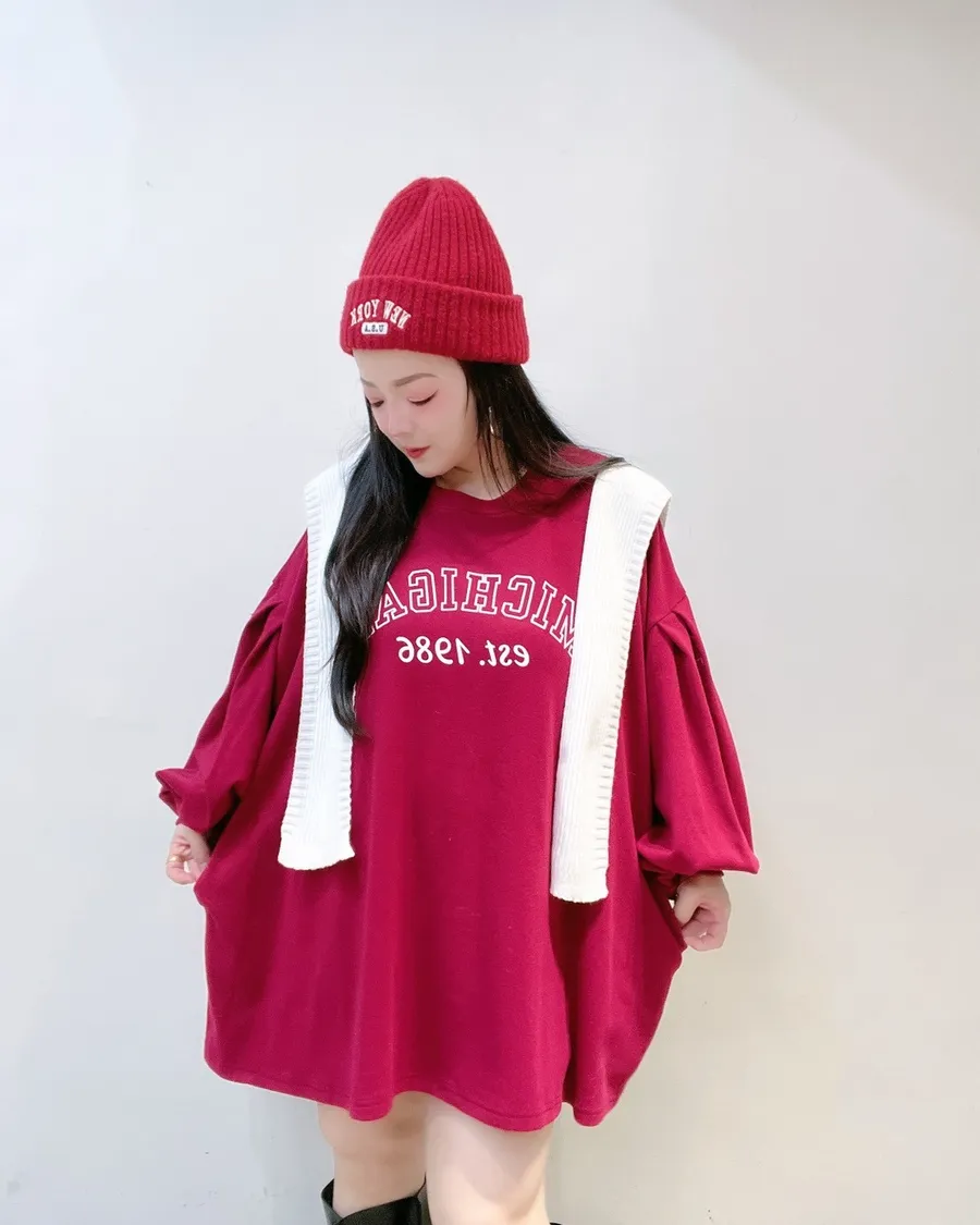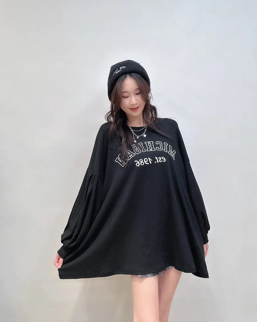 特色: 蓬蓬袖+大學T版長度=可甜可辣、可休閒也可洋裝風