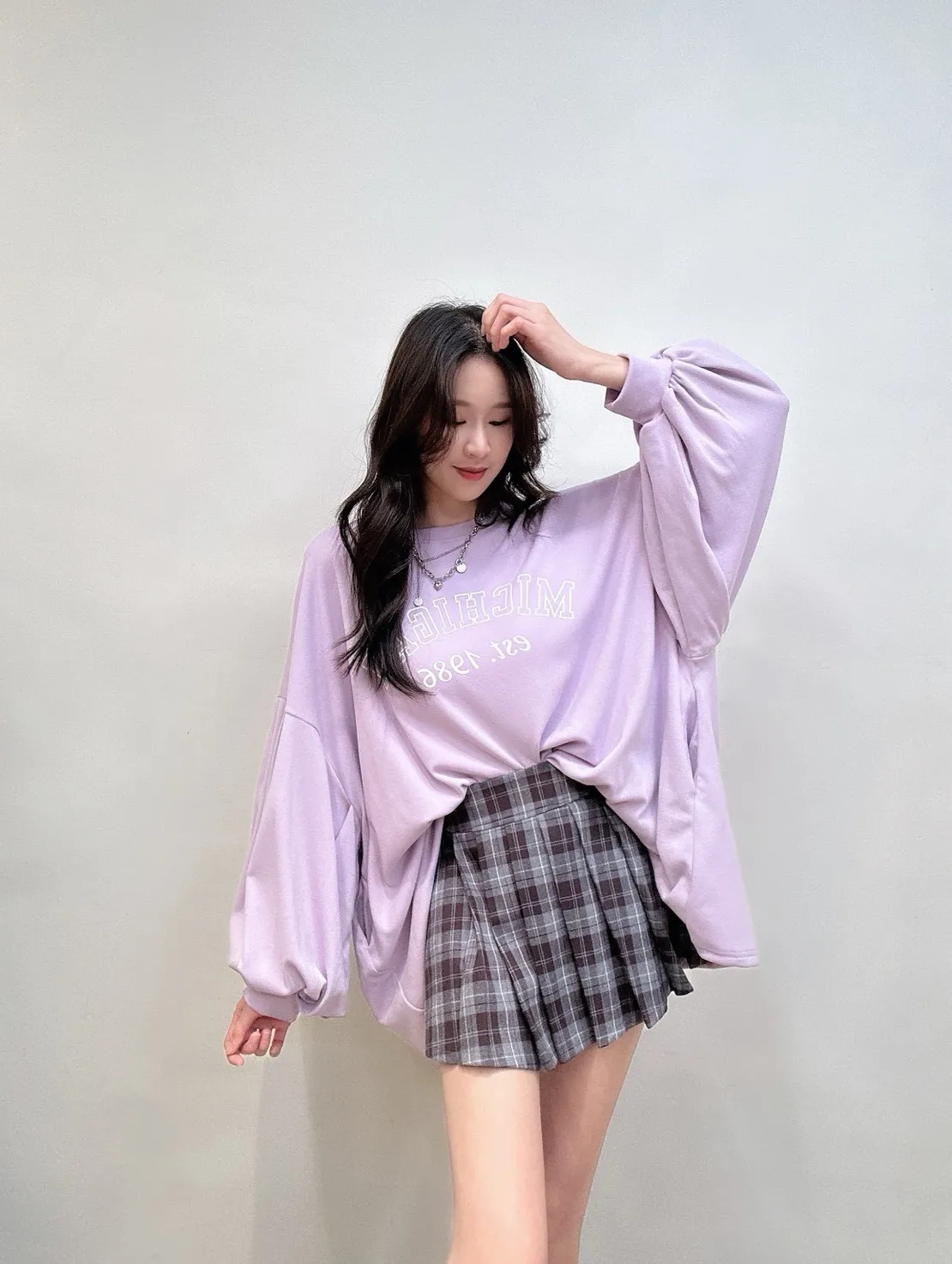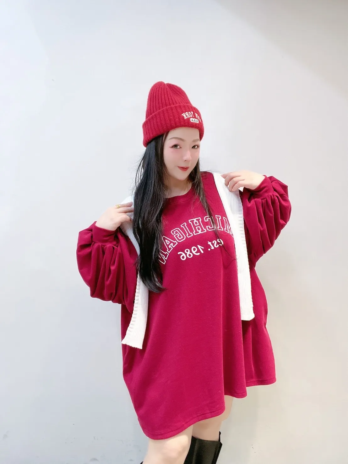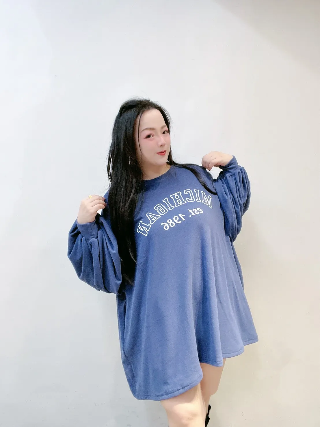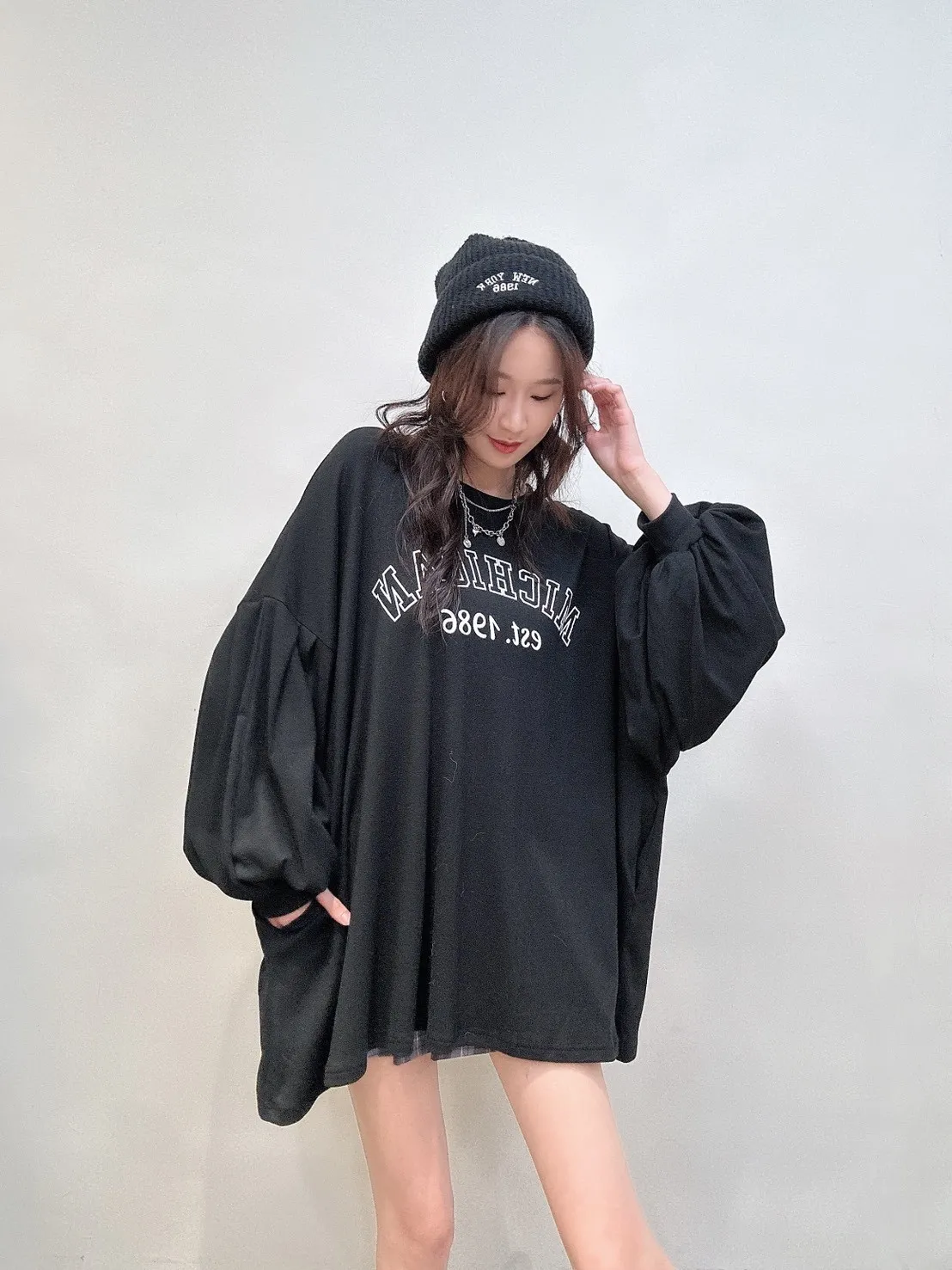 特色: 蓬蓬袖+大學T版長度=可甜可辣、可休閒也可洋裝風