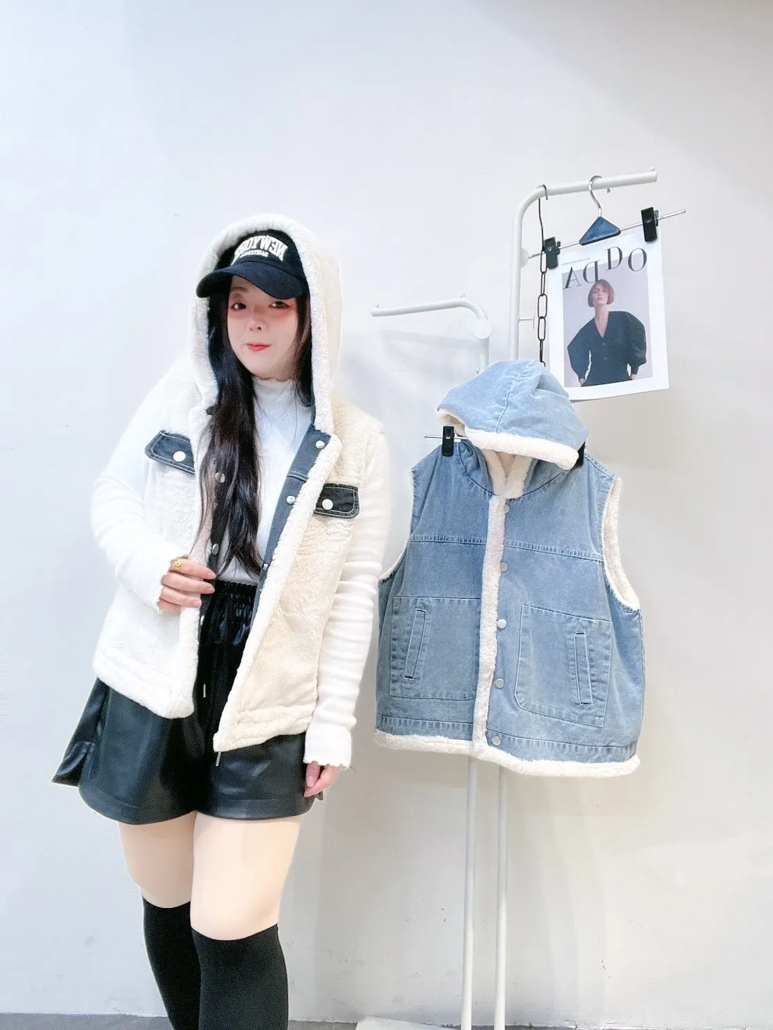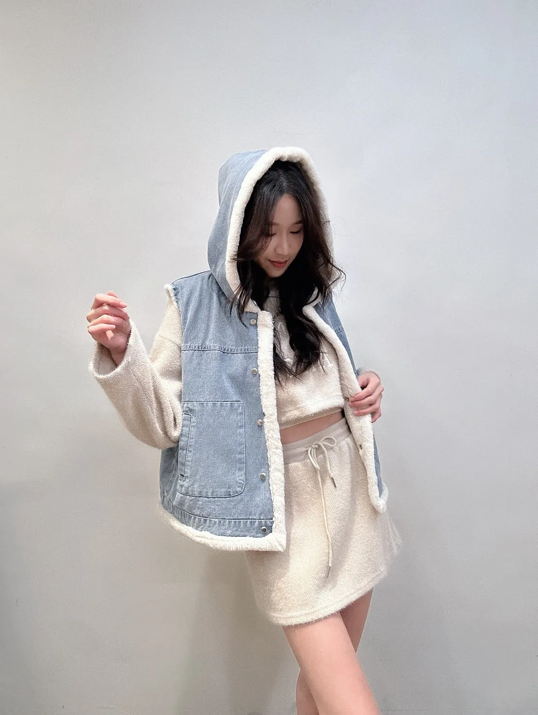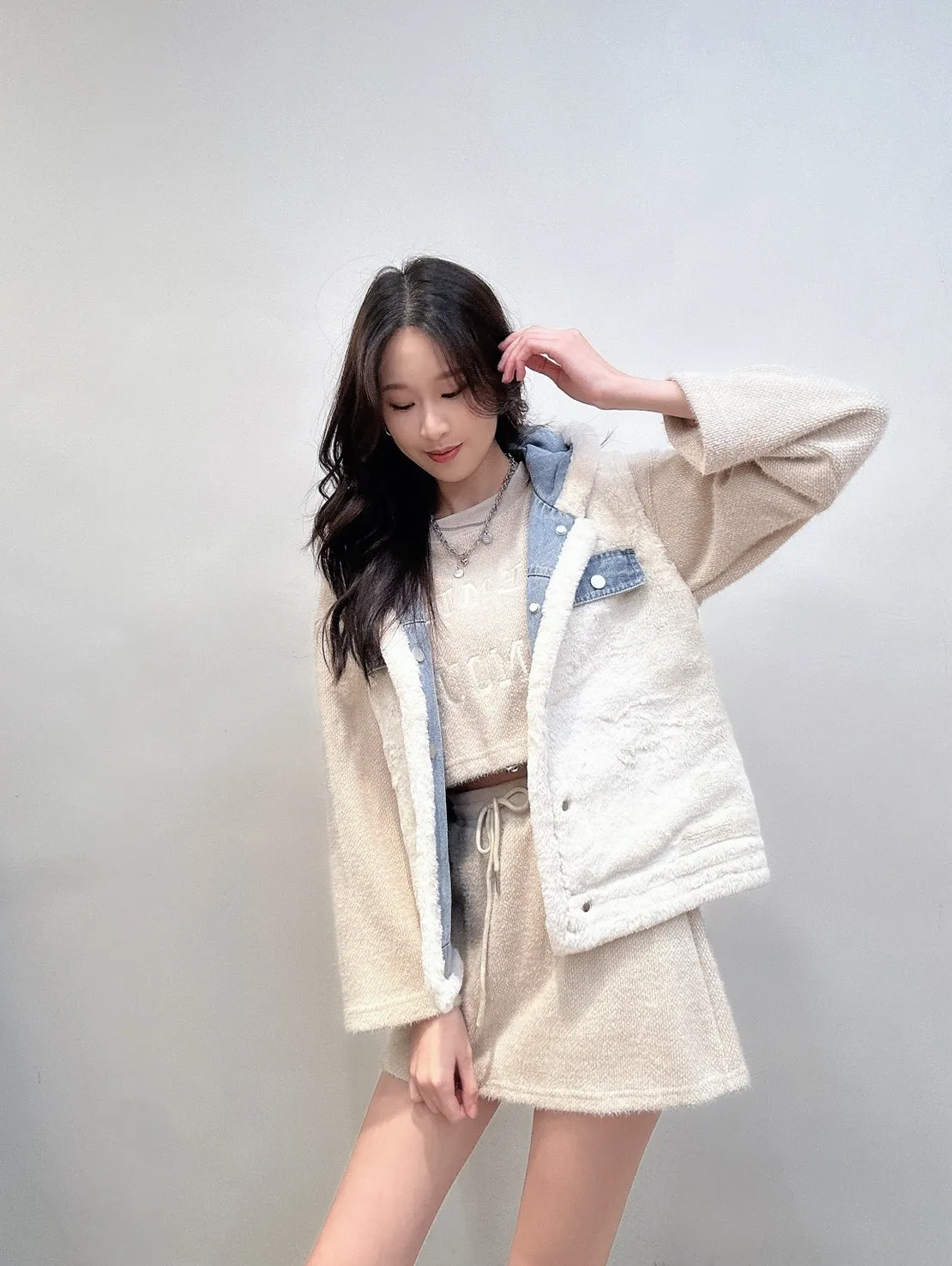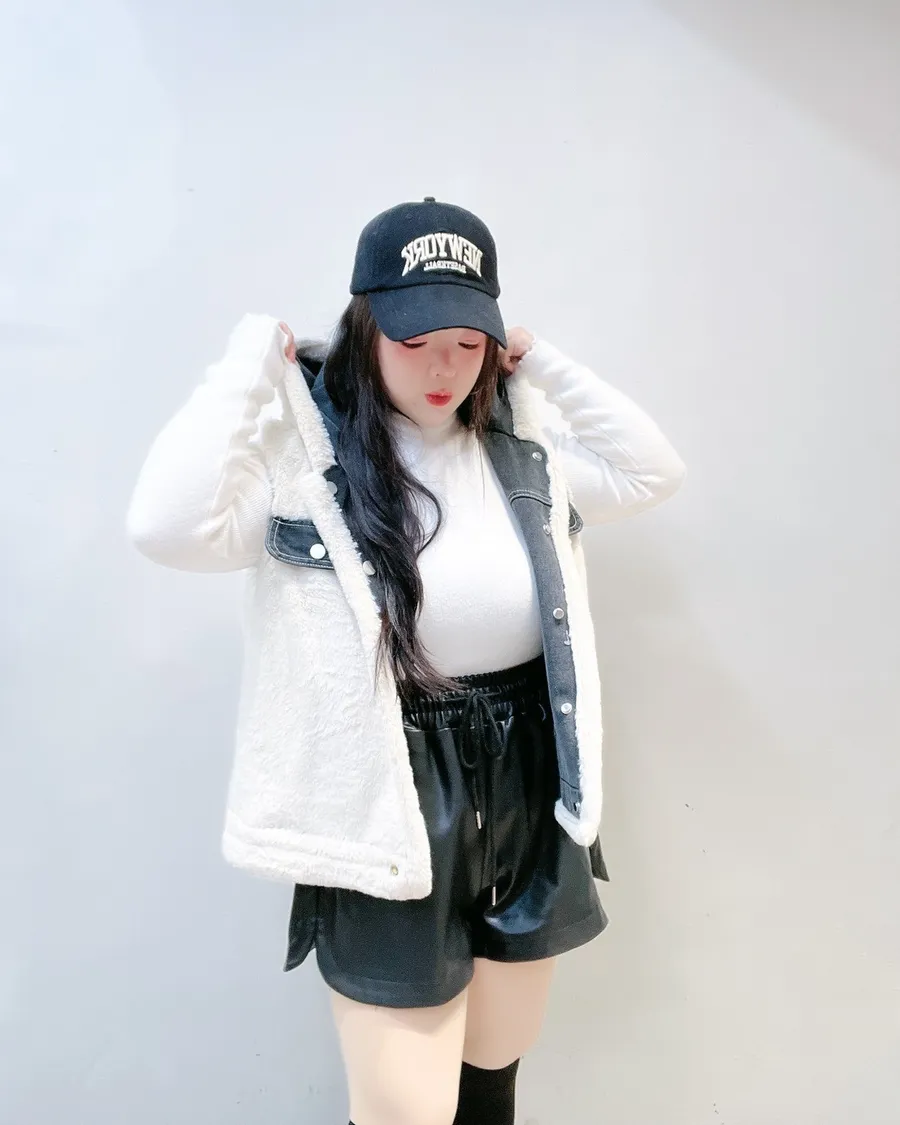 外層牛仔+內裡小熊絨,保暖度夠、層次感也直接拉滿。