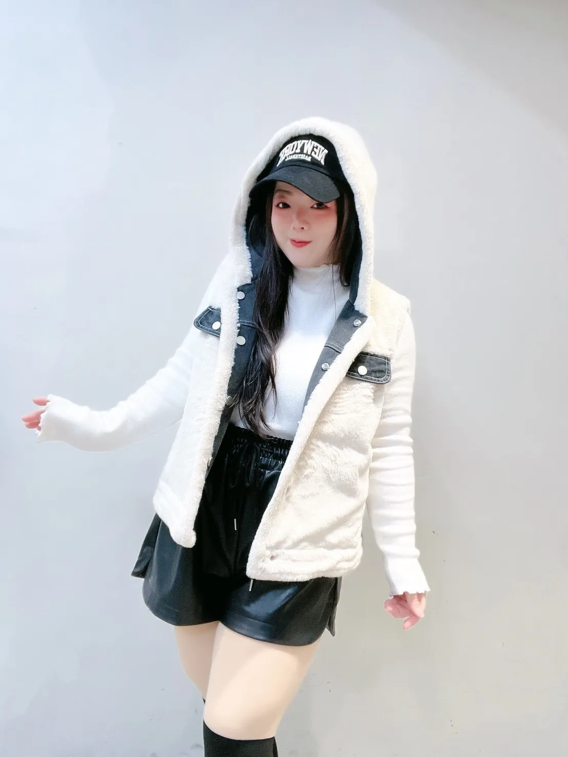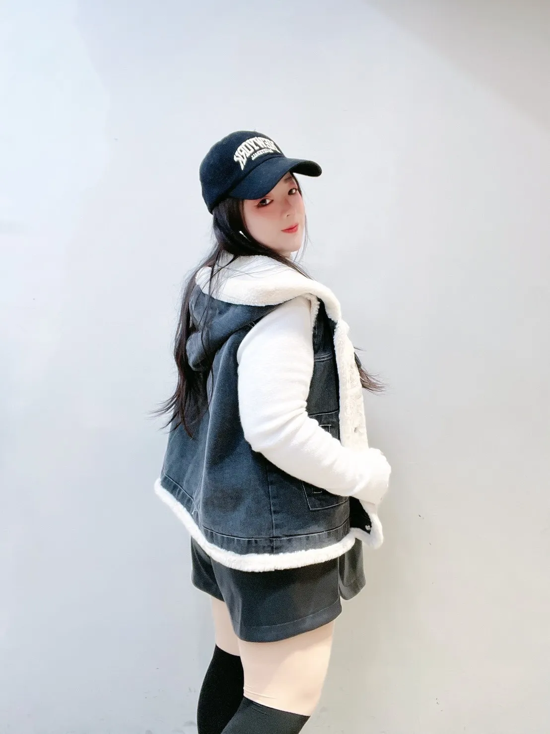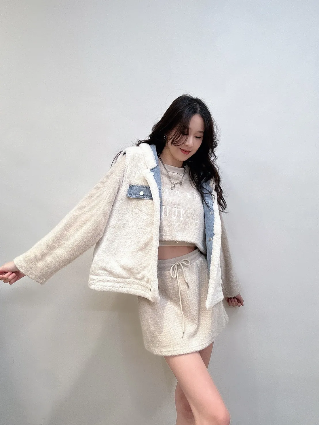 外層牛仔+內裡小熊絨,保暖度夠、層次感也直接拉滿。