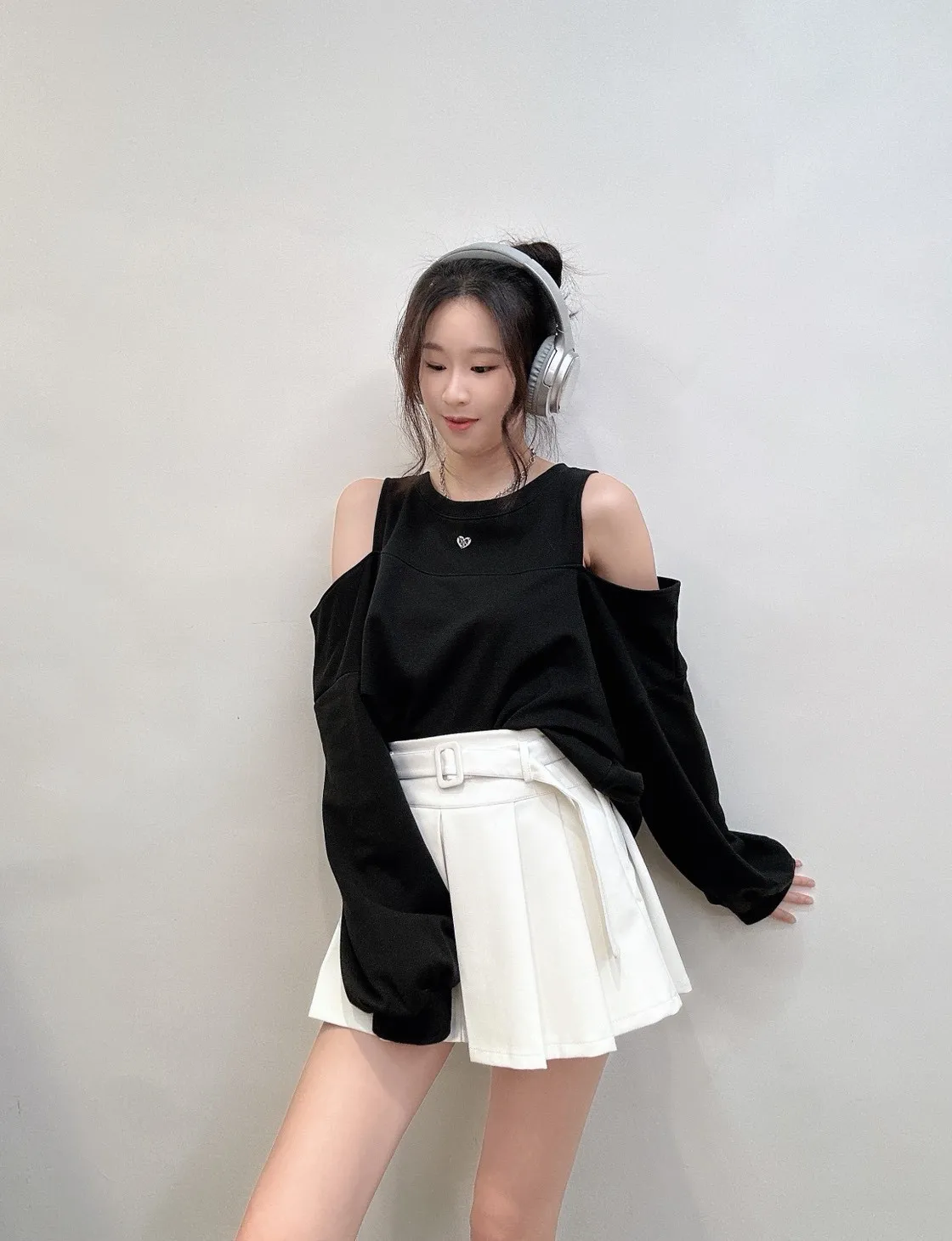 💗 愛心鐵牌挖肩寬版衛衣 Tee