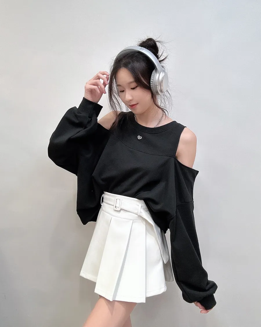挖肩設計,微露鎖骨與肩線,修飾身形比例