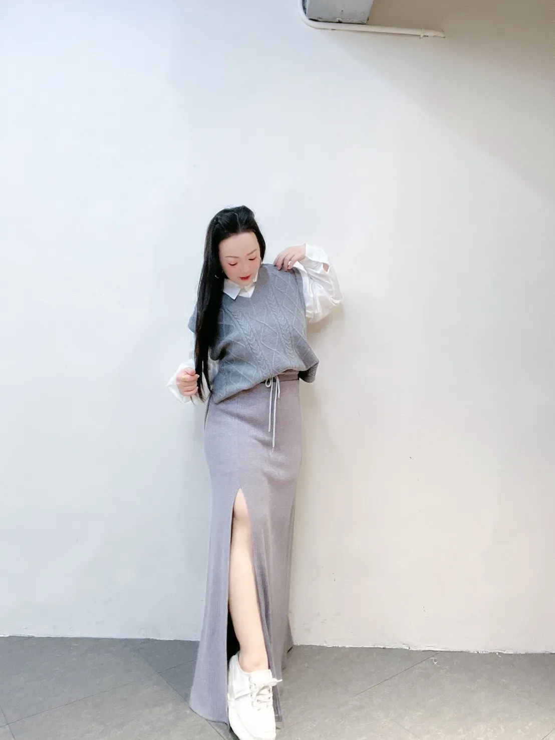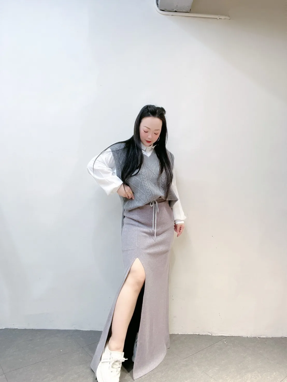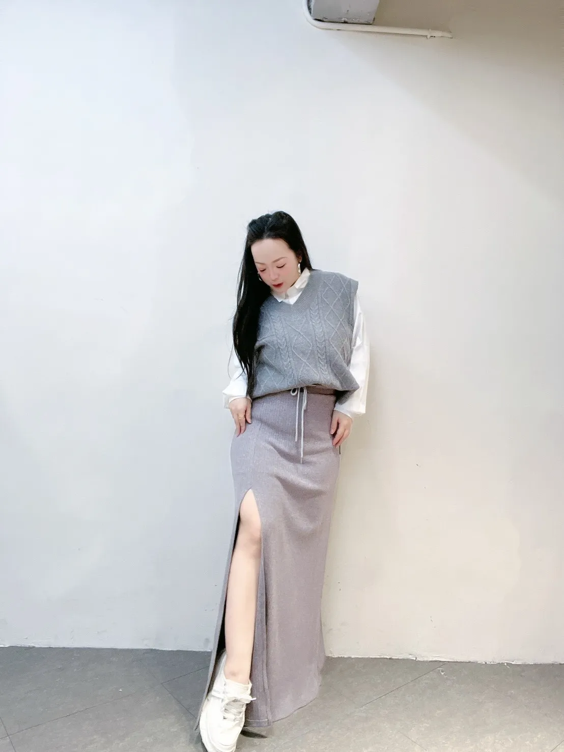 側開衩讓整體不厚重,走路時線條更輕盈。