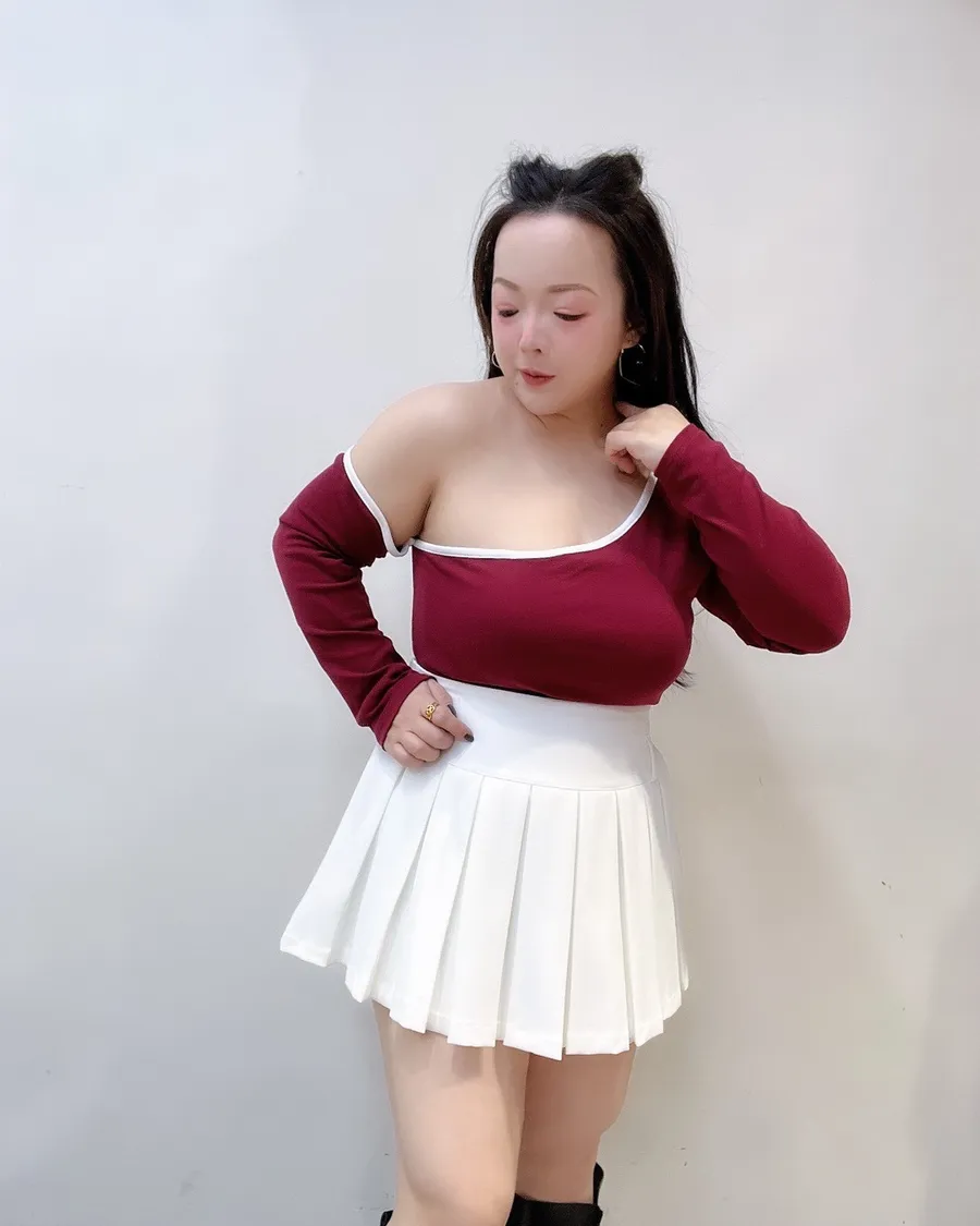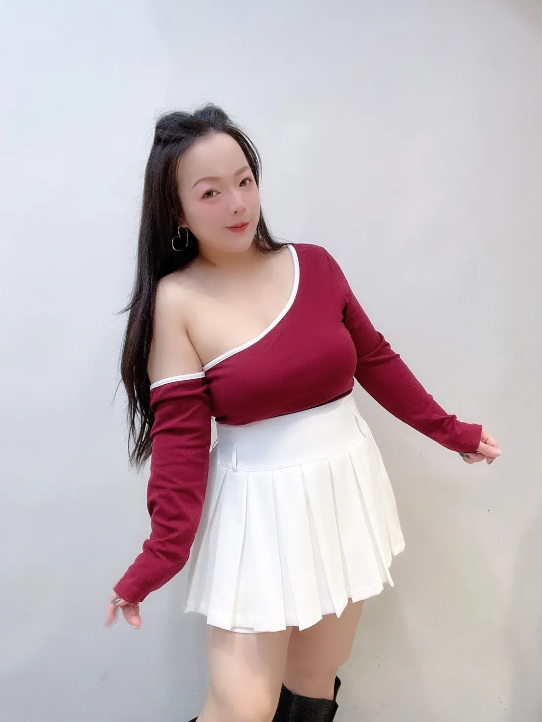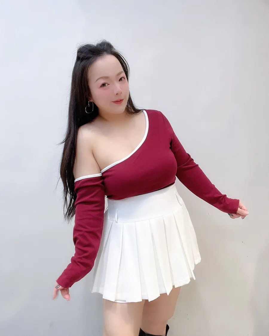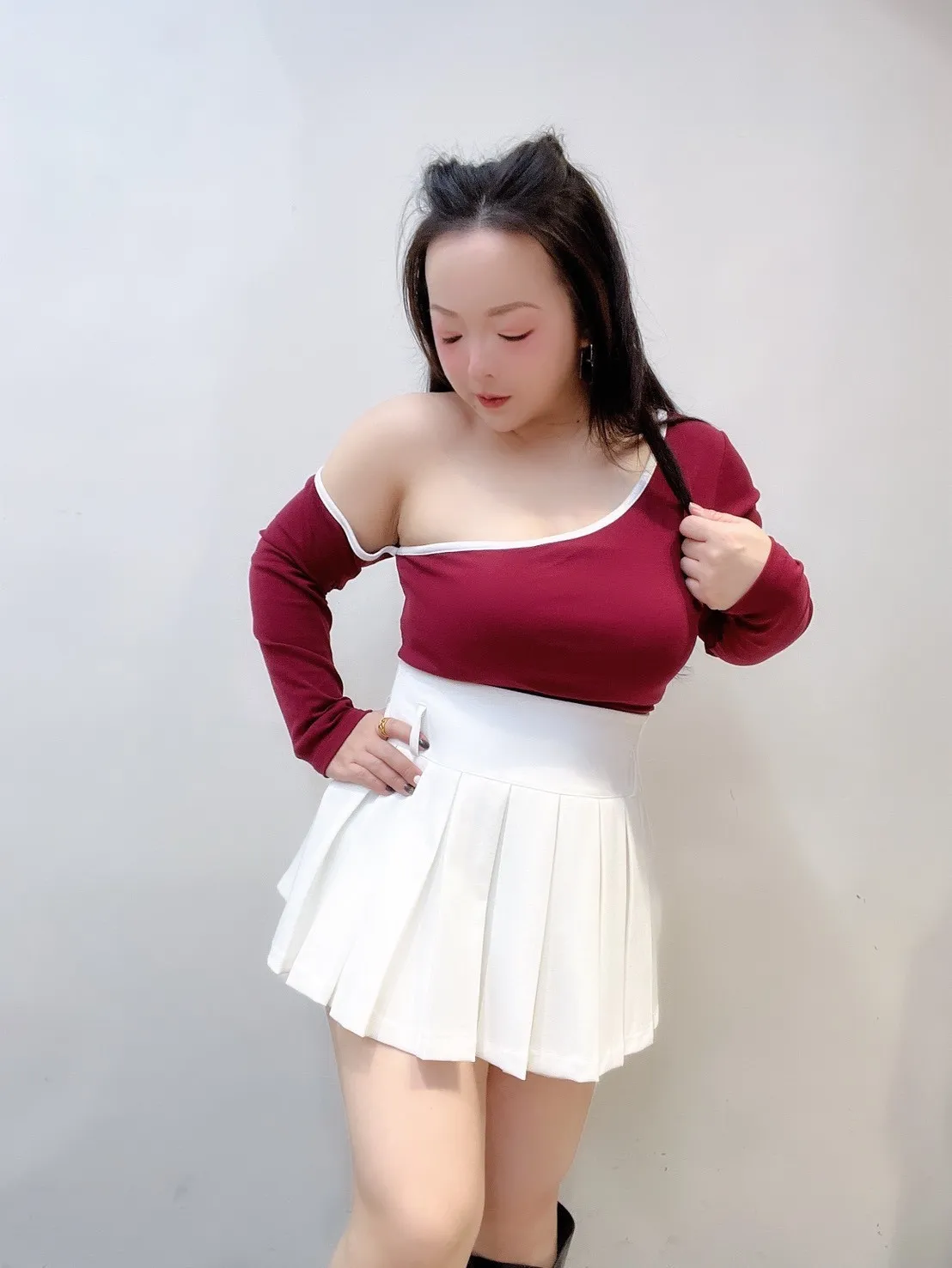自然露出鎖骨與肩線,甜辣感剛剛好,不會過頭。