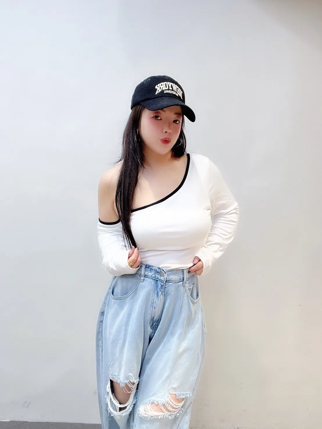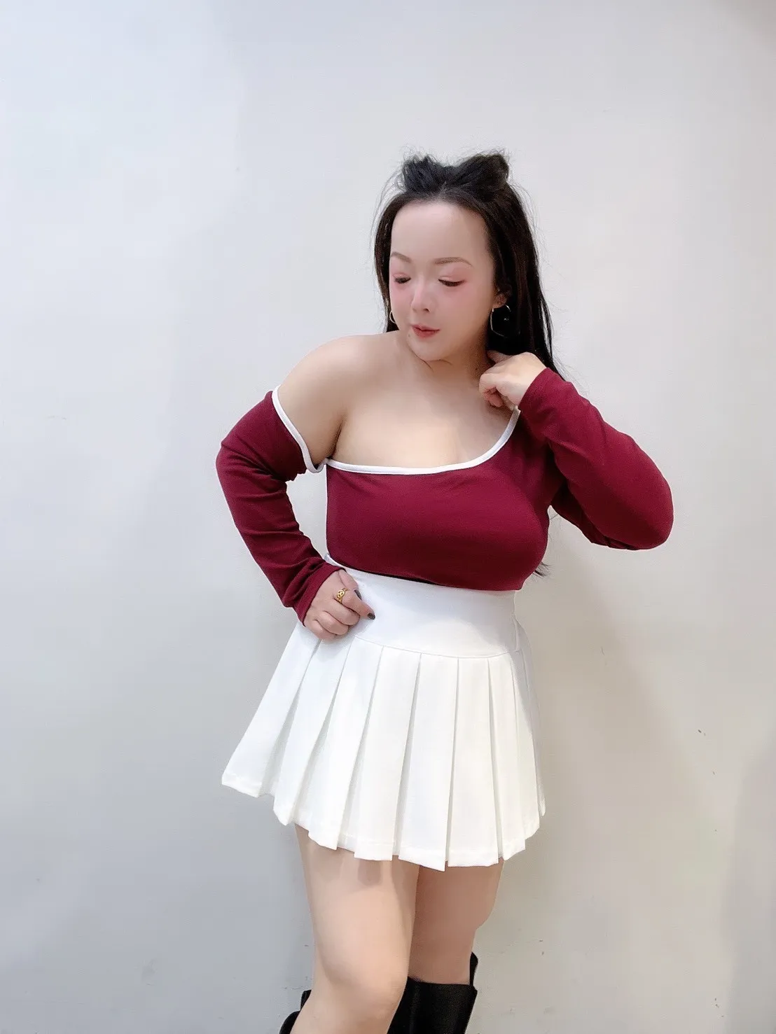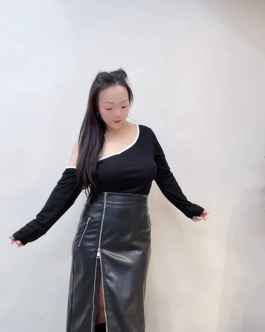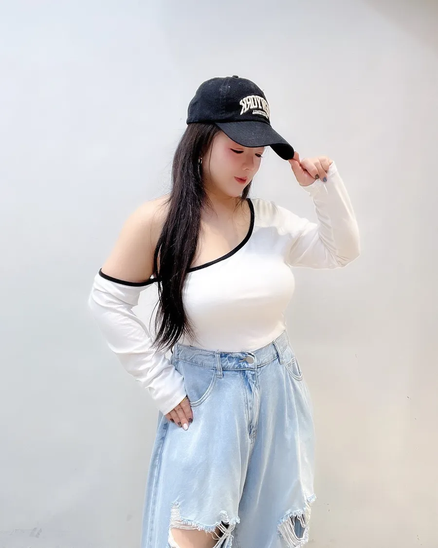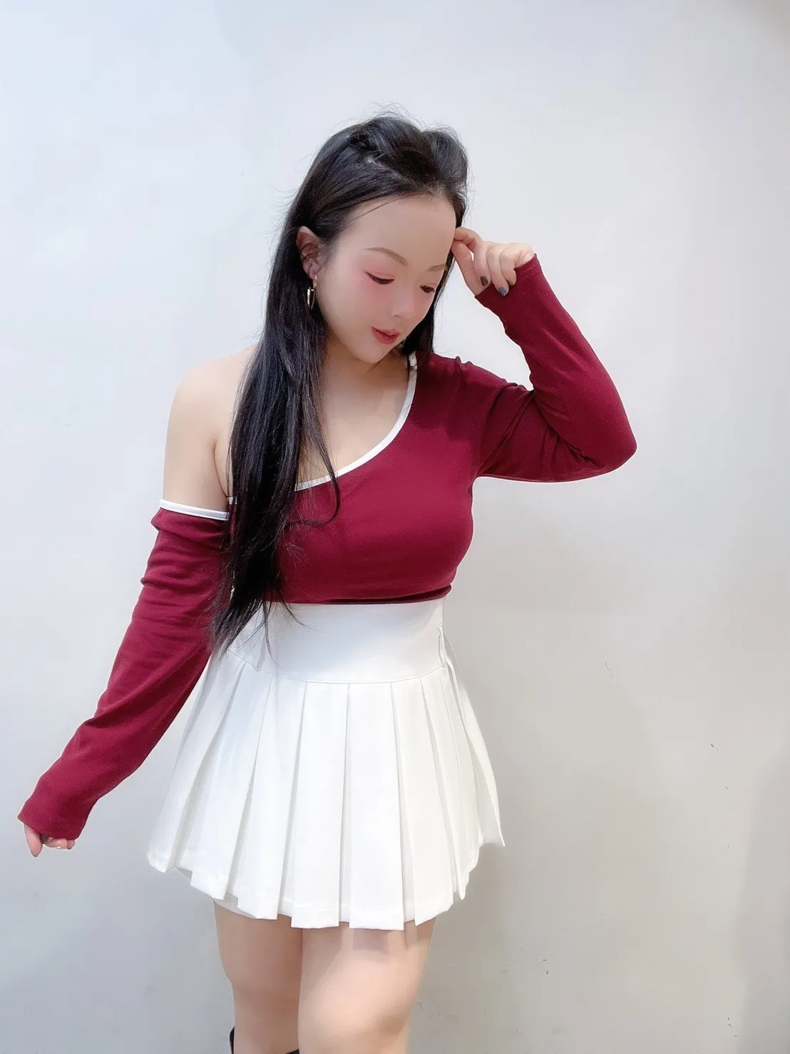 自然露出鎖骨與肩線,甜辣感剛剛好,不會過頭。