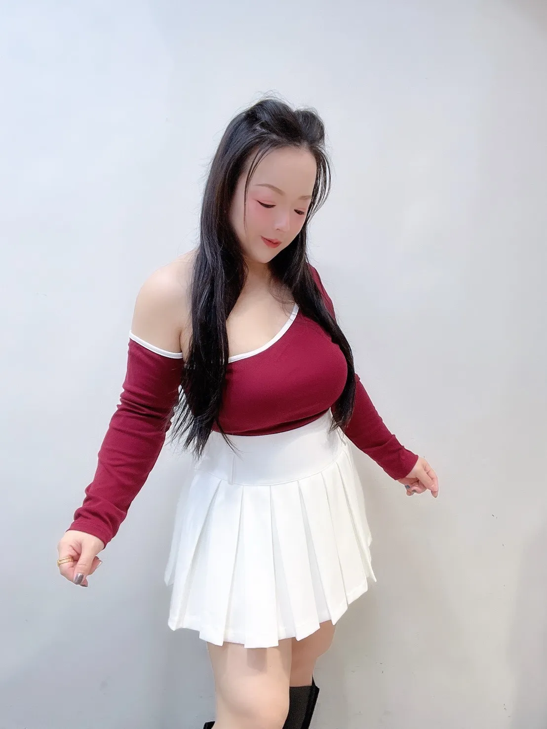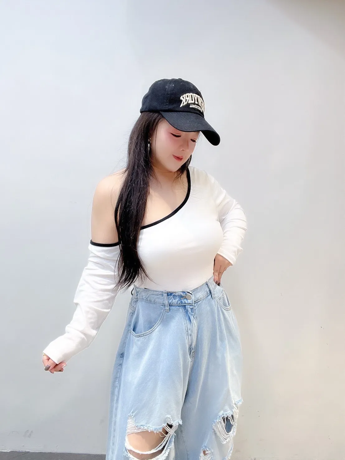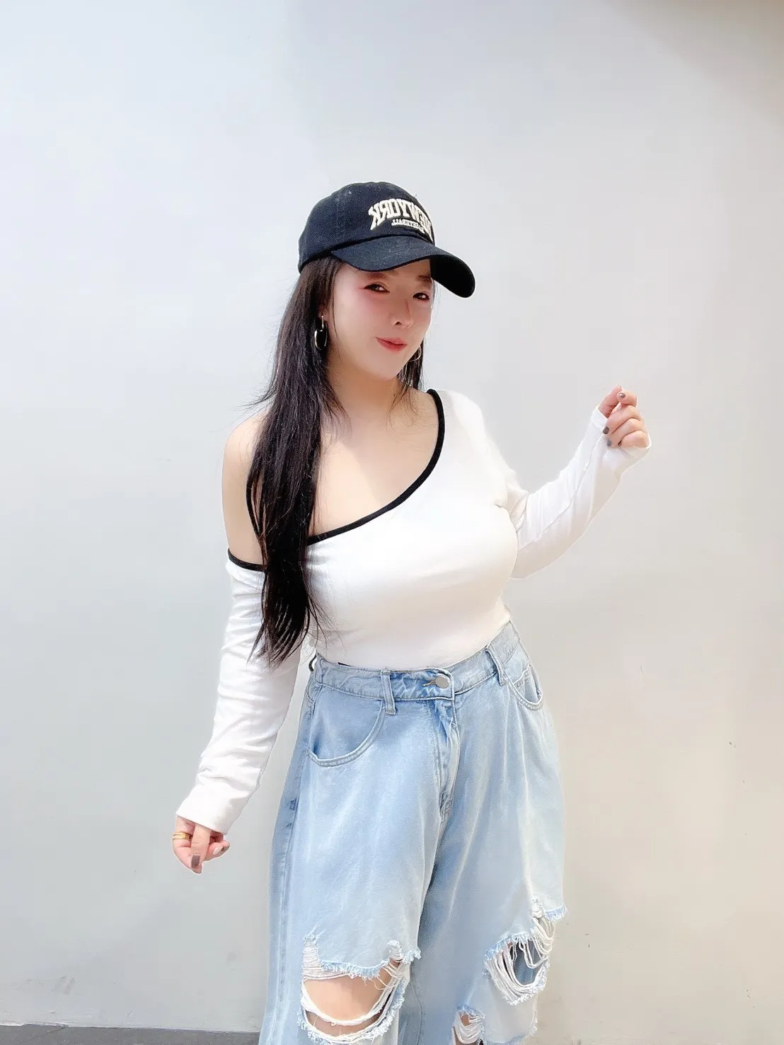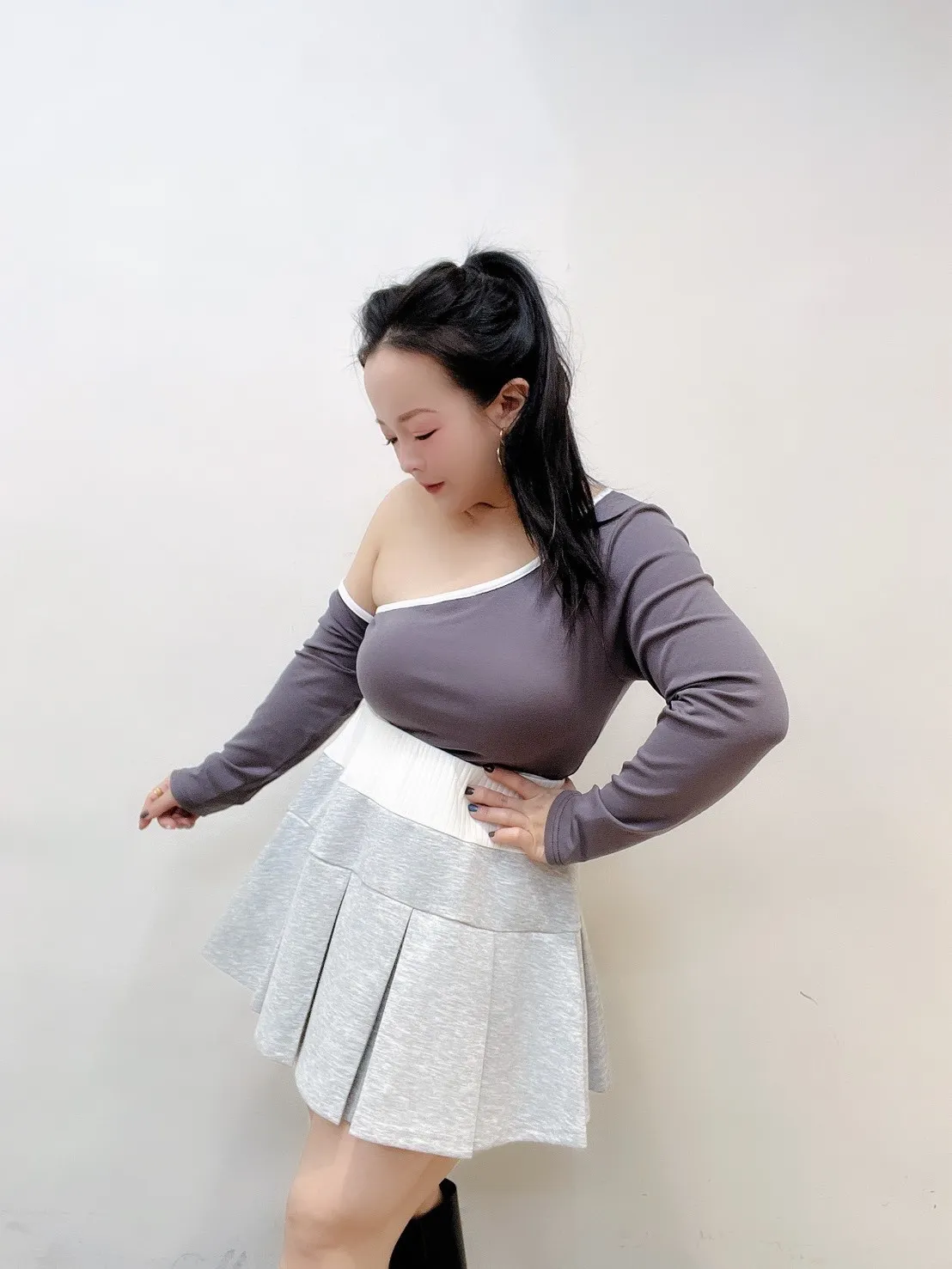 自然露出鎖骨與肩線,甜辣感剛剛好,不會過頭。