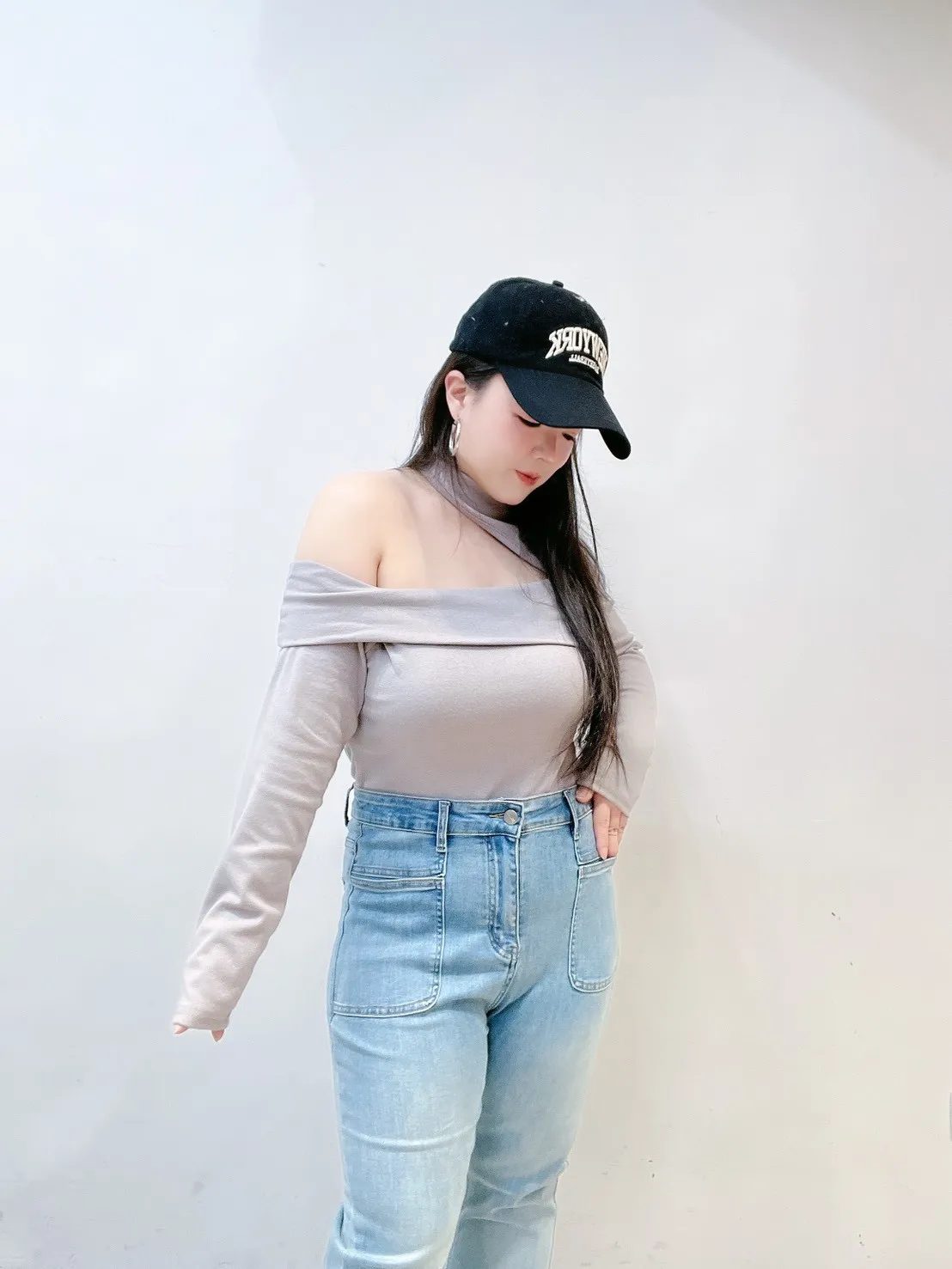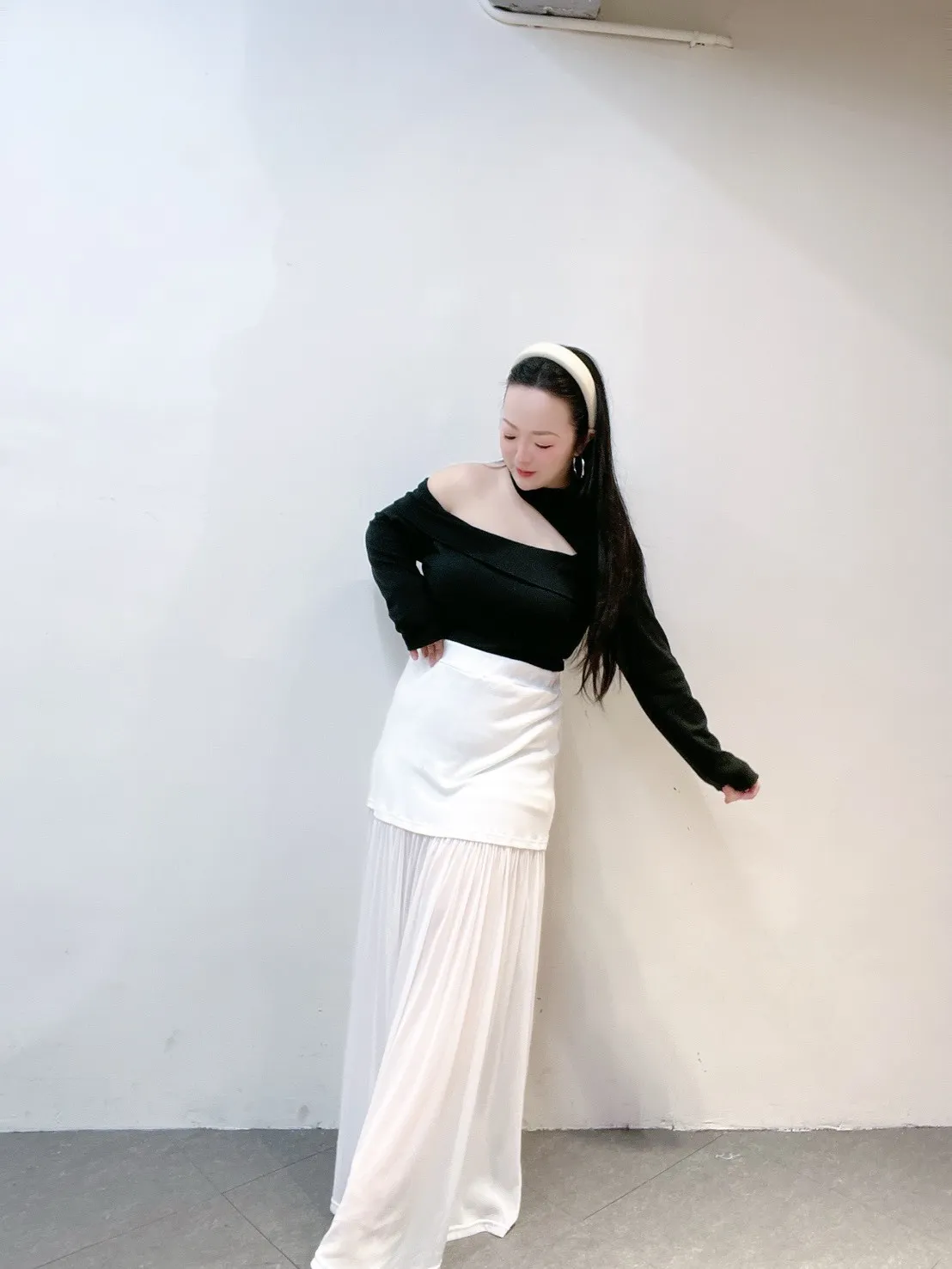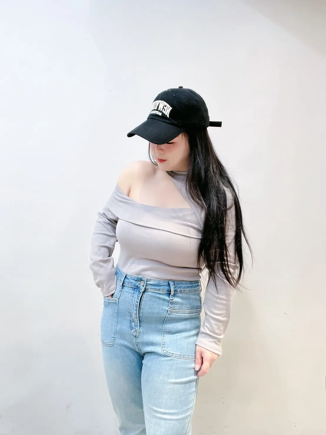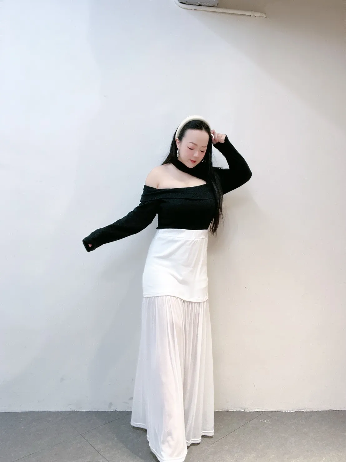 不對稱單邊挖洞設計,自然露出鎖骨與肩線,