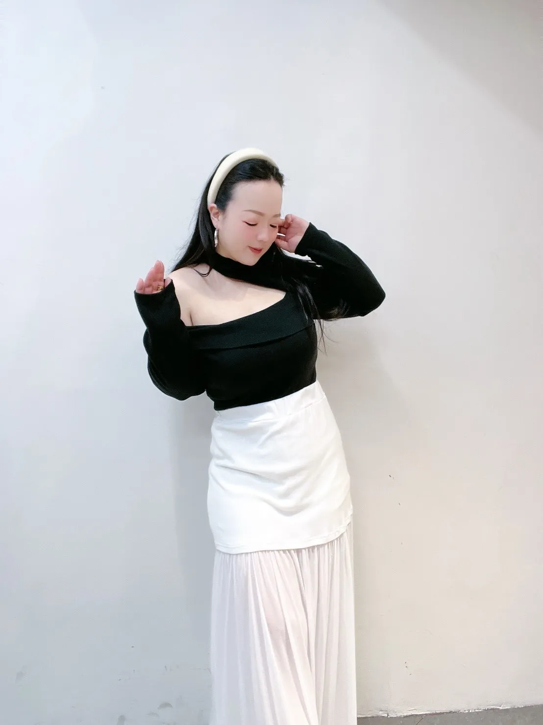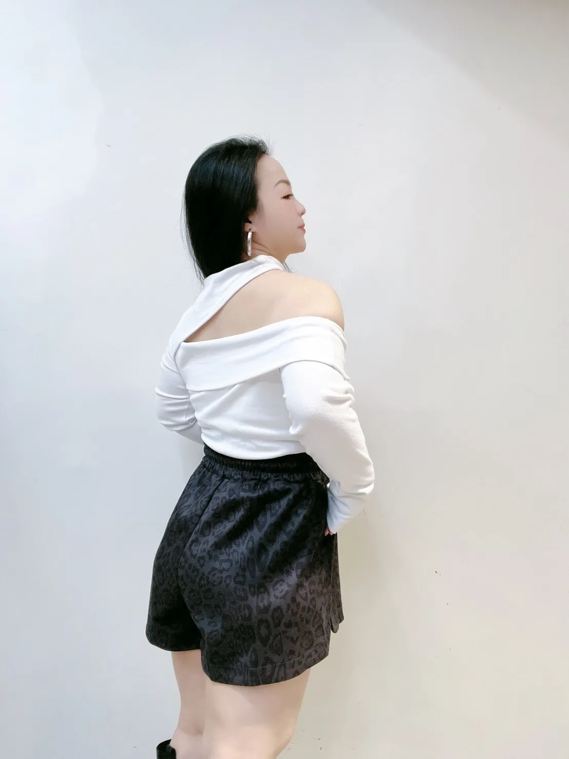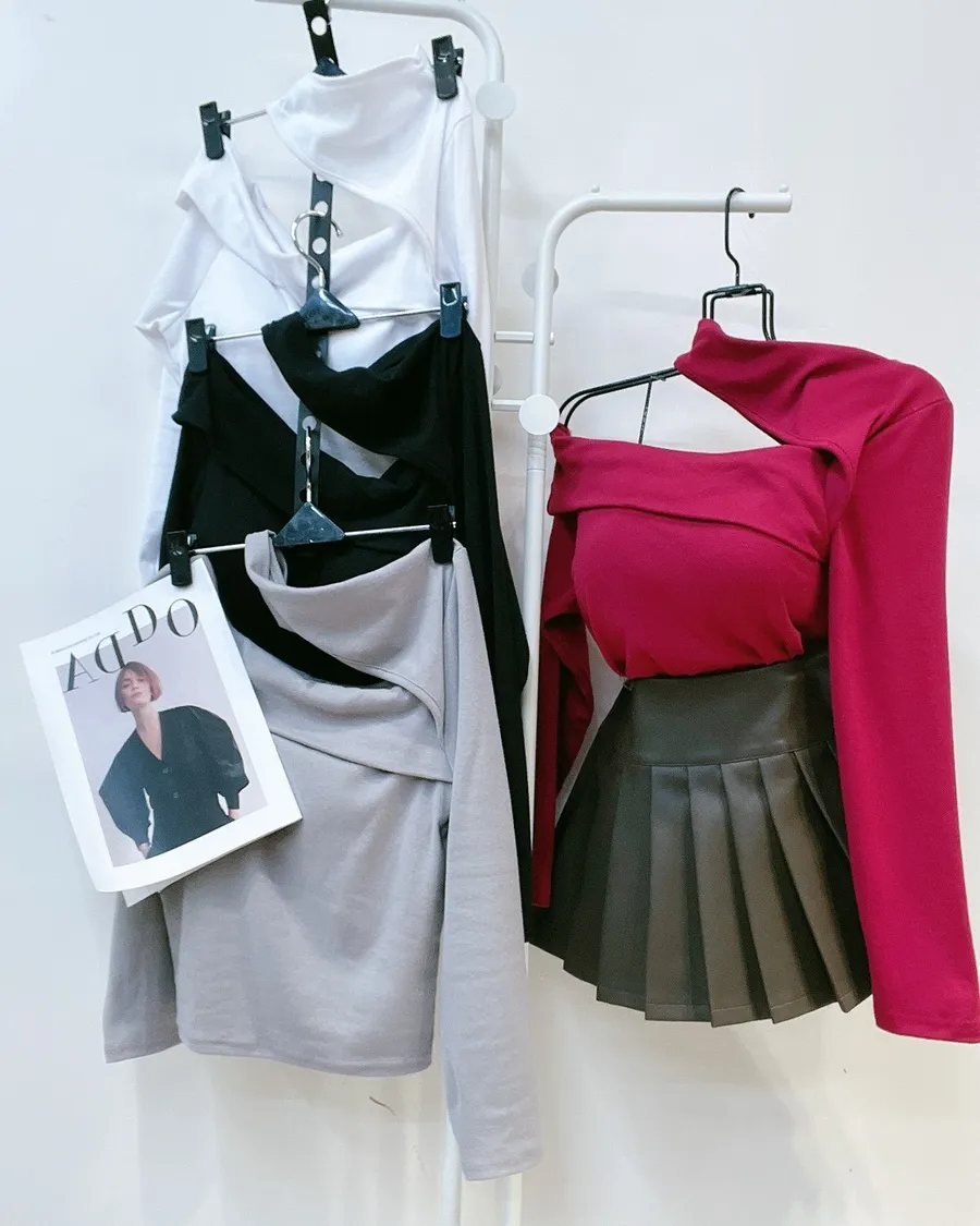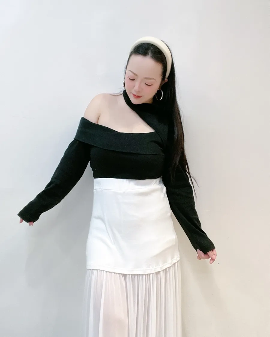 ✔ 不對稱單邊挖洞,修飾鎖骨與肩線