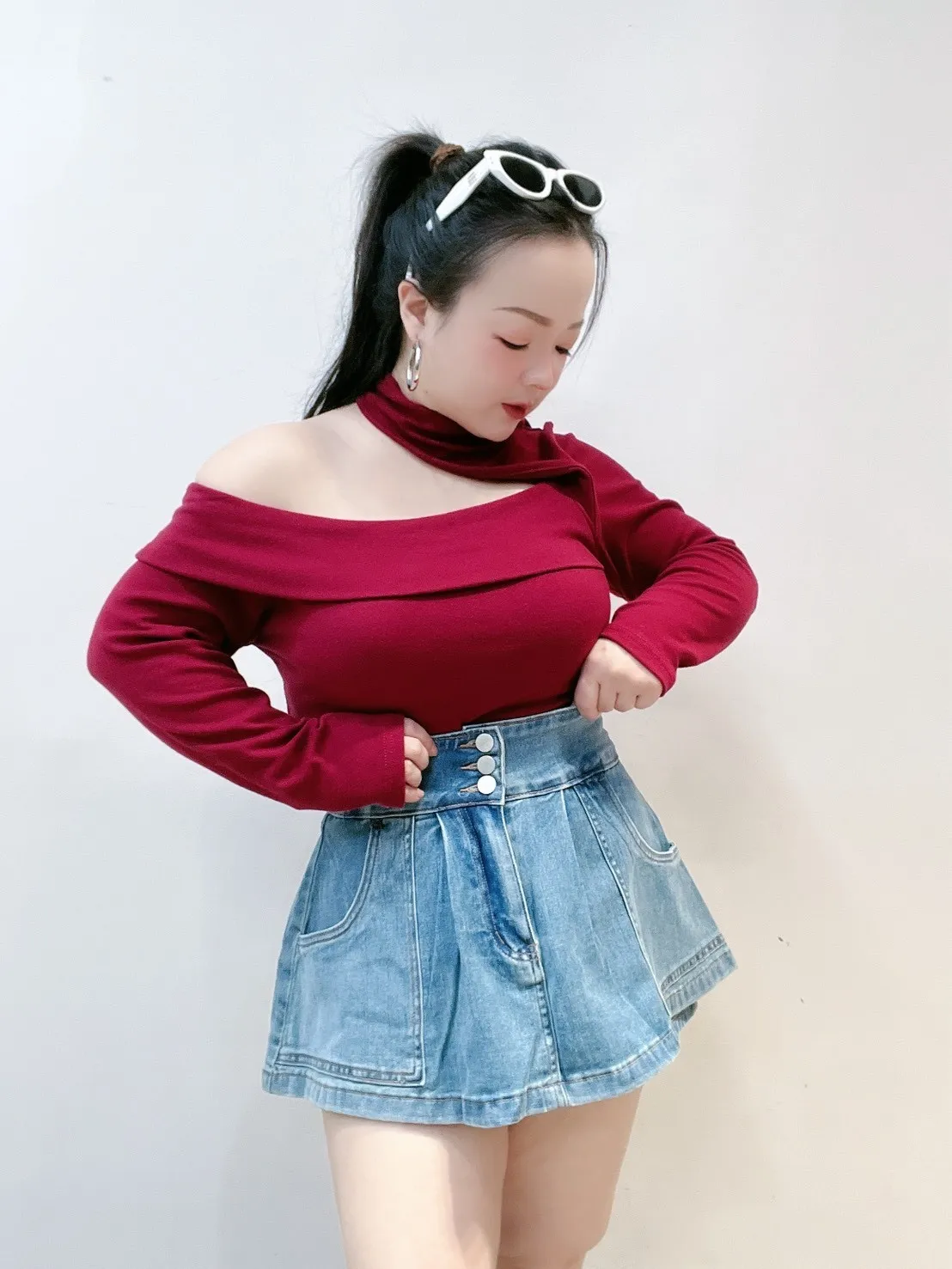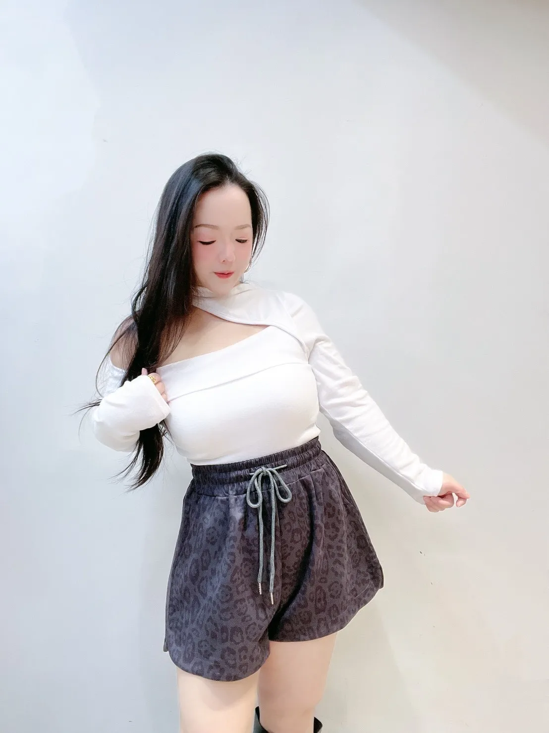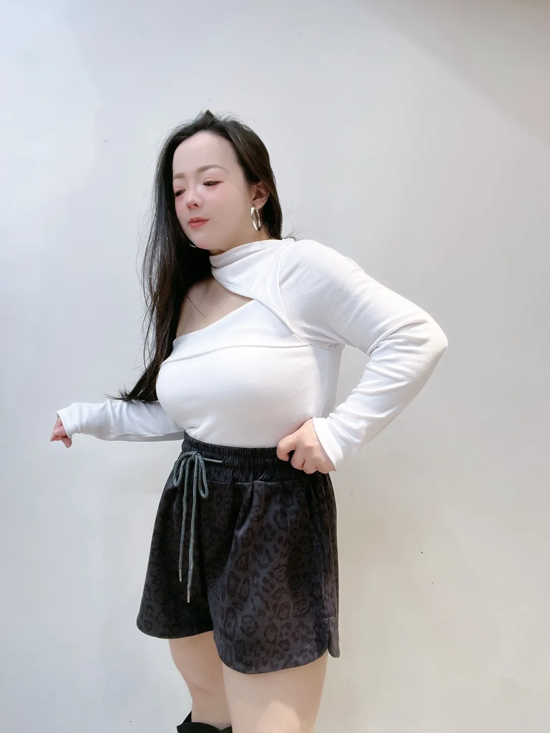 ✔ 不對稱單邊挖洞,修飾鎖骨與肩線