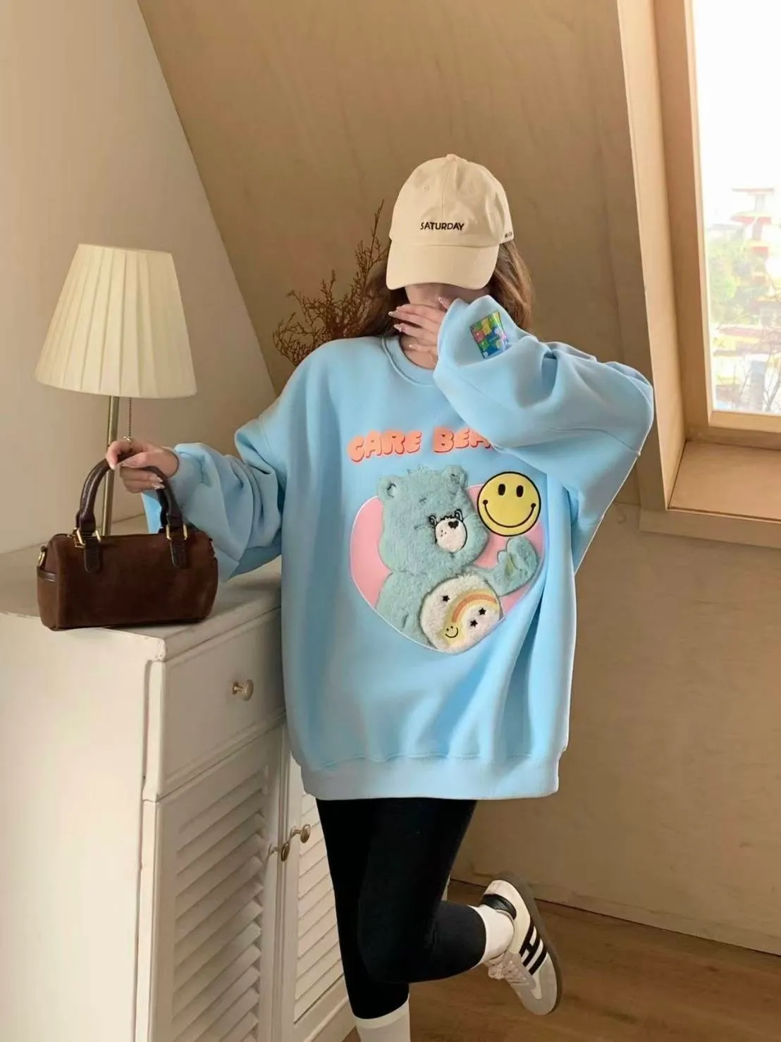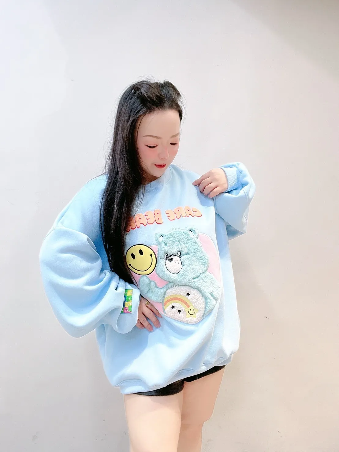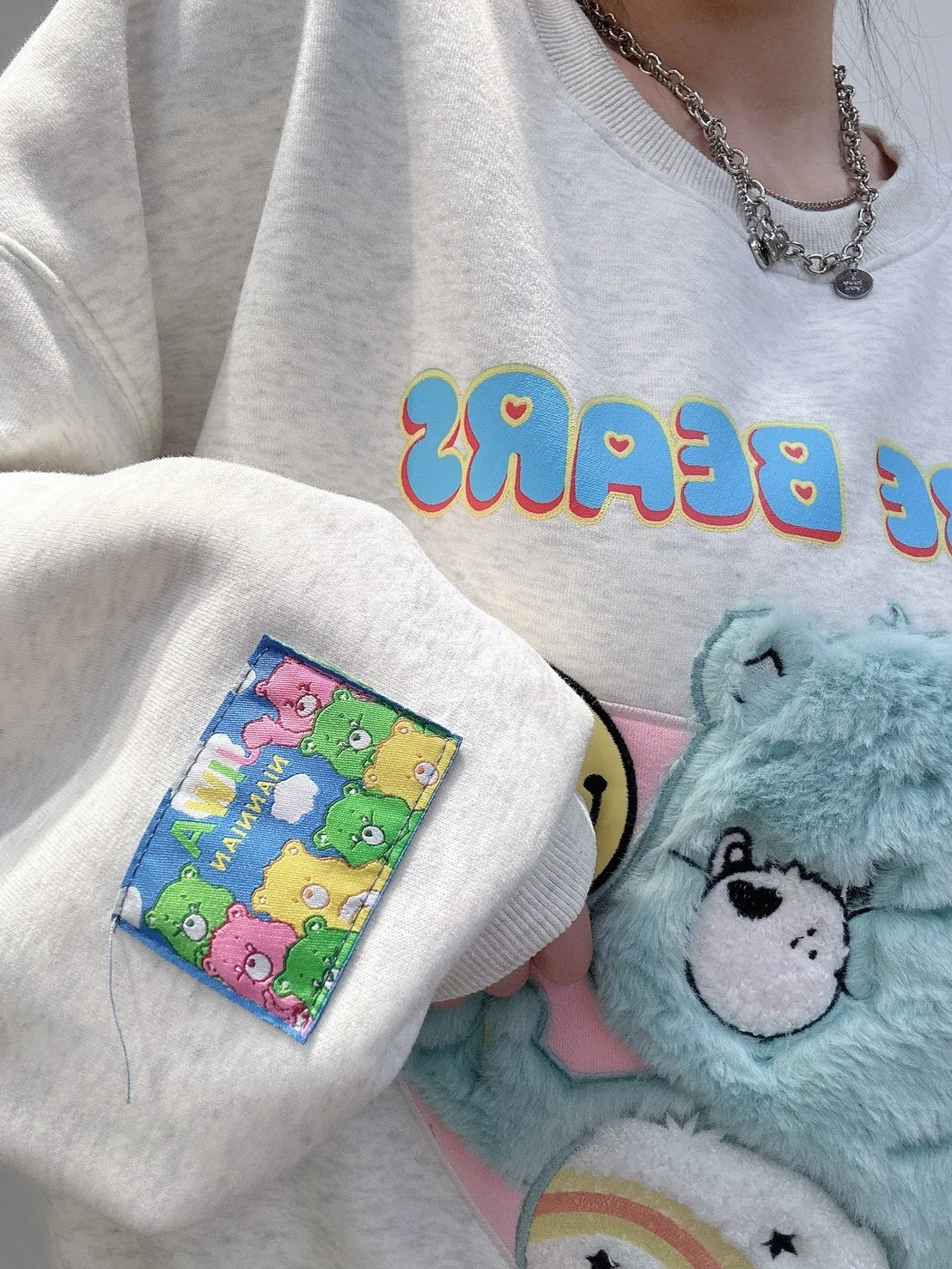 ✔ 愛心毛毛熊圖樣,立體刷毛不扁塌