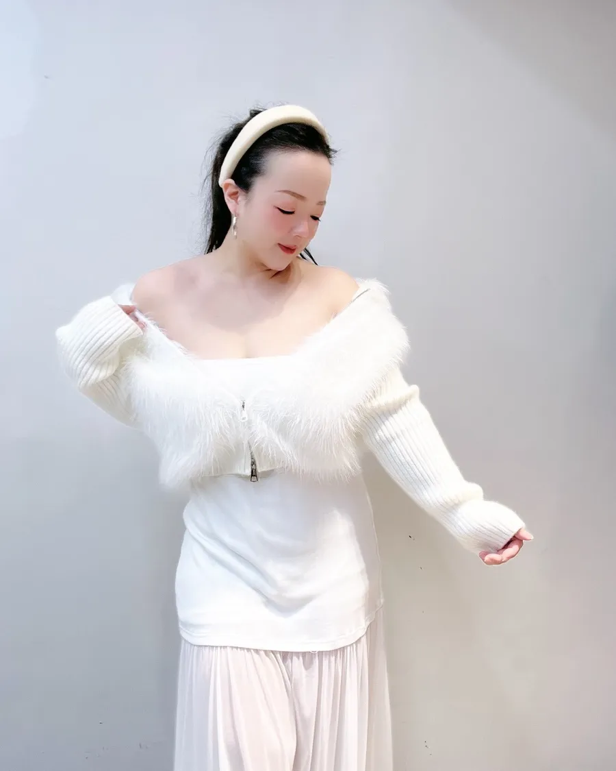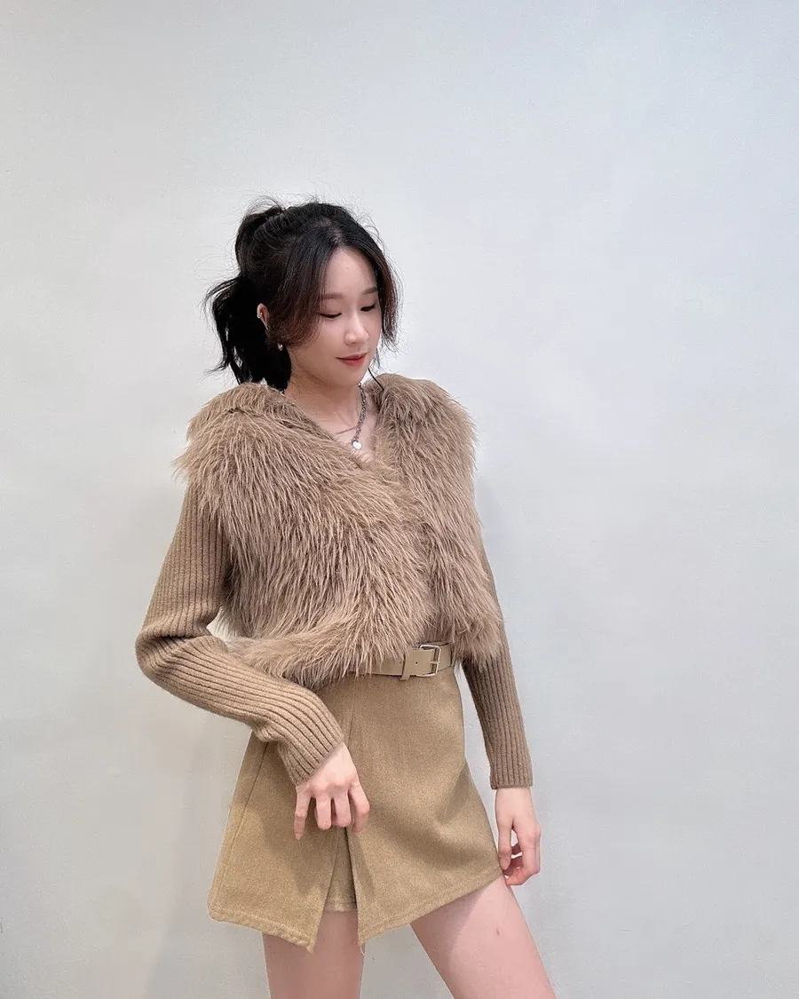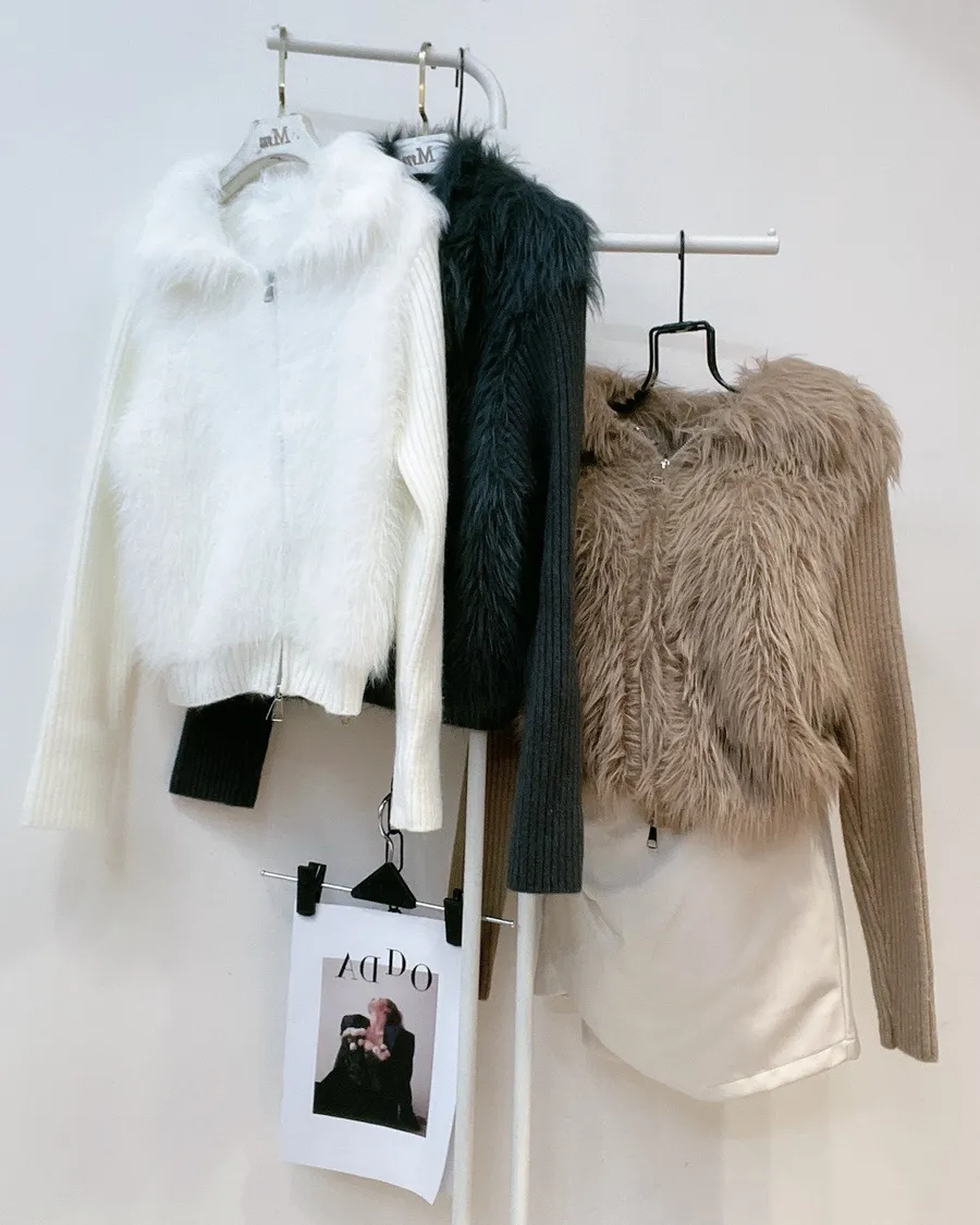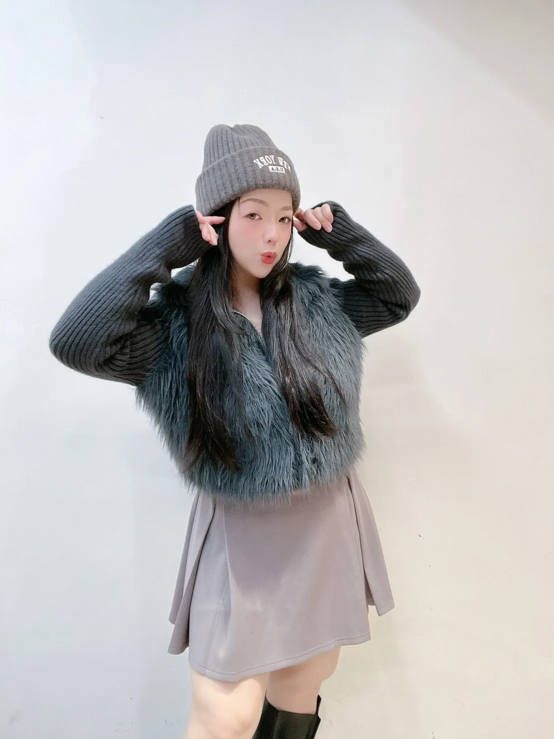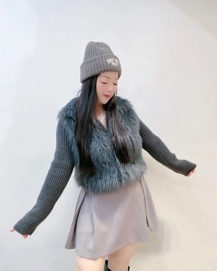 上半身拼接柔軟毛毛質感,下身與袖子為親膚針織,