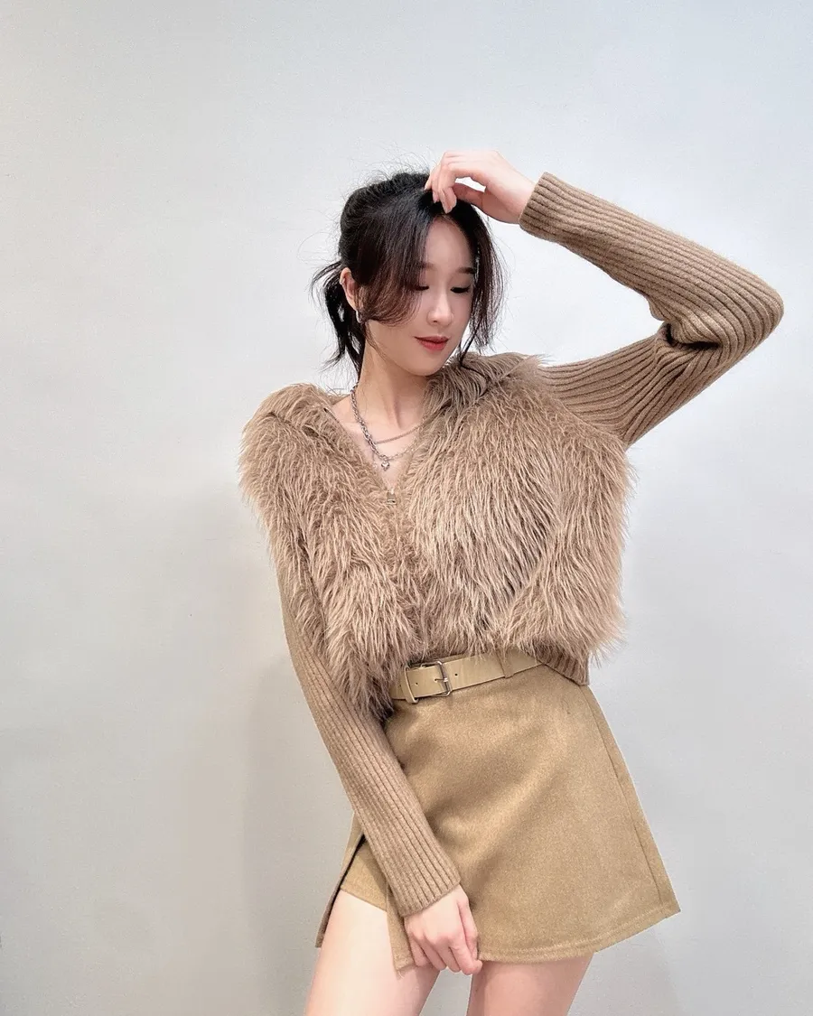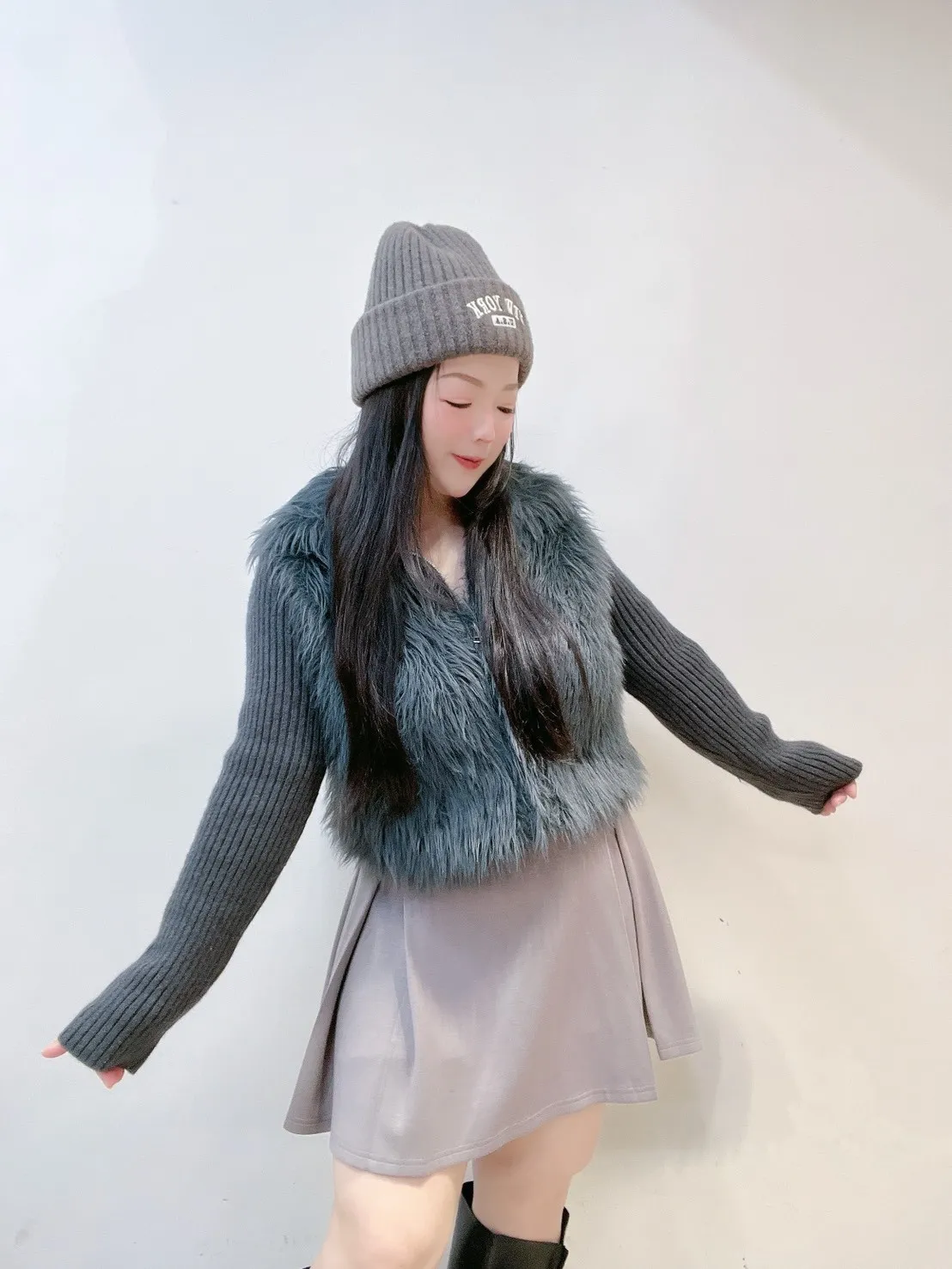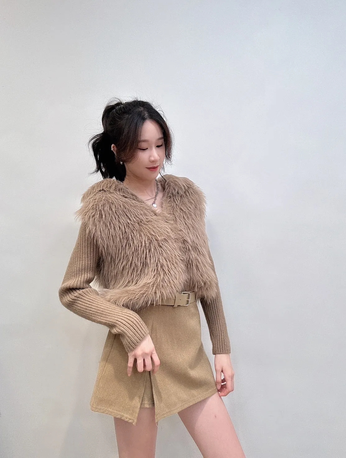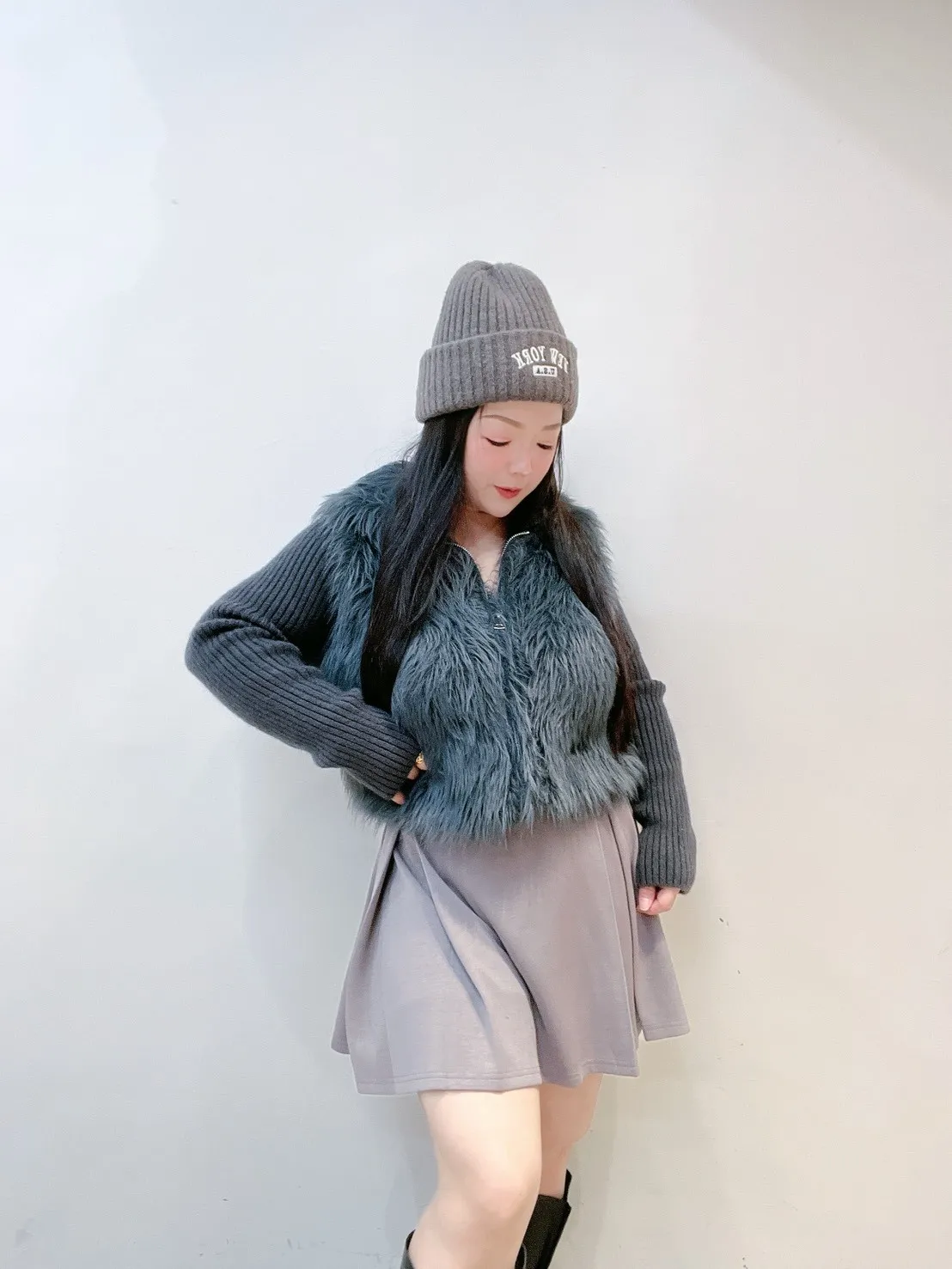 上半身拼接柔軟毛毛質感,下身與袖子為親膚針織,