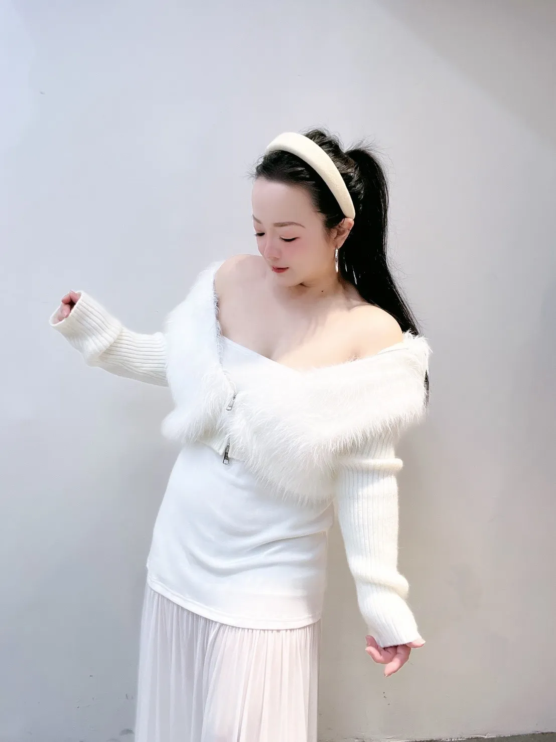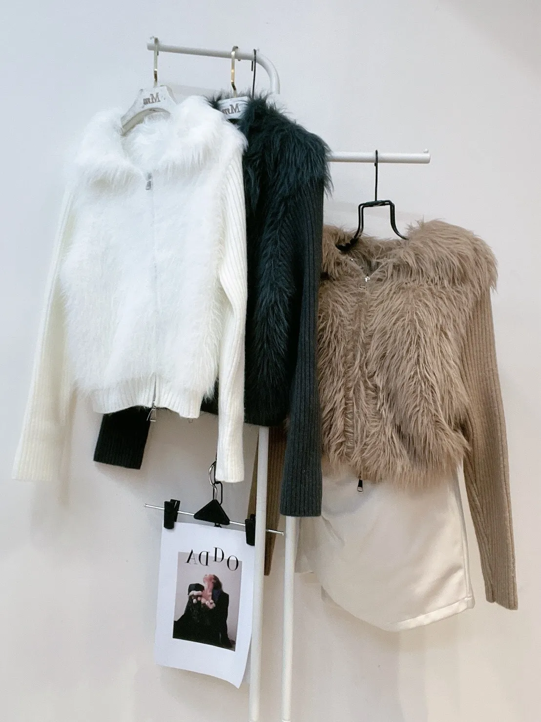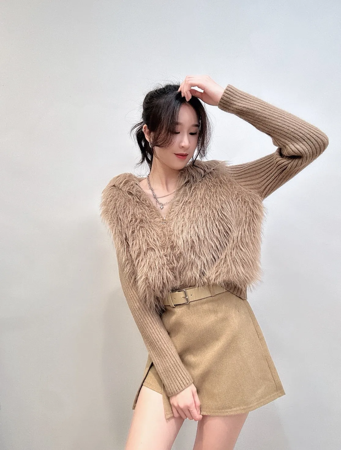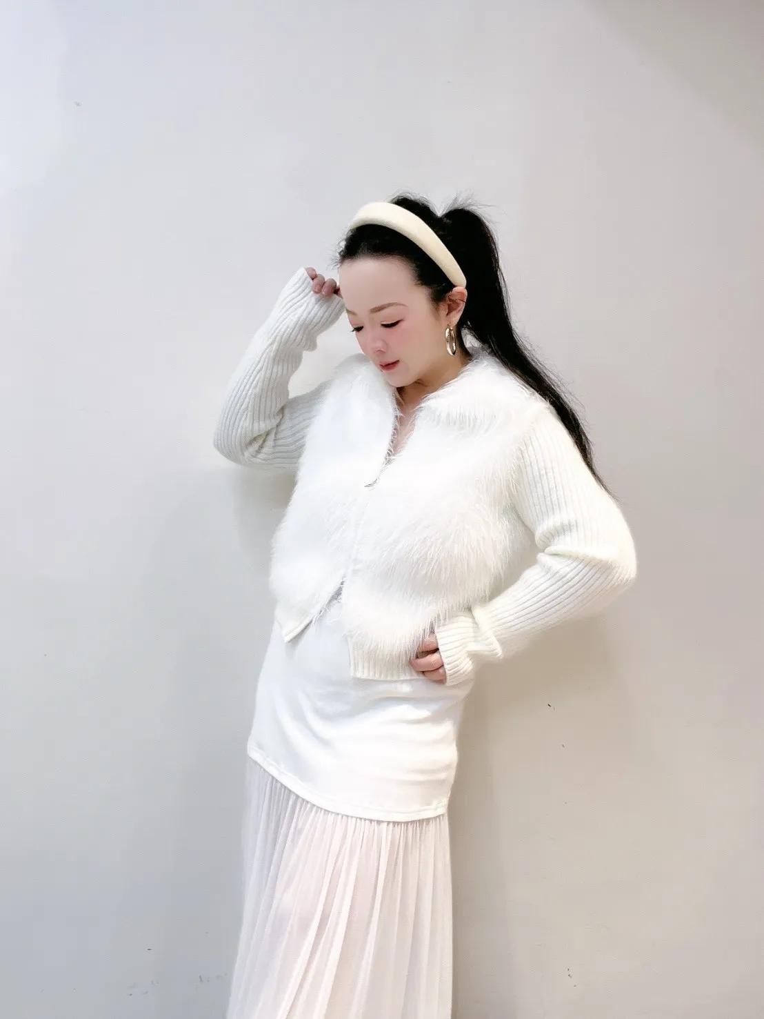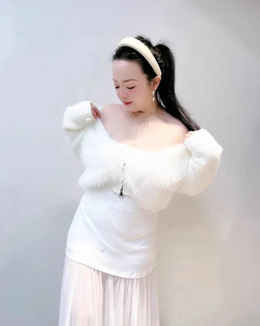 上半身拼接柔軟毛毛質感,下身與袖子為親膚針織,