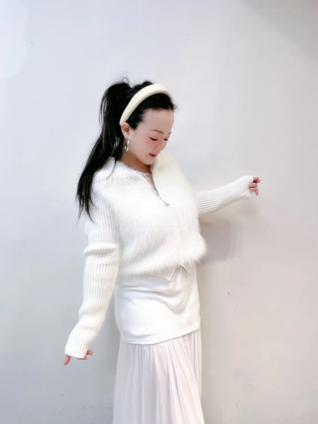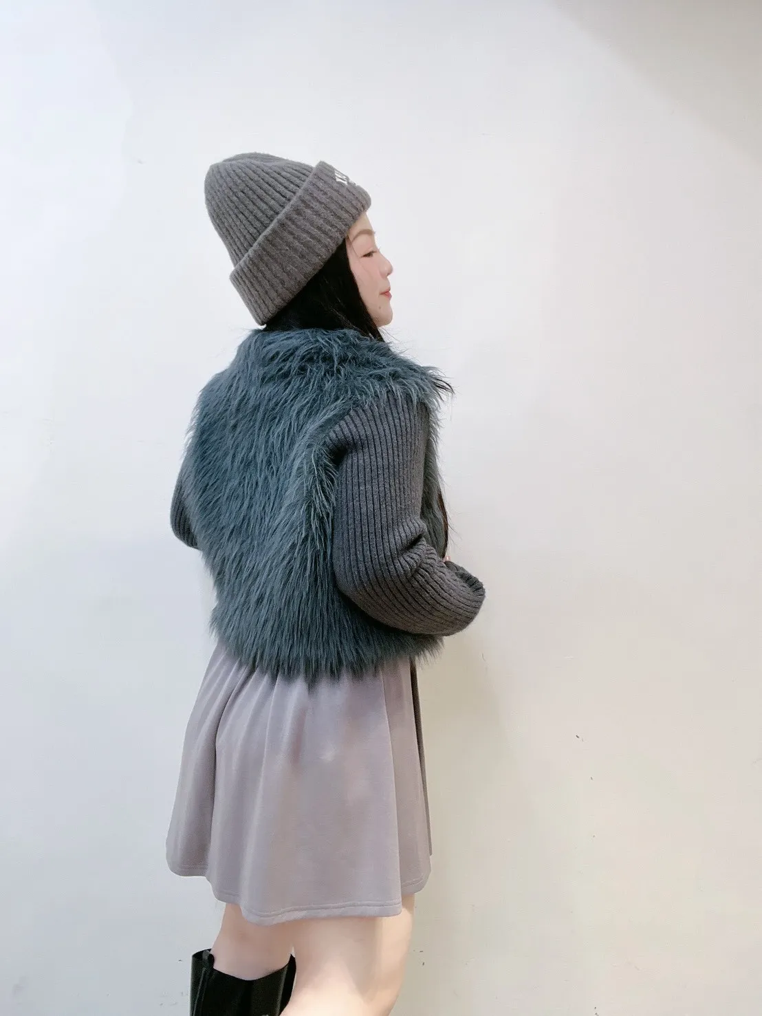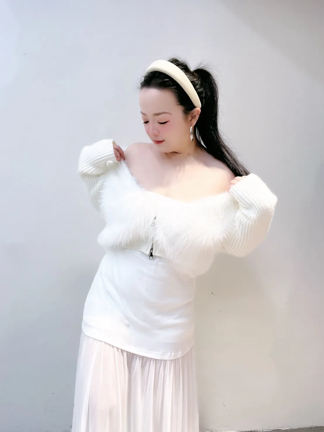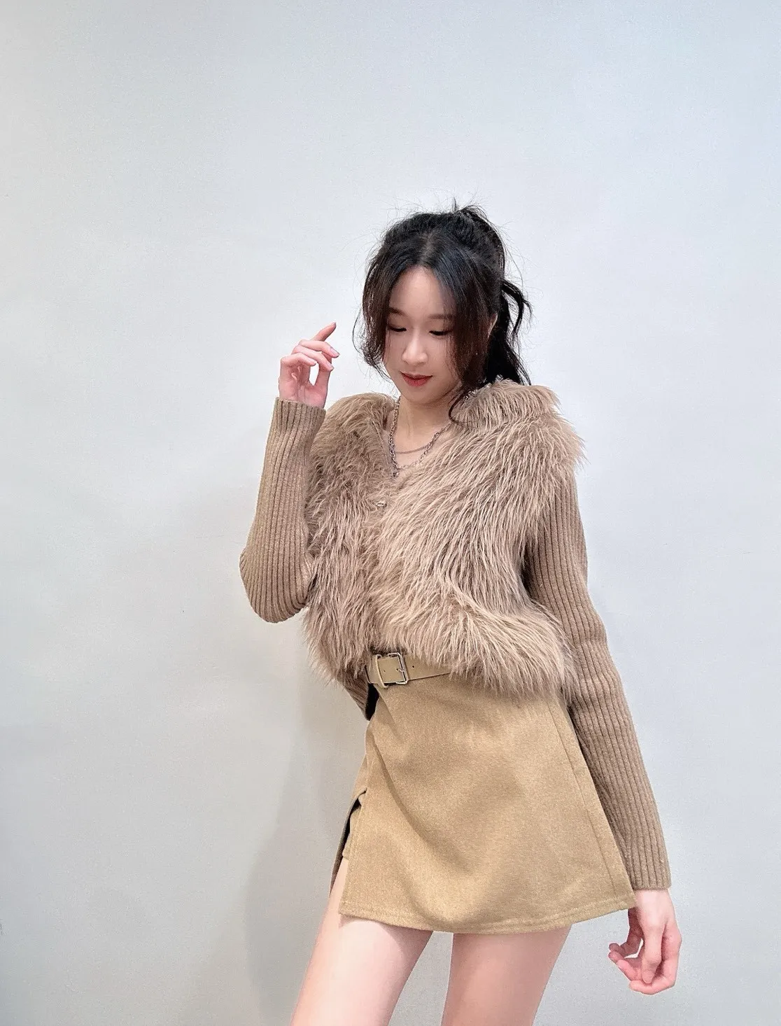 上半身拼接柔軟毛毛質感,下身與袖子為親膚針織,