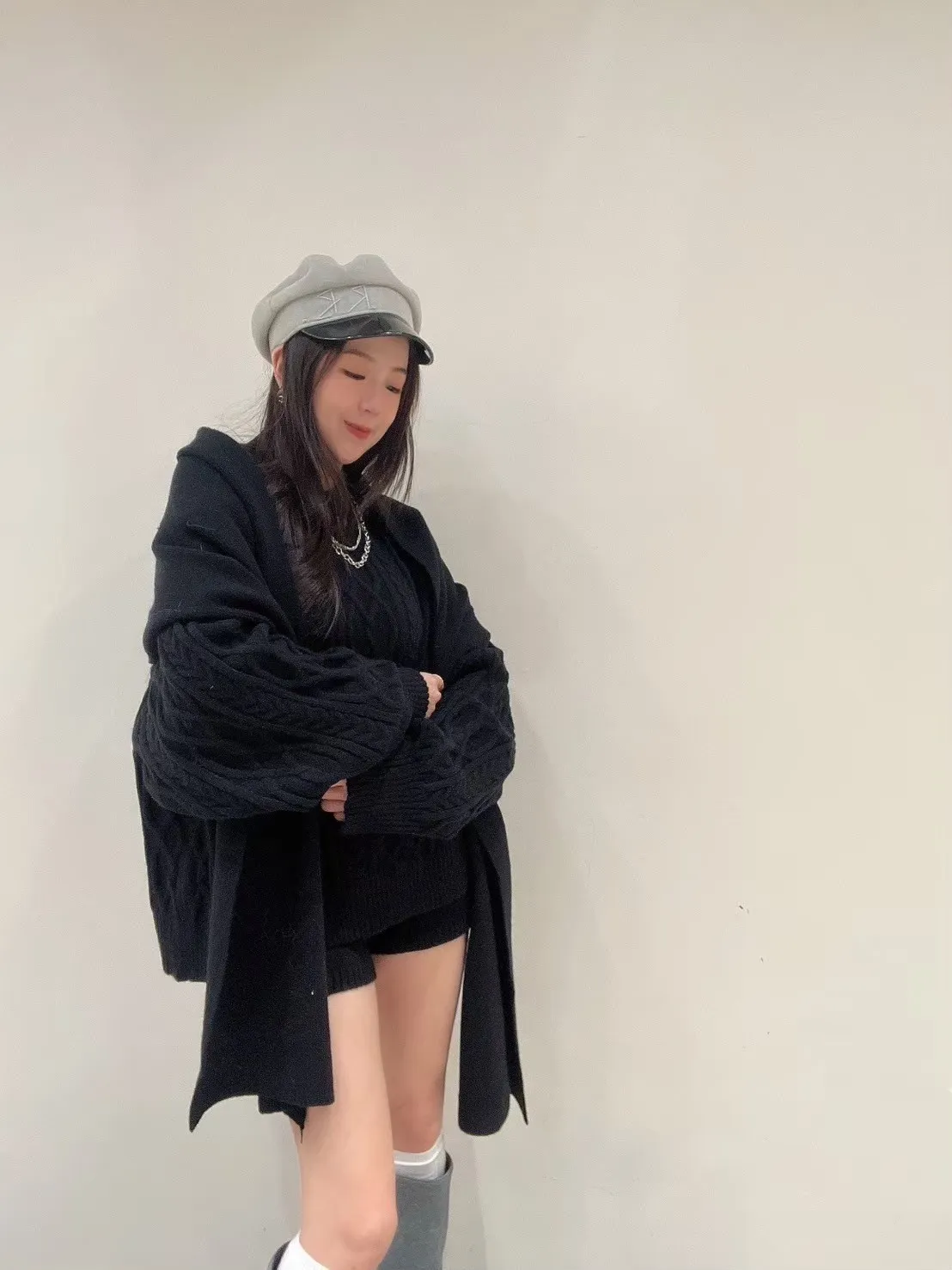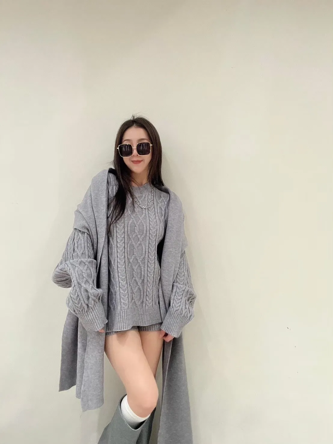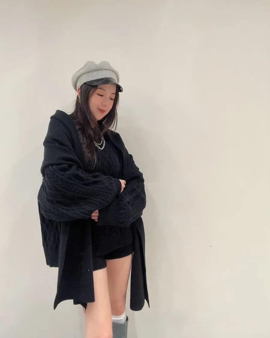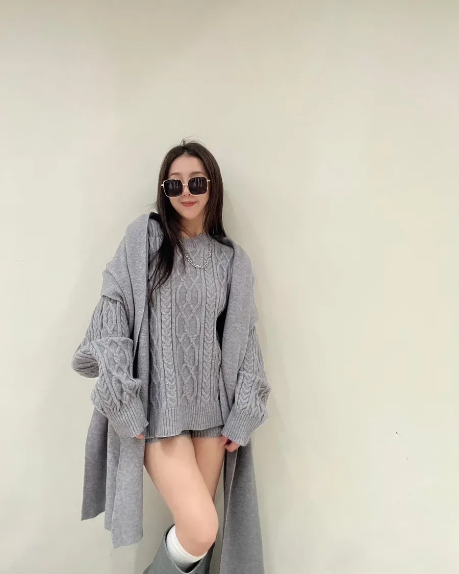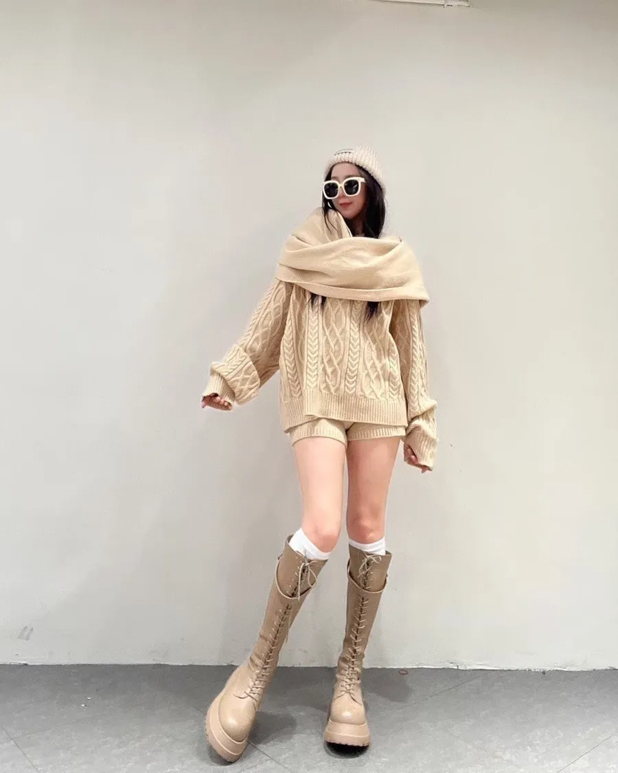 這套是 一穿就有造型感的麻花針織套裝。