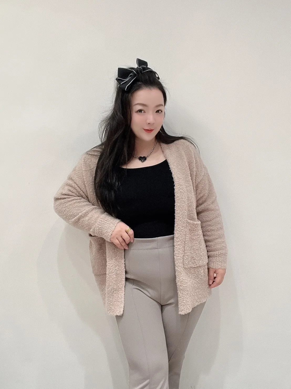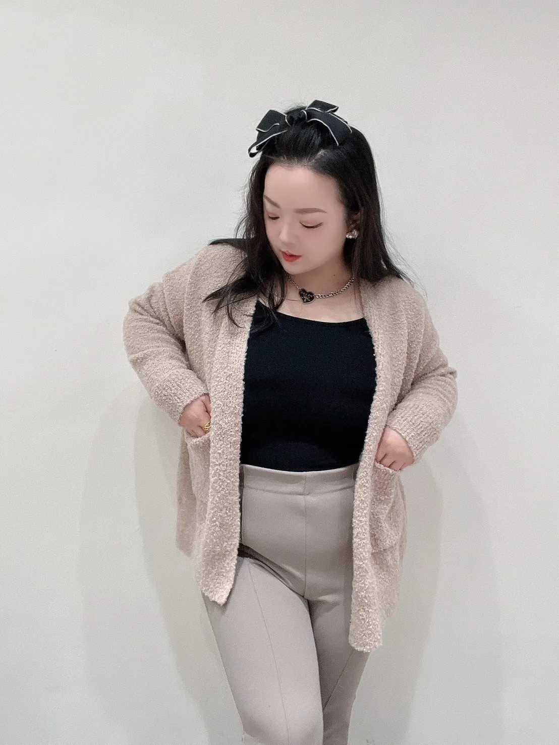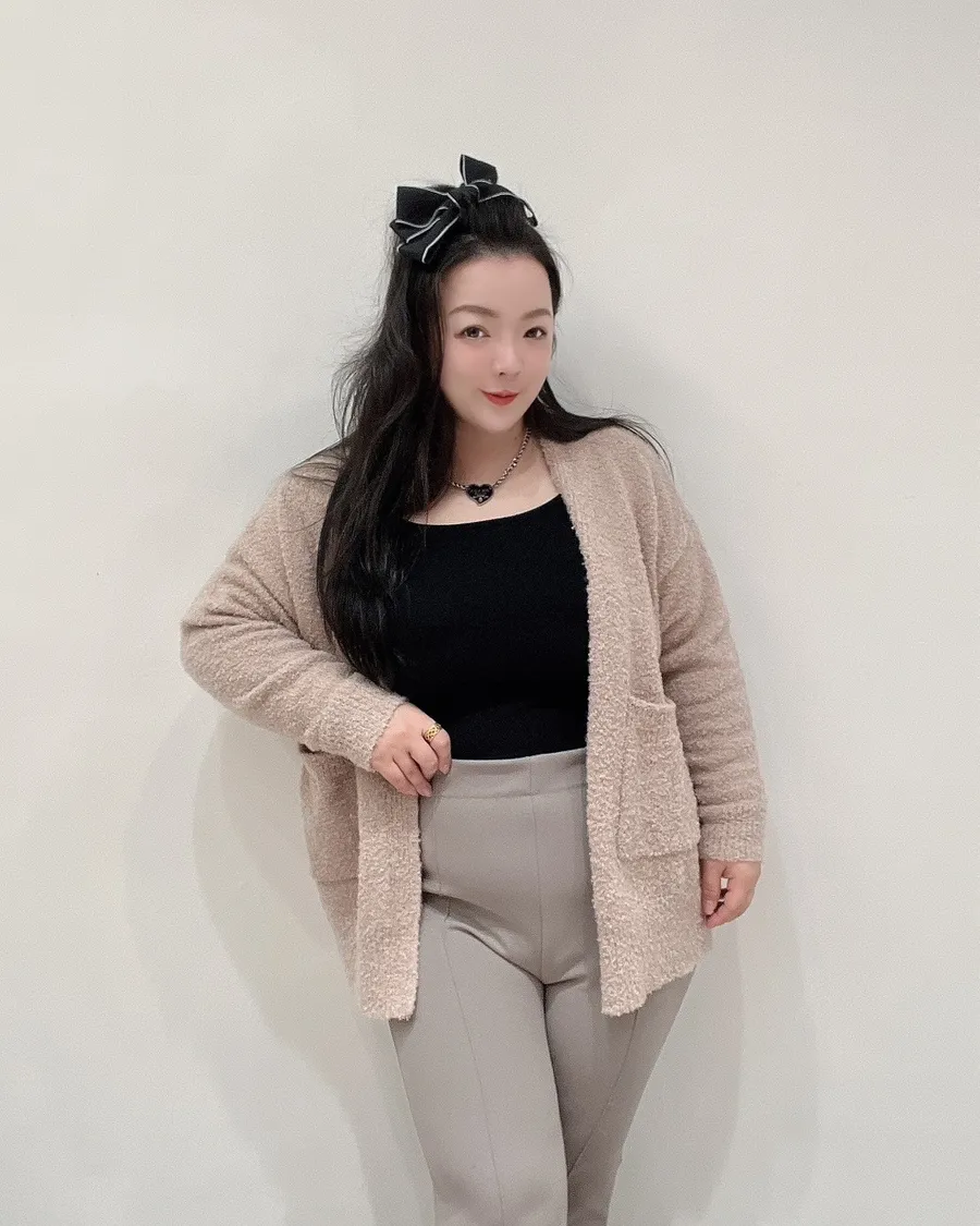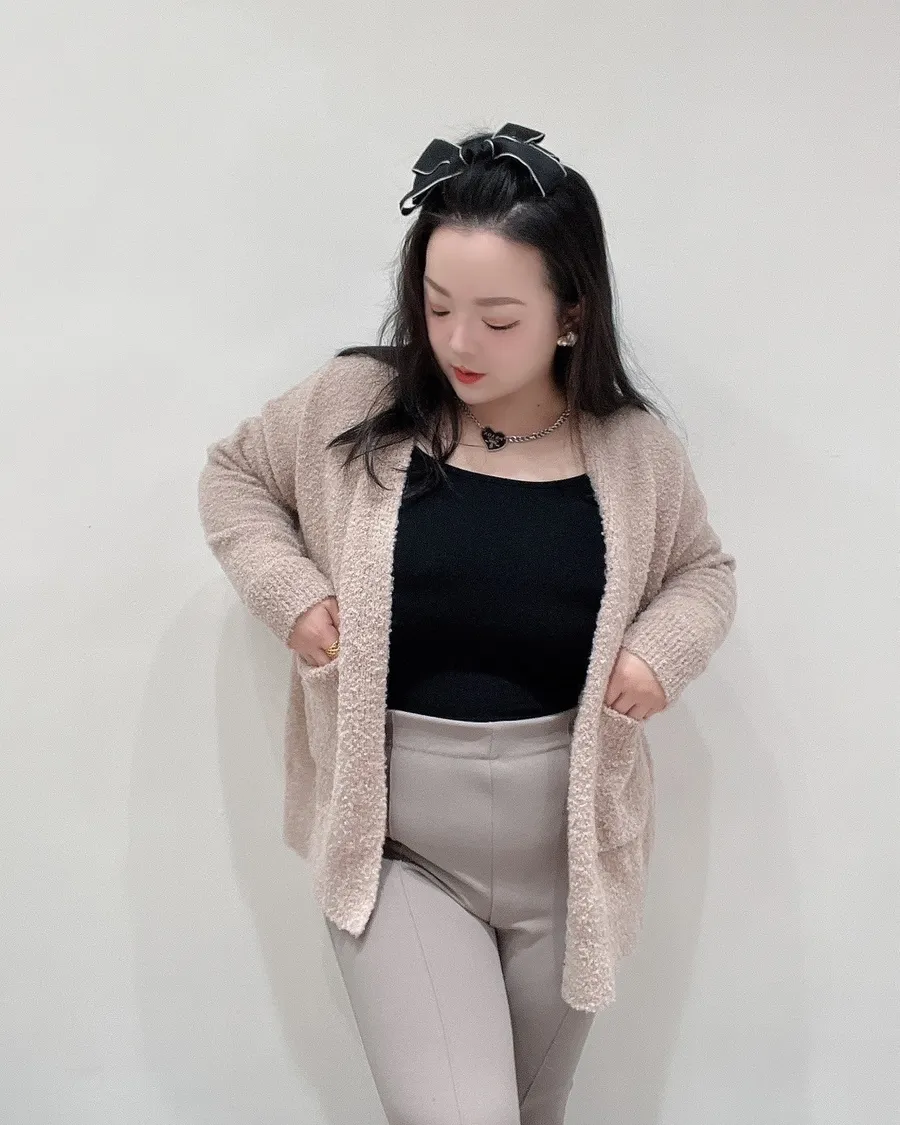 小泰迪毛線材,柔軟不刺、蓬度剛好,視覺自然修飾身形,