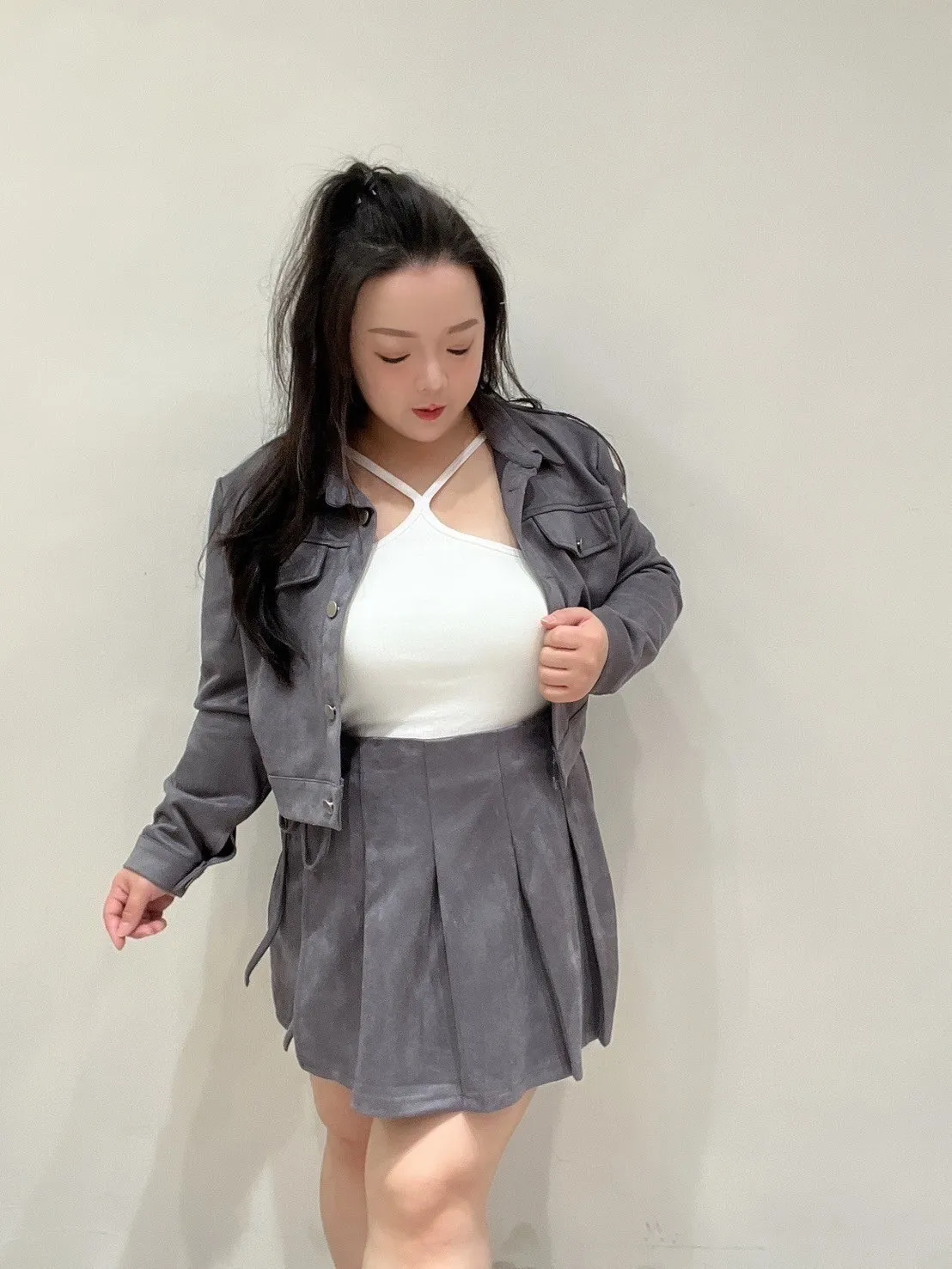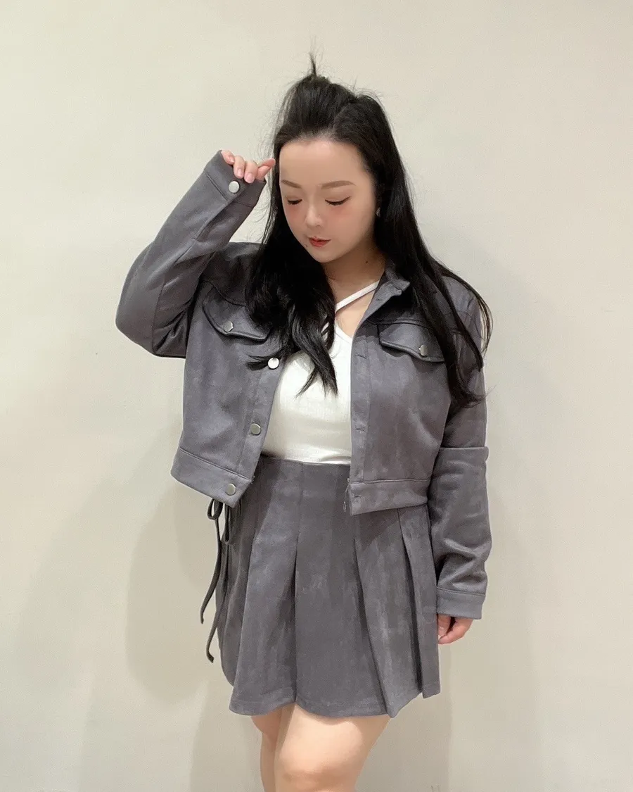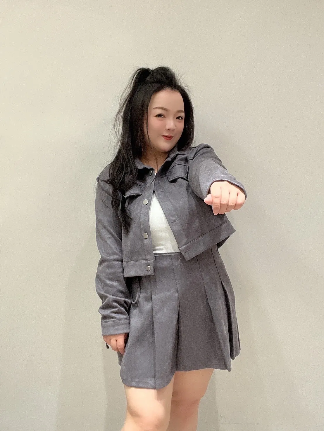 外套+褲裙一次到位,微挺版型搭配柔軟麂皮絨,