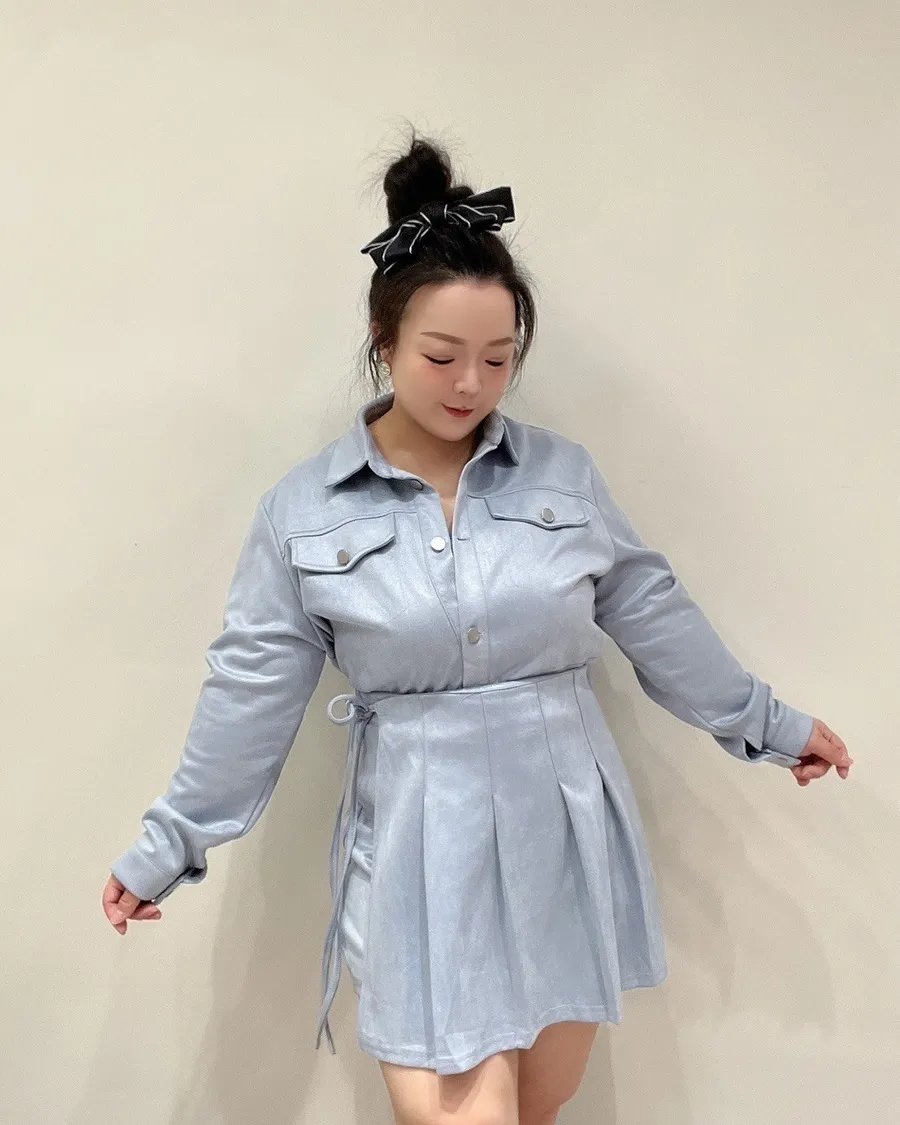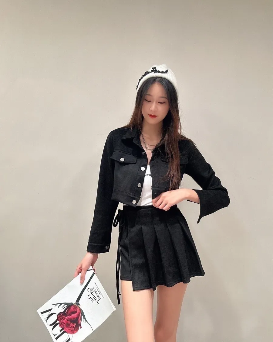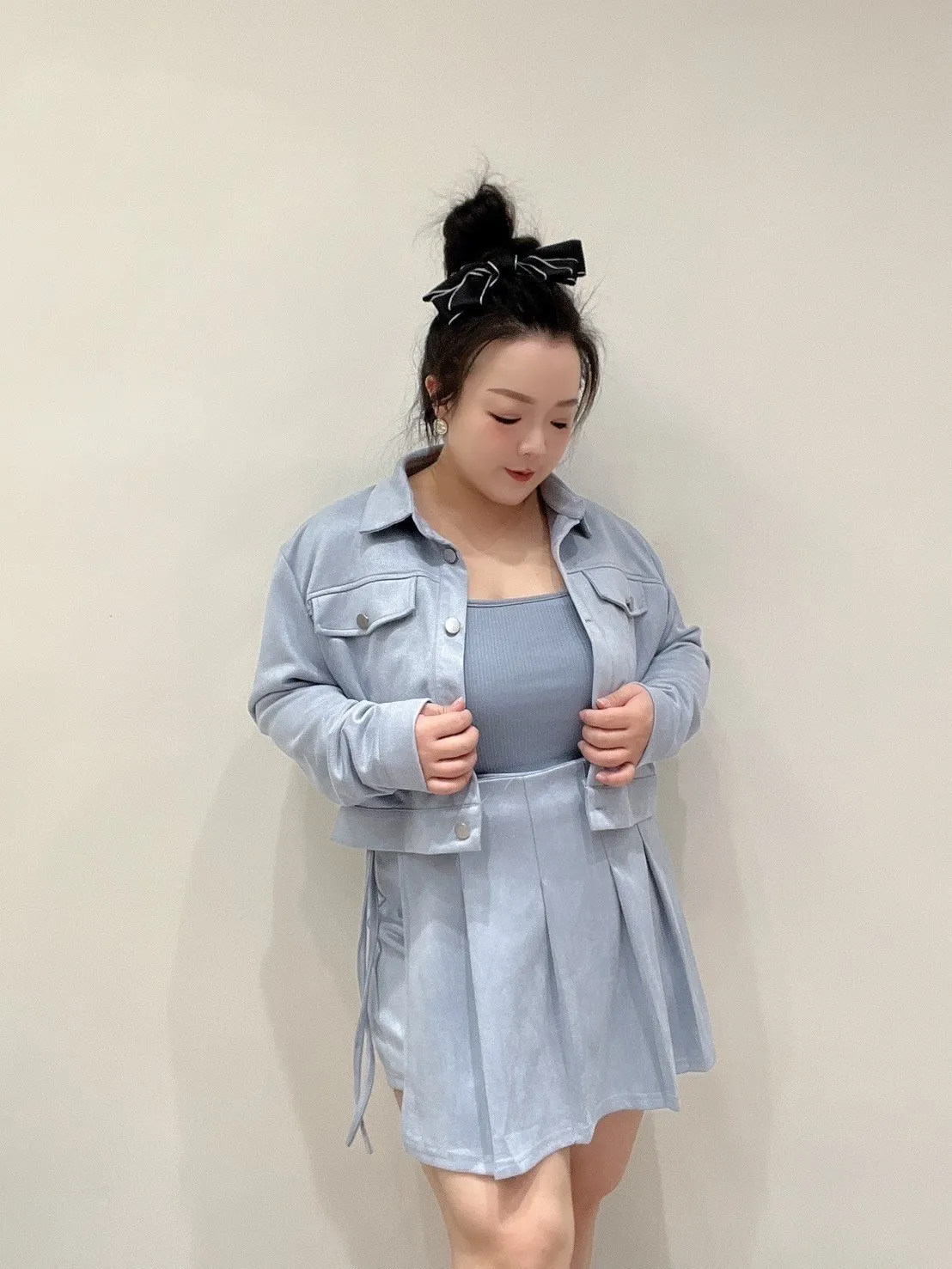 外套+褲裙一次到位,微挺版型搭配柔軟麂皮絨,