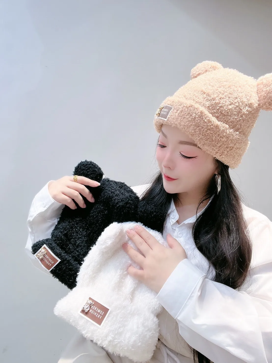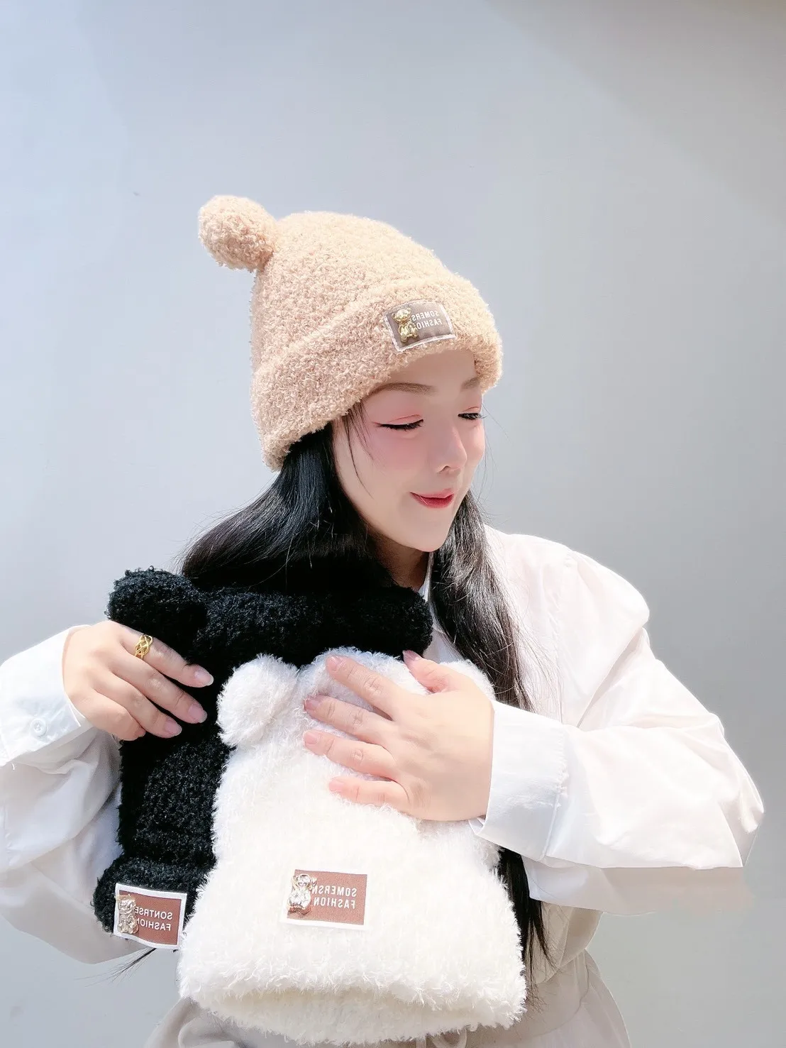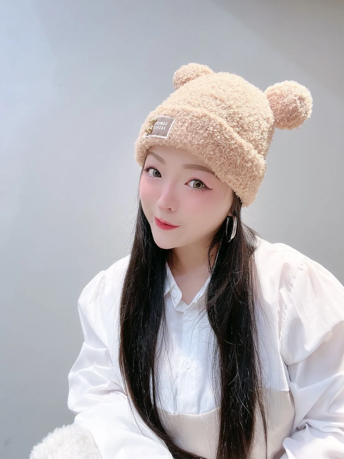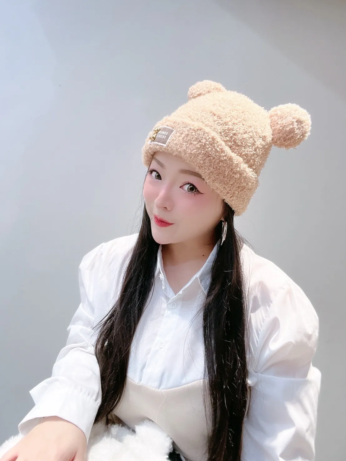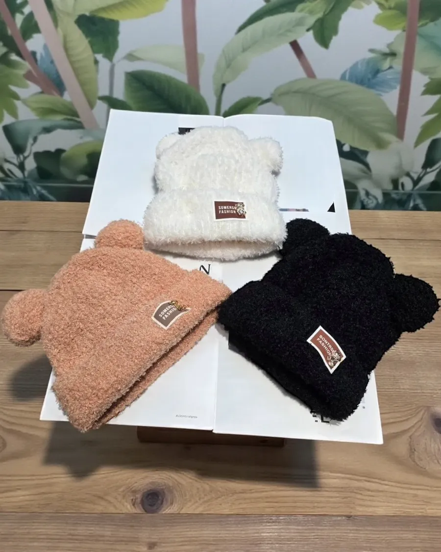 🧸 標籤熊耳朵毛帽