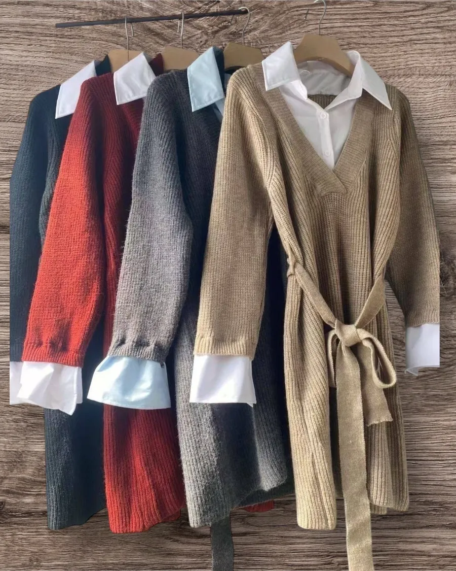 🤍 假兩件坑條綁帶洋裝(大彈力)
