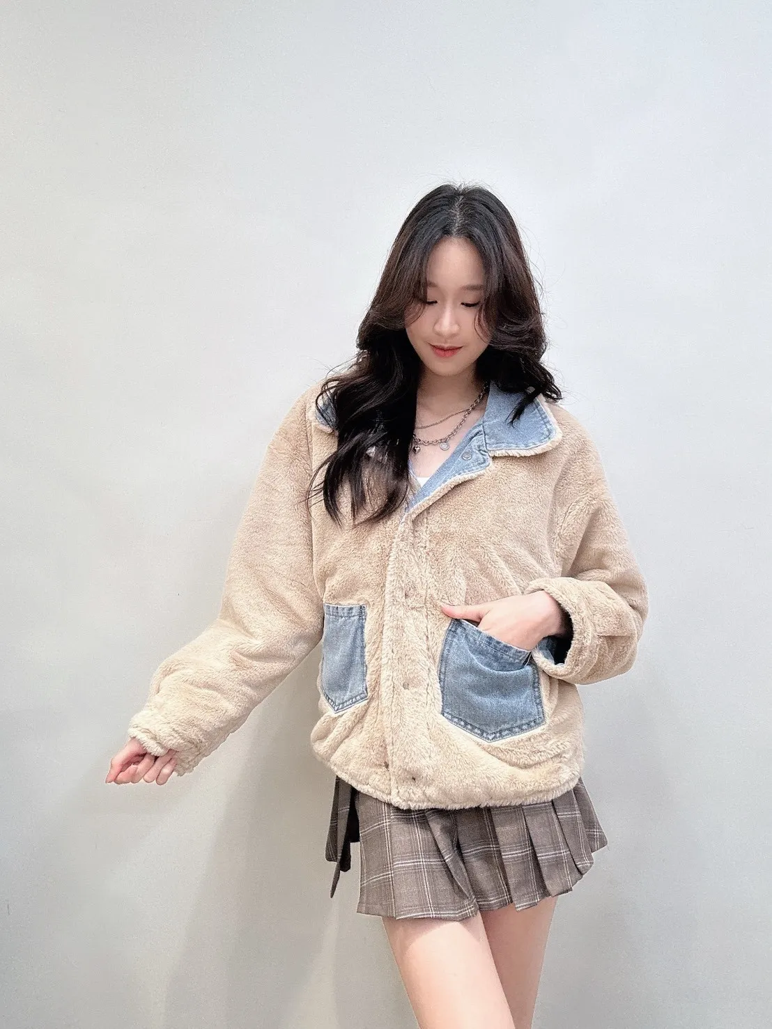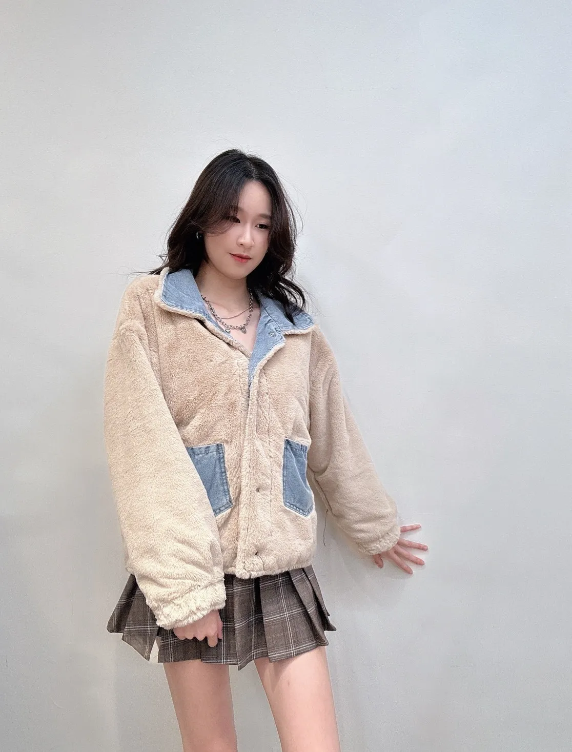 ✨影片介紹🔗💛🧥🧸 正反兩穿毛毛牛仔外 🧸🧥