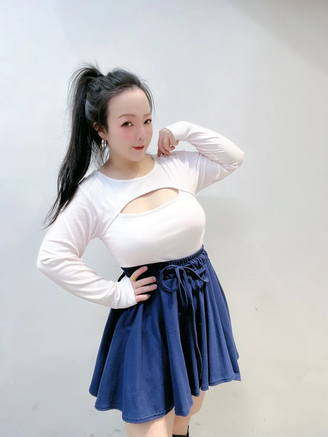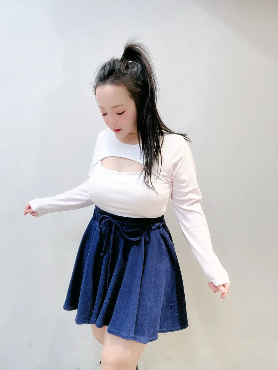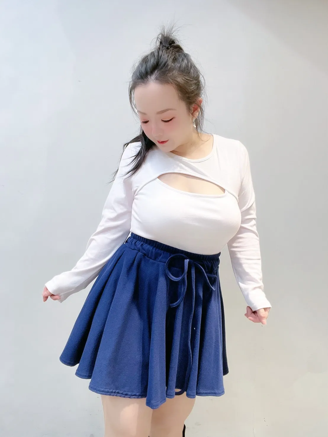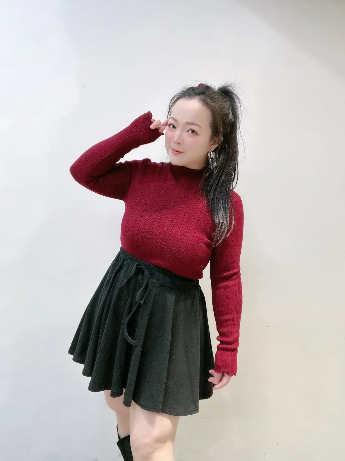 搭針織或貼身上衣=顯比例 ✨