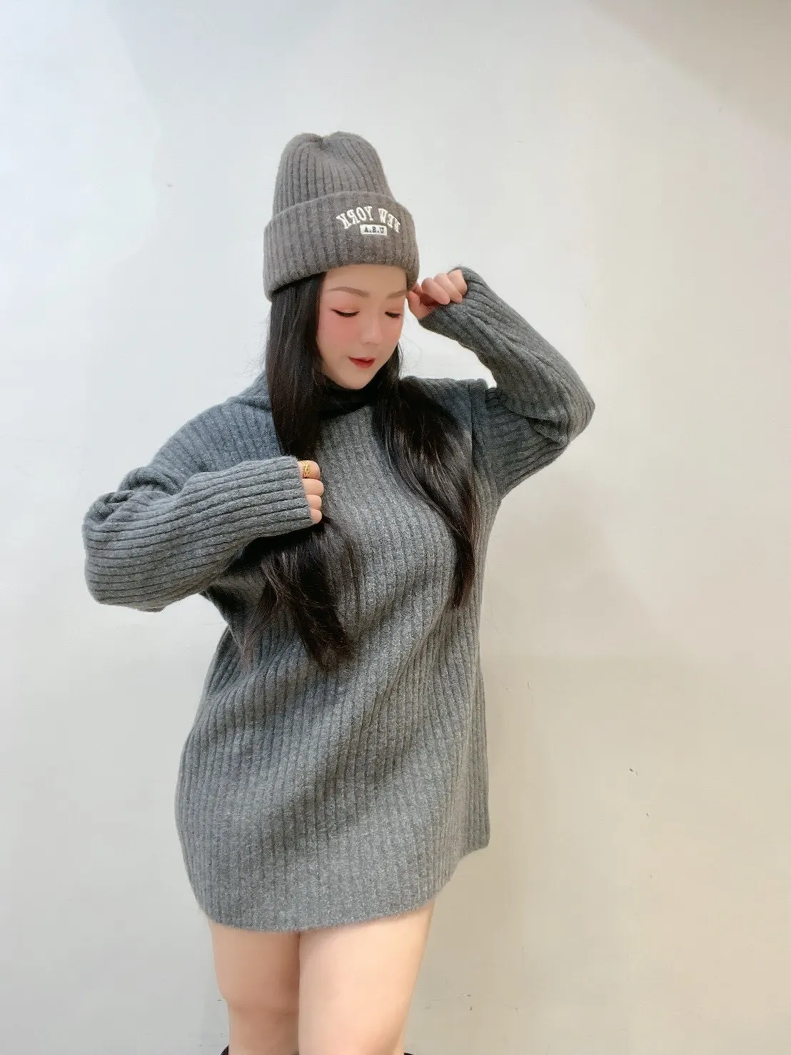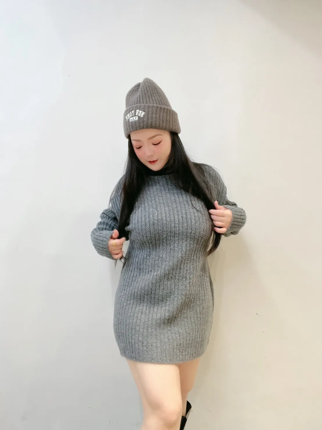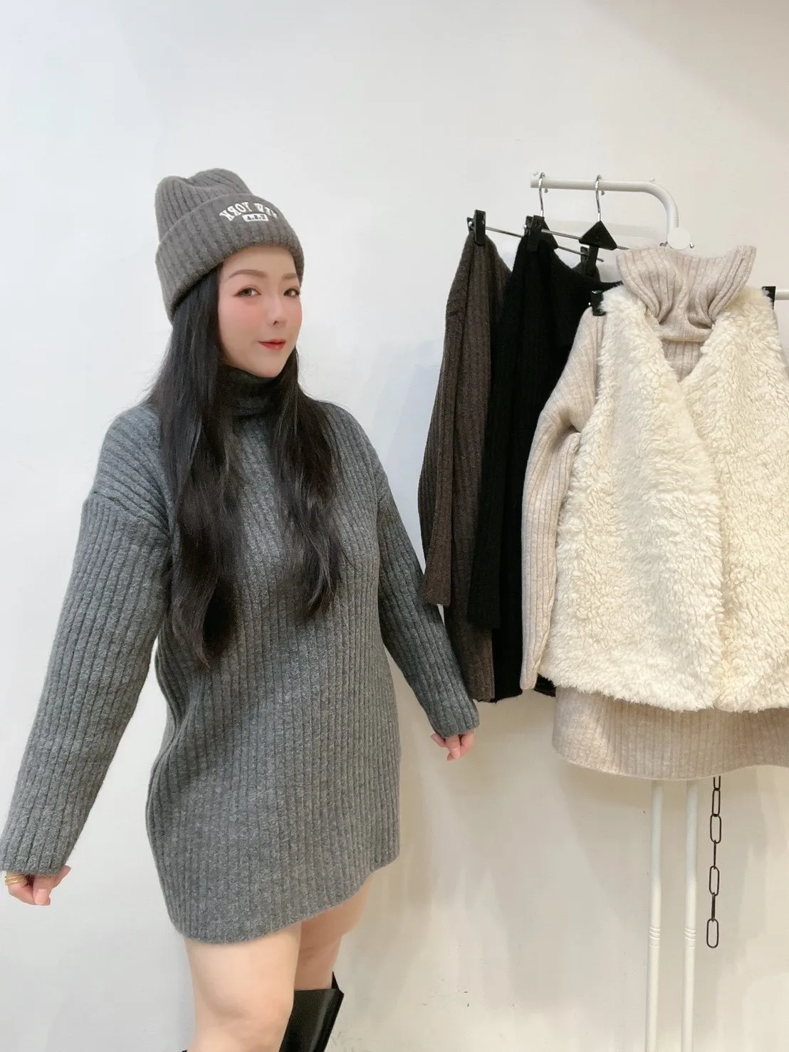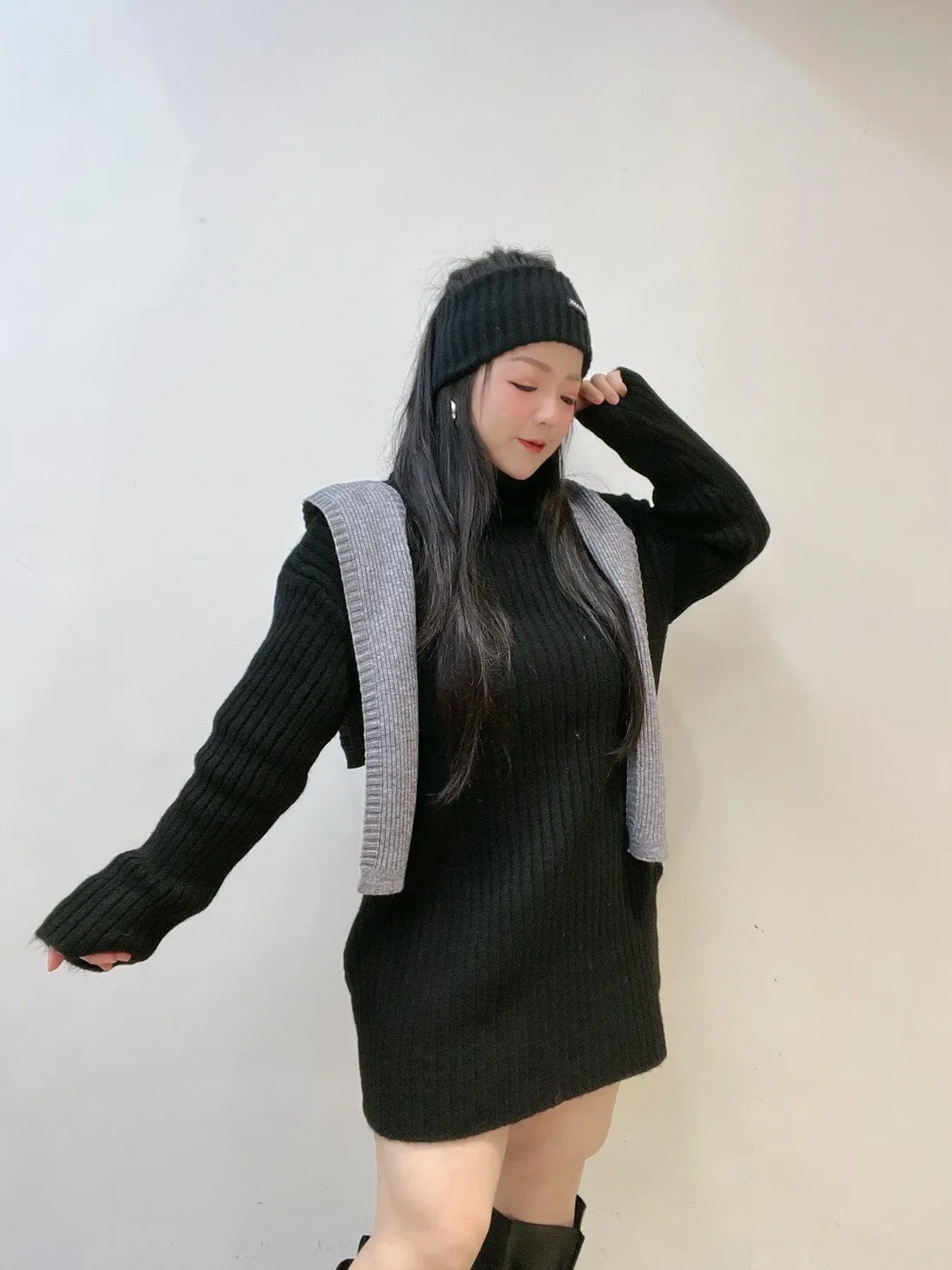 ✔️ 洋裝長度剛剛好 👉 絲襪、長靴直接搭
